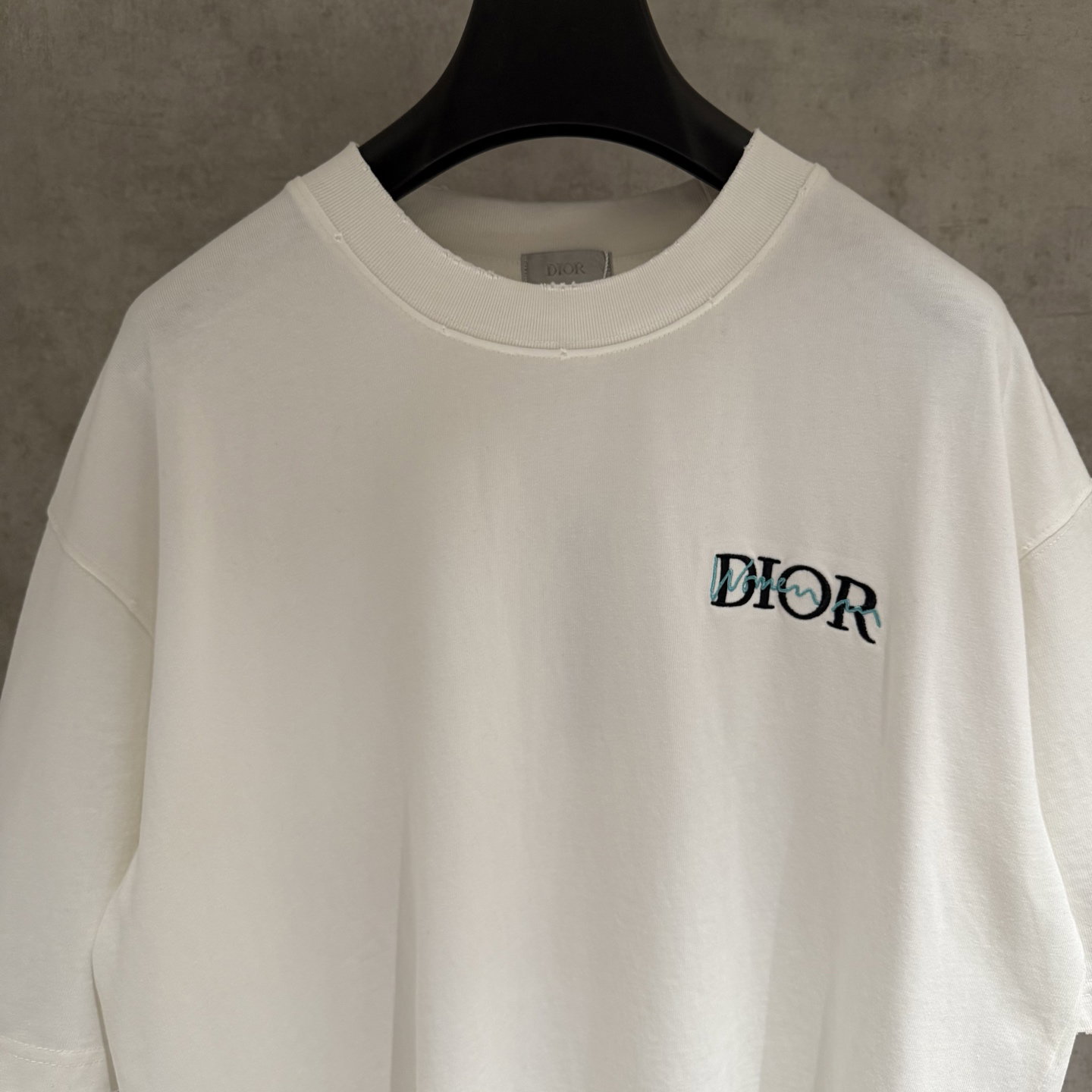 Dior Embroidery LOGO loose Round neck T-shirt White ディオール プリント LOGO クルーネック ゆったり Tシャツ ホワイト