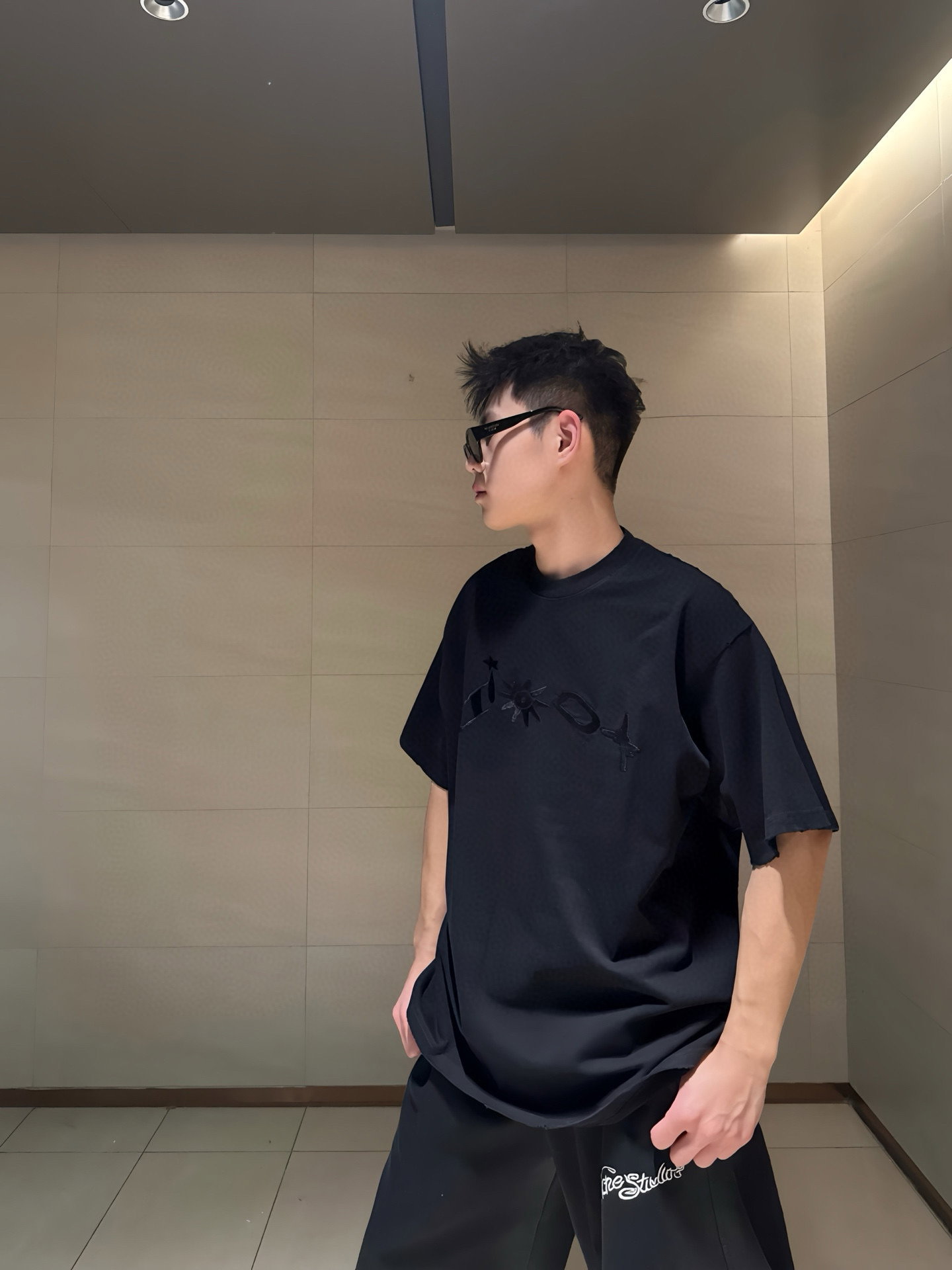 DIOR patch Embroidery Letter number logo loose Round neck T-shirt Black ディオール アップリケ 刺繍 モジ ナンバー logo ゆったり クルーネック Tシャツ ブラック