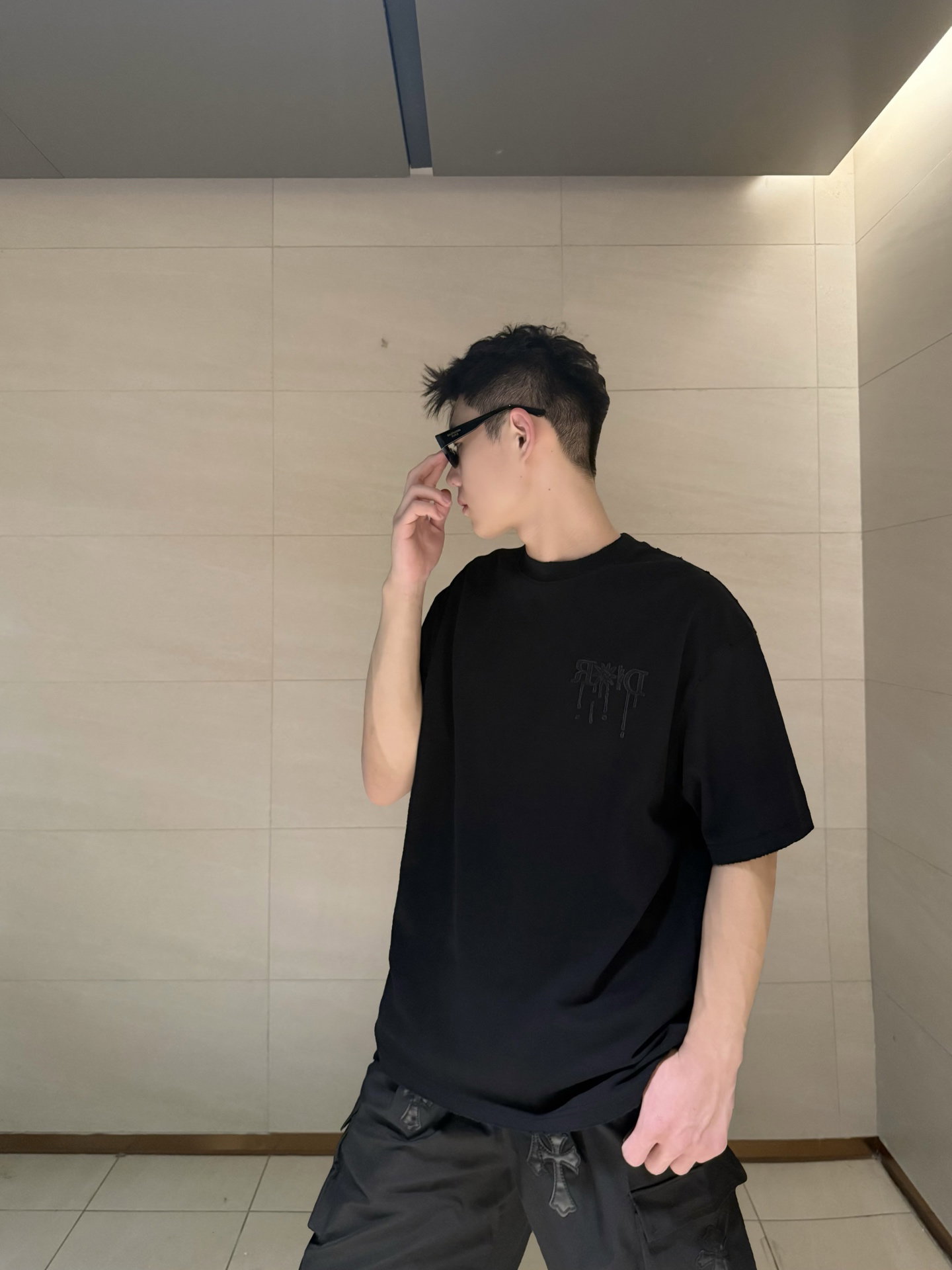 DIOR patch Embroidery pattern loose Round neck T-shirt Black ディオール アップリケ 刺繍 パターン ゆったり クルーネック Tシャツ ブラック