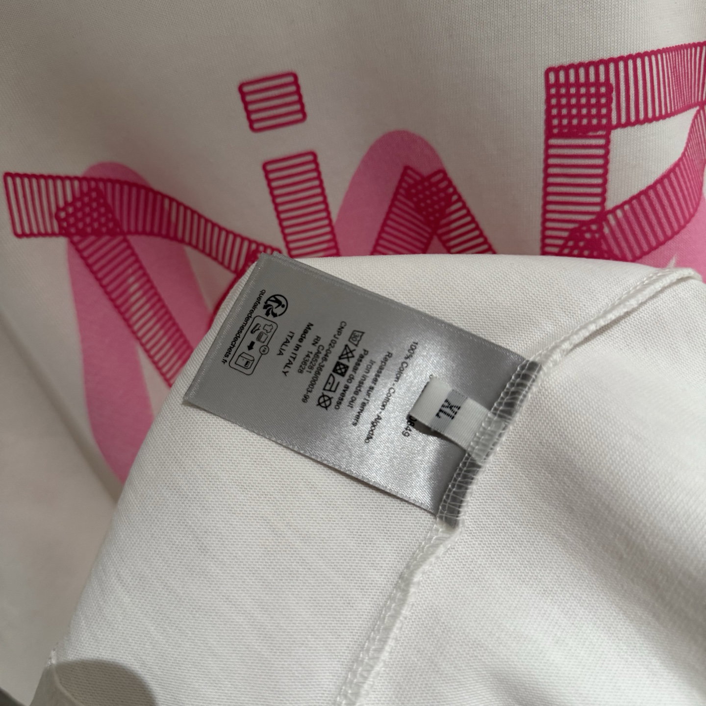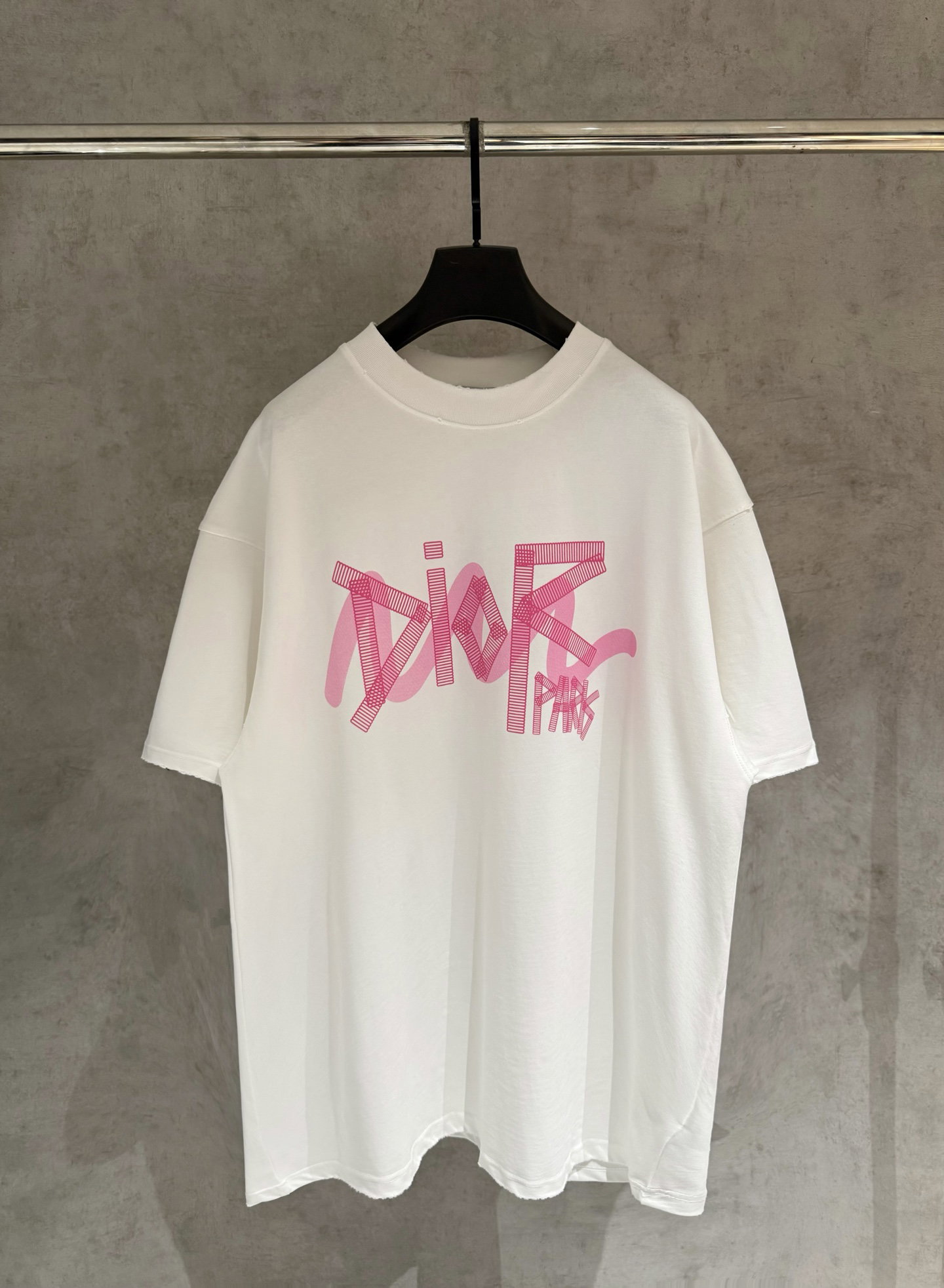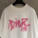 DIOR patch Embroidery Pink Letter logo loose Round neck T-shirt White ディオール アップリケ 刺繍 ピンク モジ logo ゆったり クルーネック Tシャツ ホワイト
