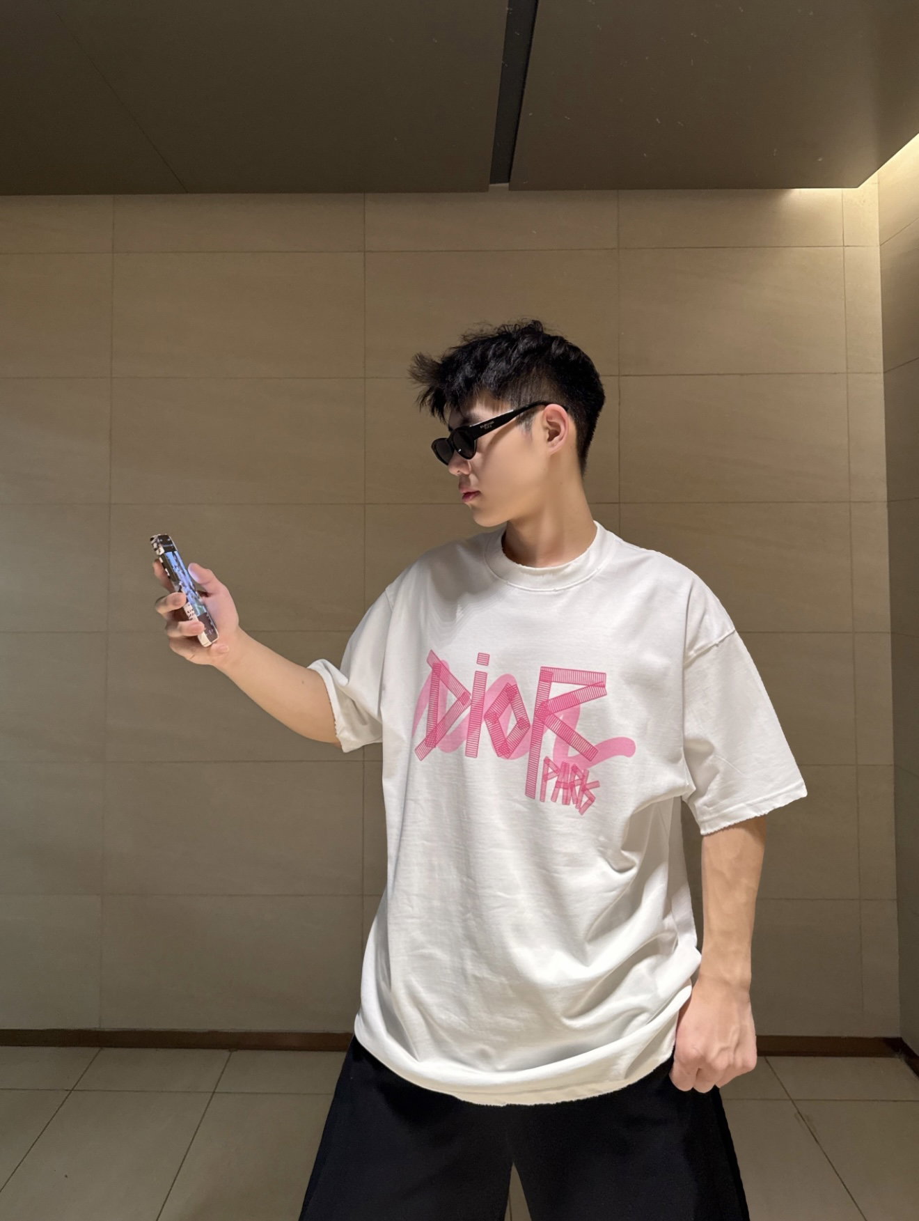 DIOR Embroidery LOGO loose Round neck T-shirt Pink ディオール 刺繍 LOGO ゆったり クルーネック Tシャツ ピンク