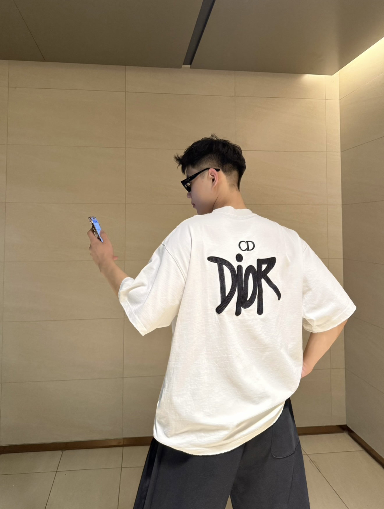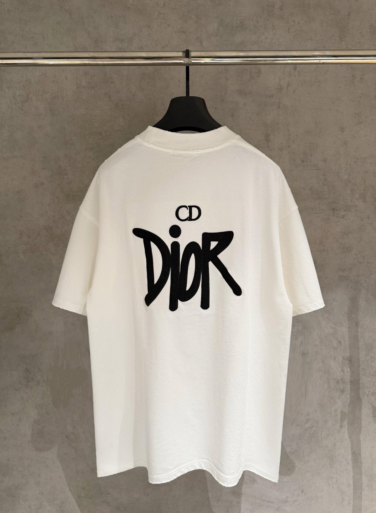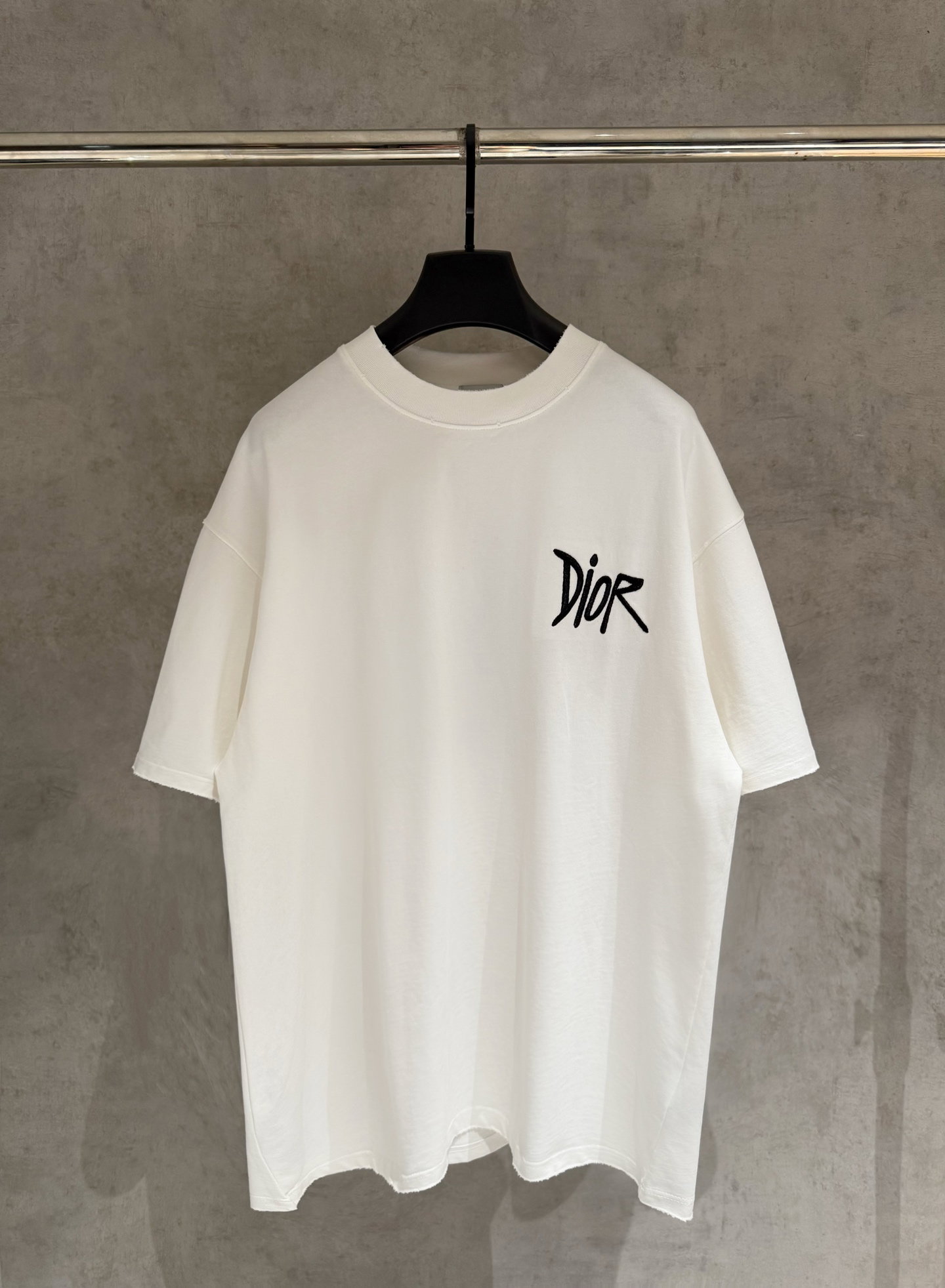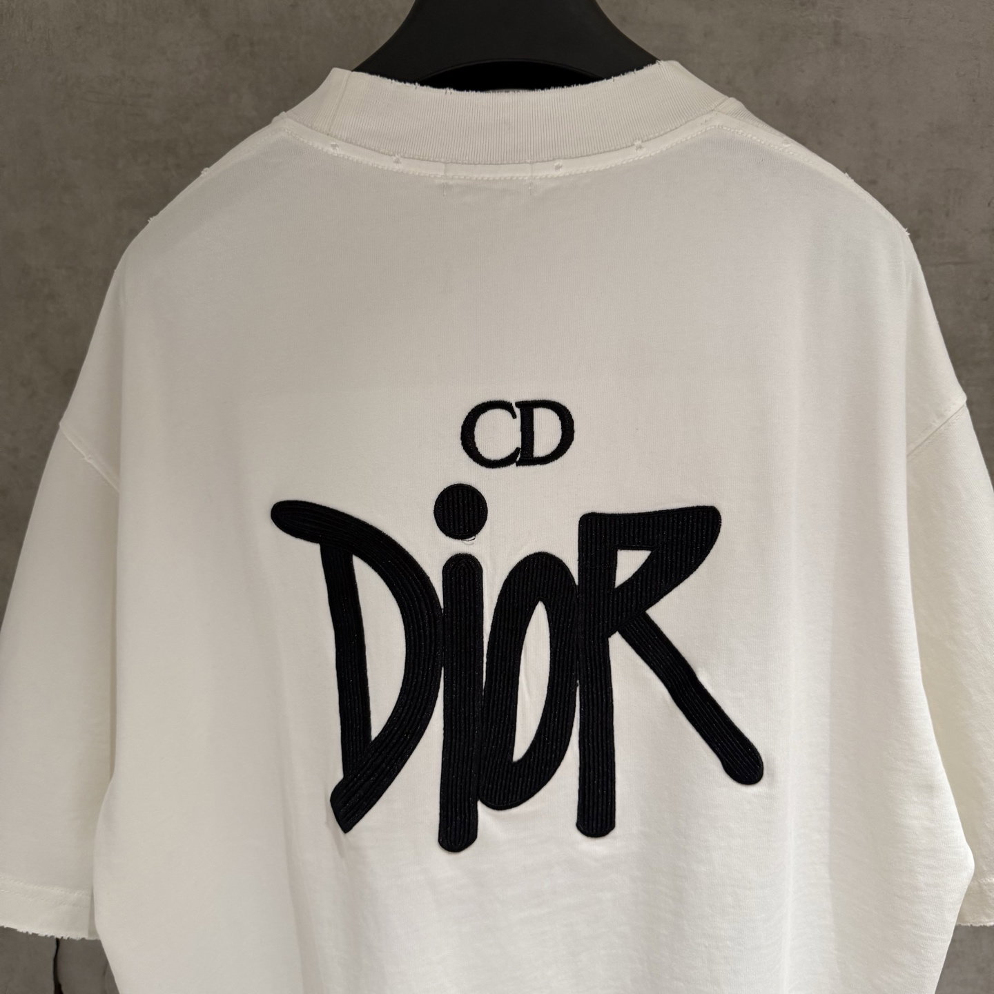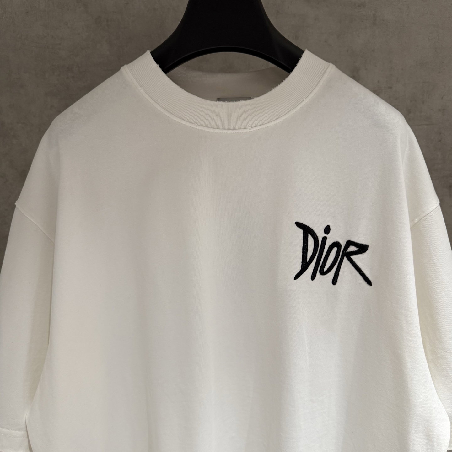 DIOR patch Letter logo loose Round neck T-shirt White ディオール アップリケ モジ logo ゆったり クルーネック Tシャツ ホワイト