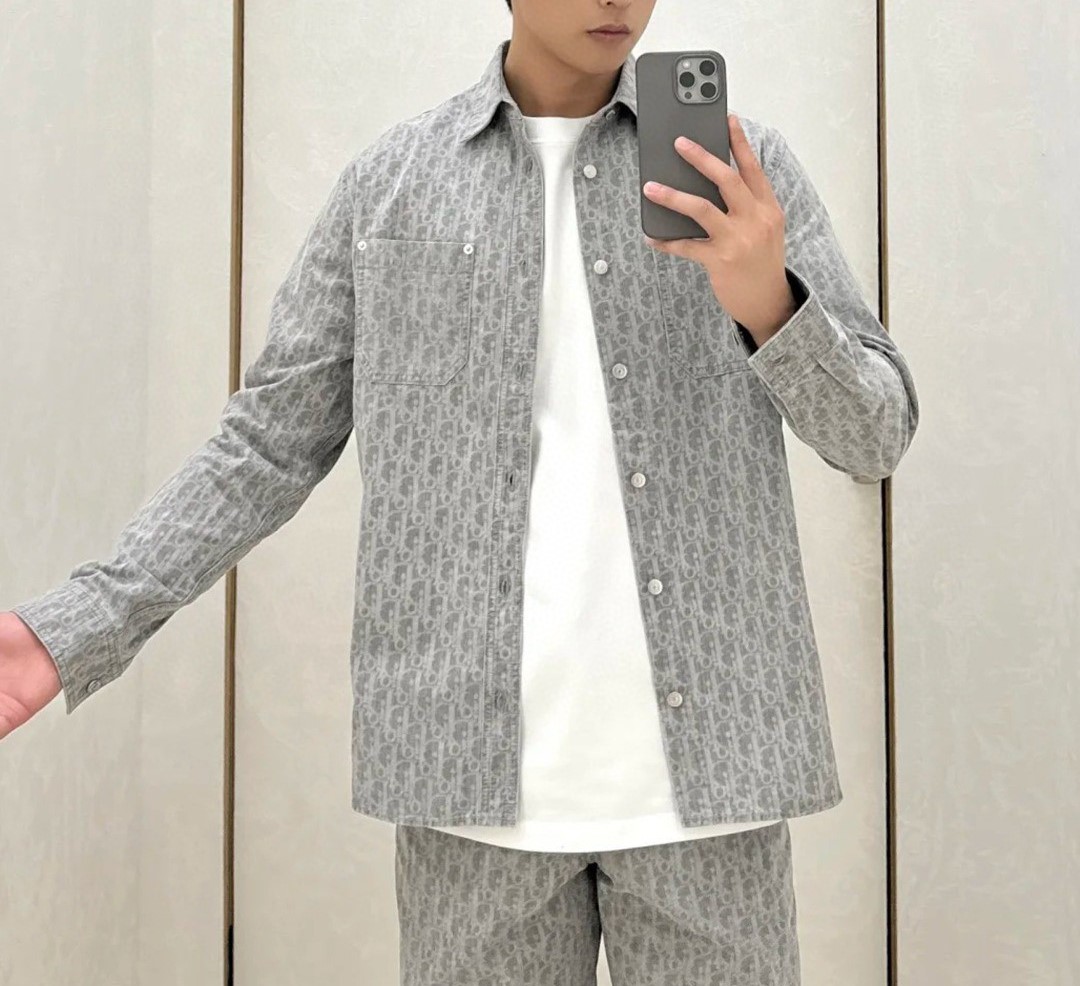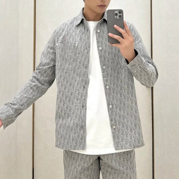 DIOR Print LOGO DENIM Long-sleeve Shirt jacket Gray ディオール プリントLOGO デニム 長袖シャツ ジャケット グレー