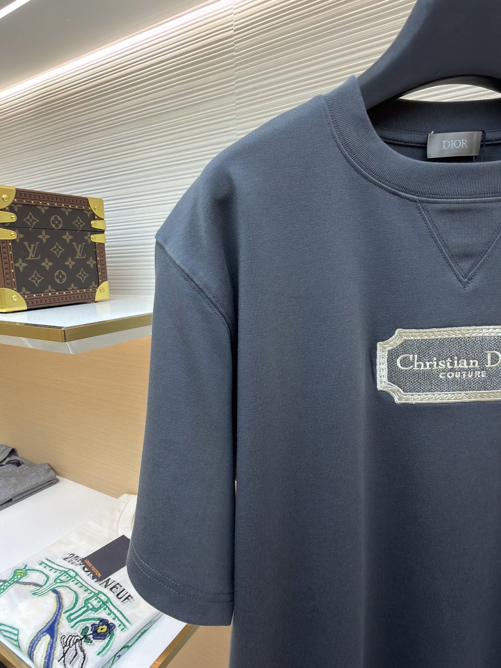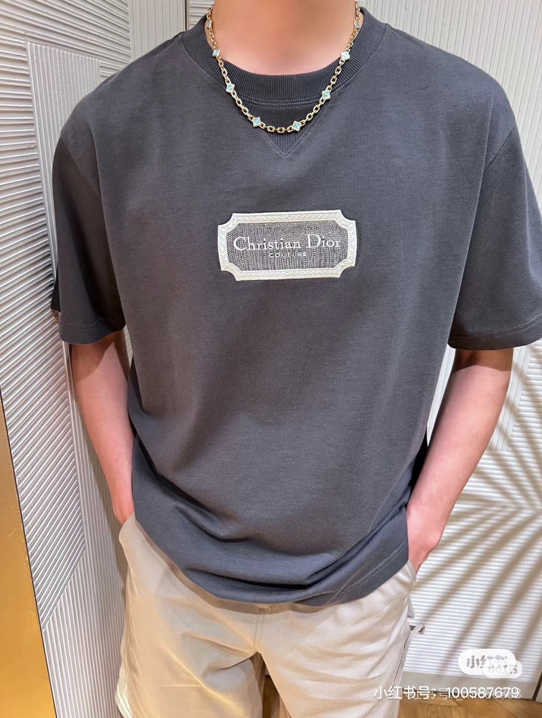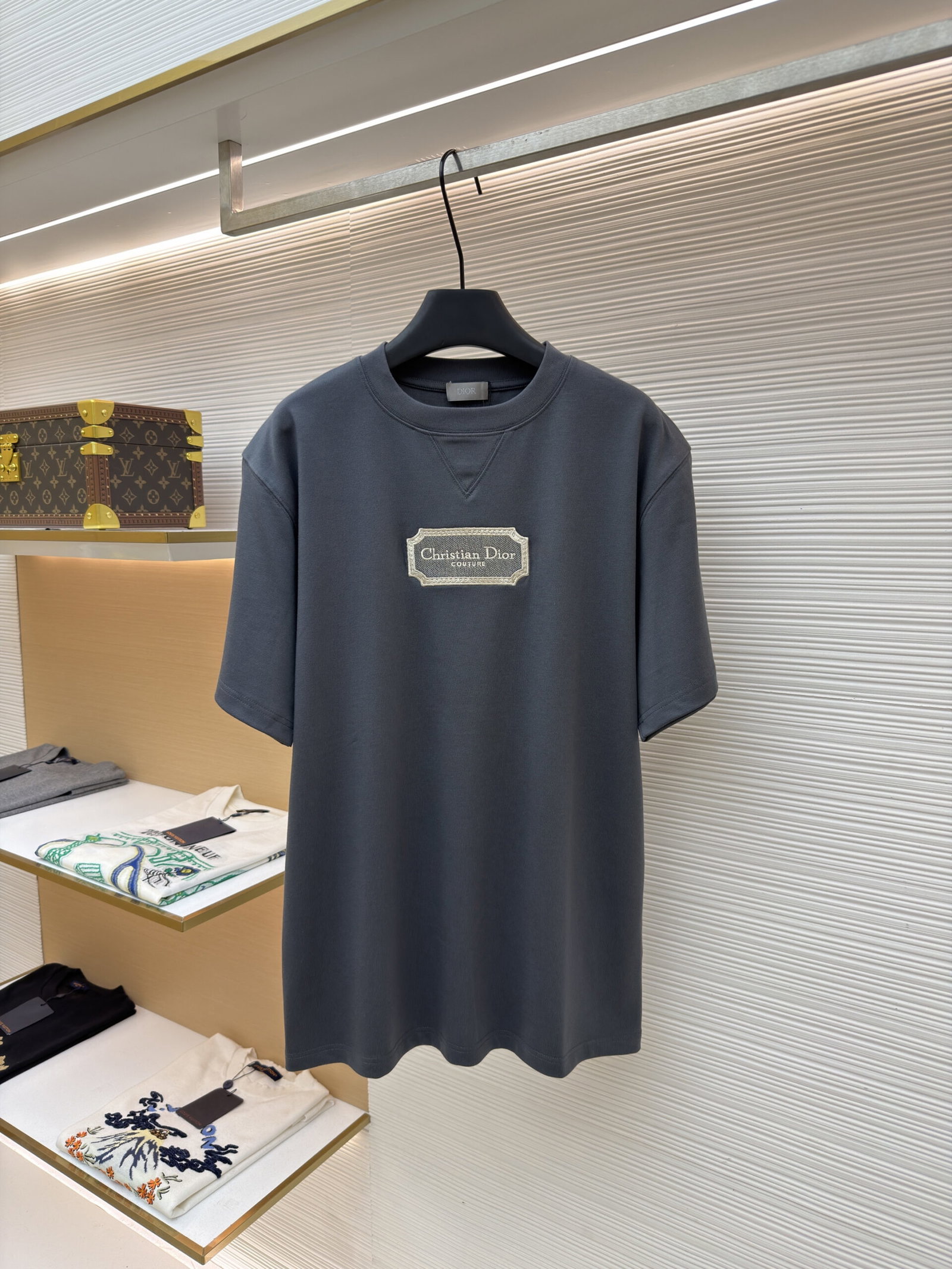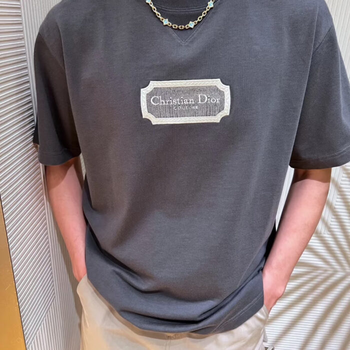 DIOR Water-soluble embroidery Letter logo loose Round neck T-shirt dark gray ディオール ウォーターソルブル刺繍 モジ logo ゆったり クルーネック Tシャツ ダークグレー