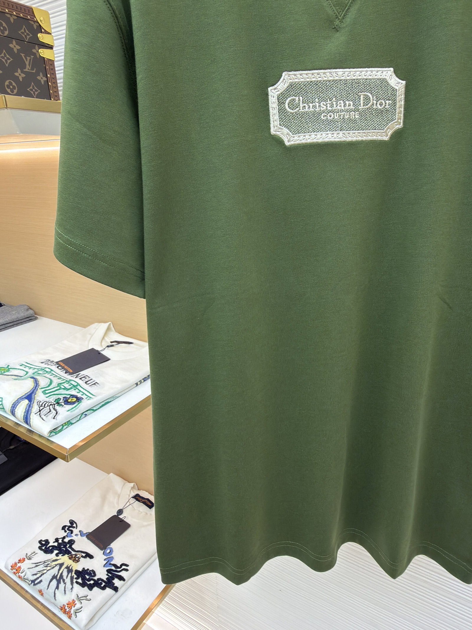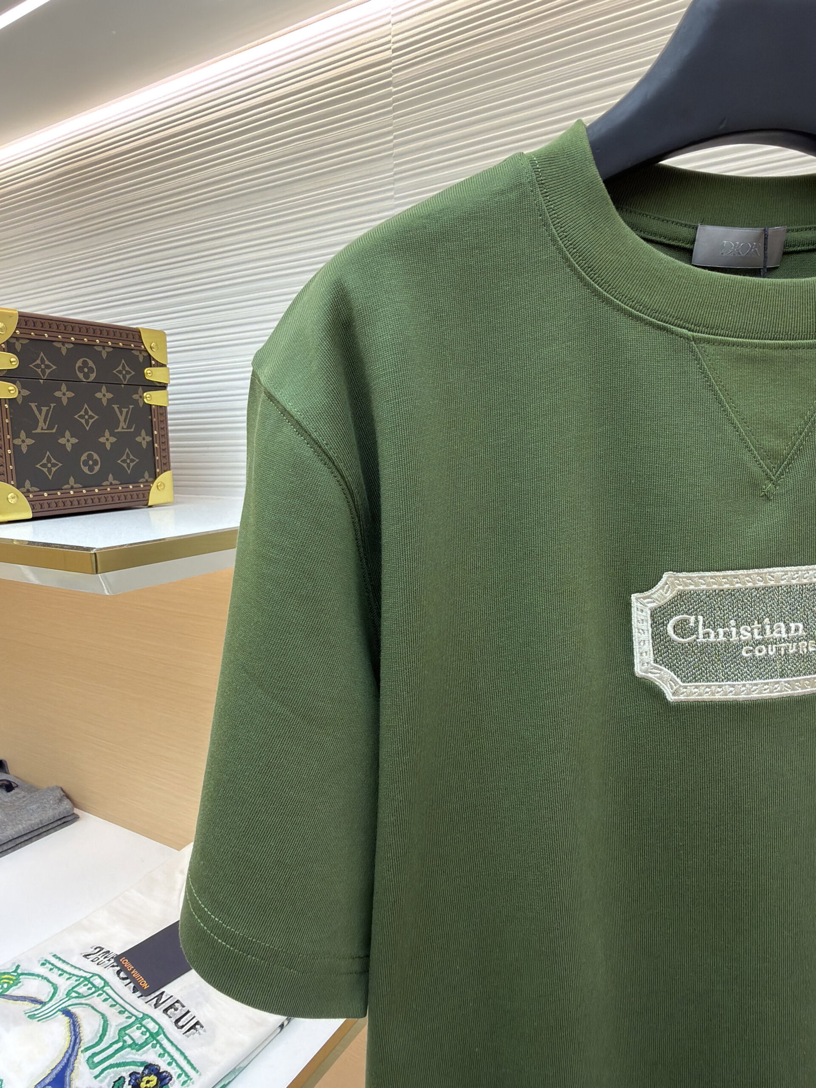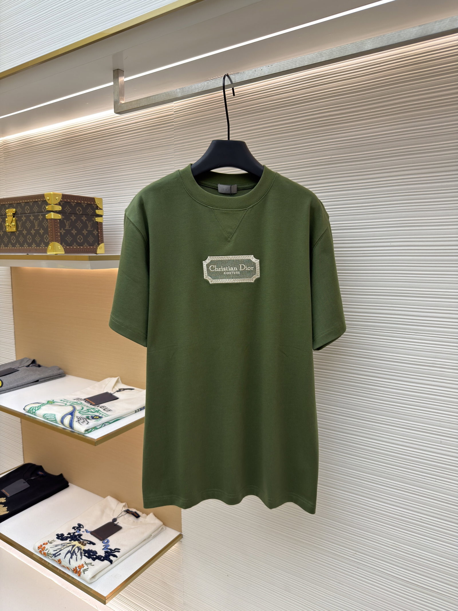 DIOR Water-soluble embroidery Letter logo loose Round neck T-shirt Green ディオール ウォーターソルブル刺繍 モジ logo ゆったり クルーネック Tシャツ グリーン