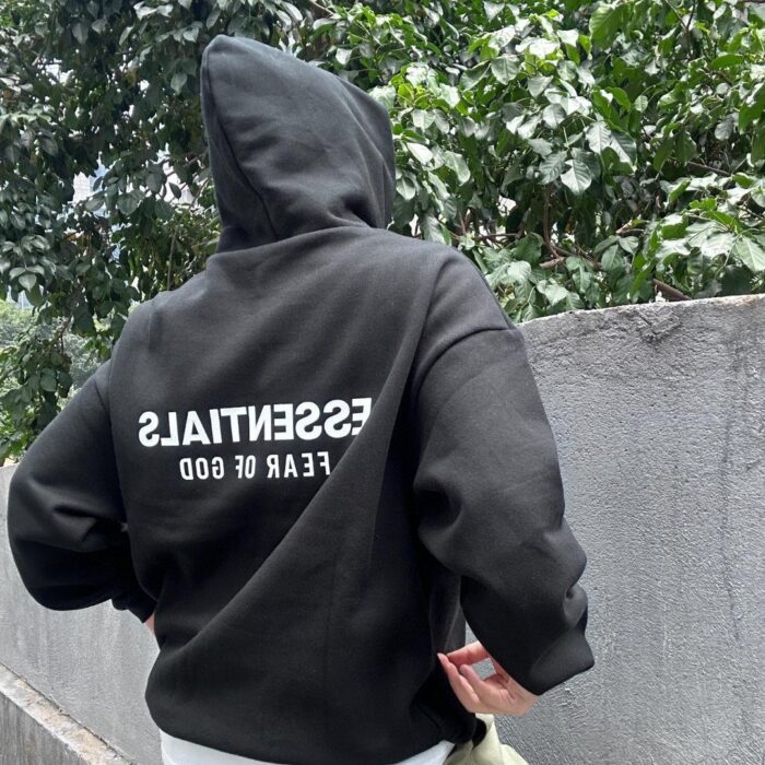 Fear of God Essentials Print LOGO loose Fleece-lined Hoodie Black FOG プリント LOGO ゆったり フリースライナー パーカー ブラック