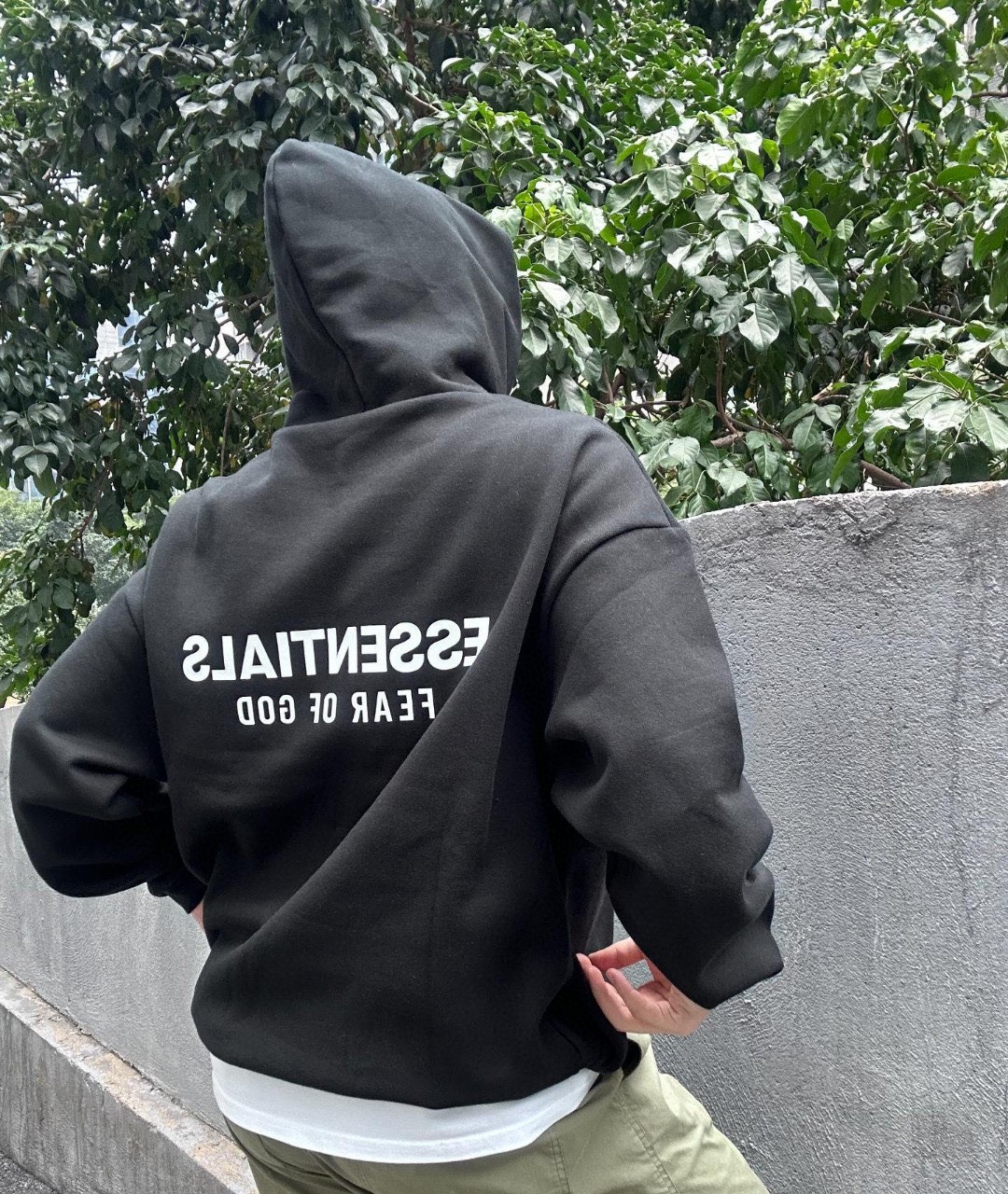 Fear of God Essentials Print LOGO loose Hoodie Black FOG プリント LOGO ゆったり パーカー ブラック