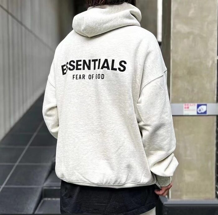 Fear of God Essentials LOGO loose Hoodie light gray FOG パターン LOGO ゆったり パーカー ライトグレー