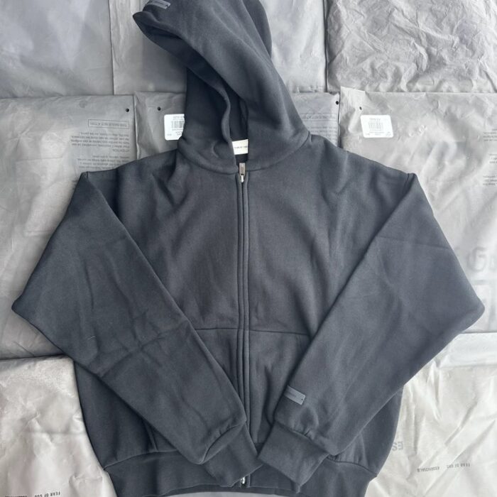Fear of God Essentials pattern LOGO loose ZIP-UP HOODIE Black FOG パターン LOGO ゆったり ジップアップパーカー ブラック