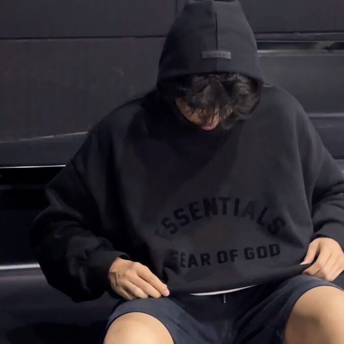Fear of God Essentials Print LOGO loose Fleece-lined Hoodie Black FOG プリント LOGO ゆったり フリースライナー パーカー ブラック