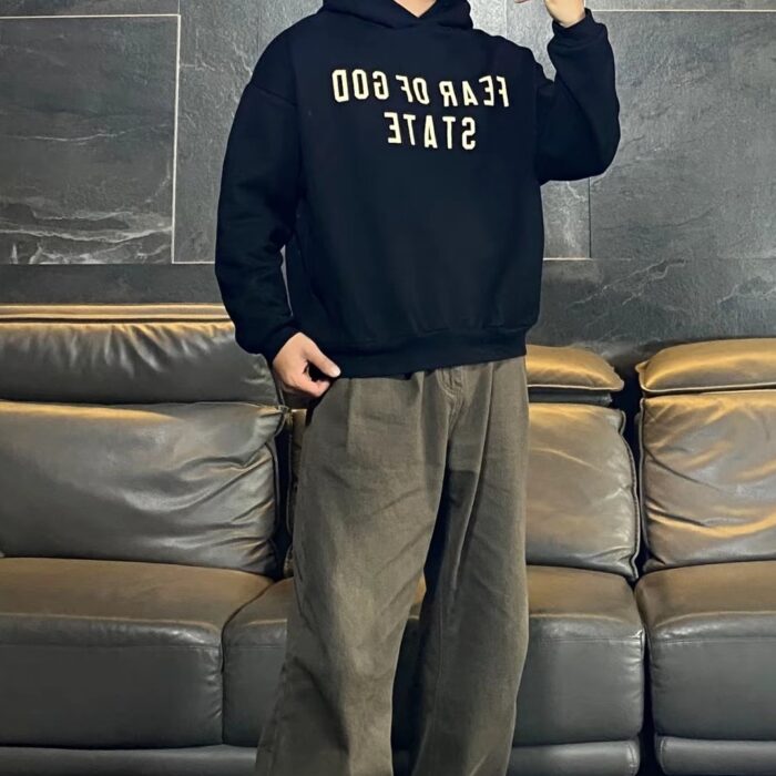 Fear of God Essentials Print LOGO loose Hoodie Black FOG プリント LOGO ゆったり パーカー ブラック