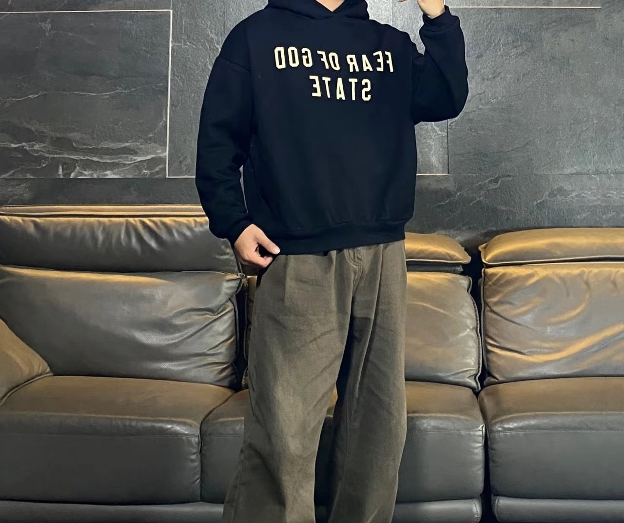 Fear of God Essentials pattern LOGO loose Hoodie Black FOG パターン LOGO ゆったり パーカー ブラック