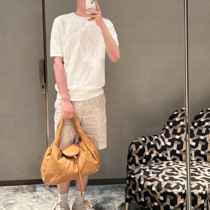 FENDI hardware letter logo Round neck T-shirt khaki フェンディ ハードウェアレター logo クルーネック Tシャツ カーキ