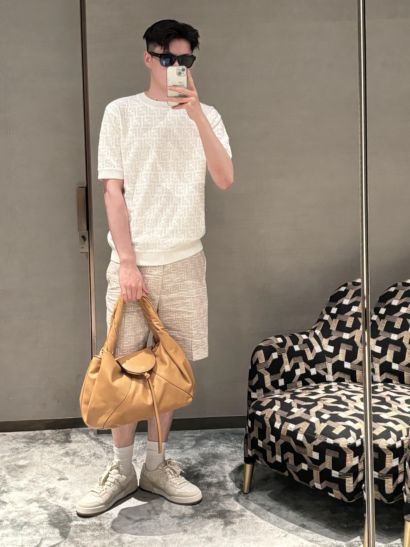FENDI Embroidery pattern T-shirt Black フェンディ 刺繍 パターン Tシャツ ブラック