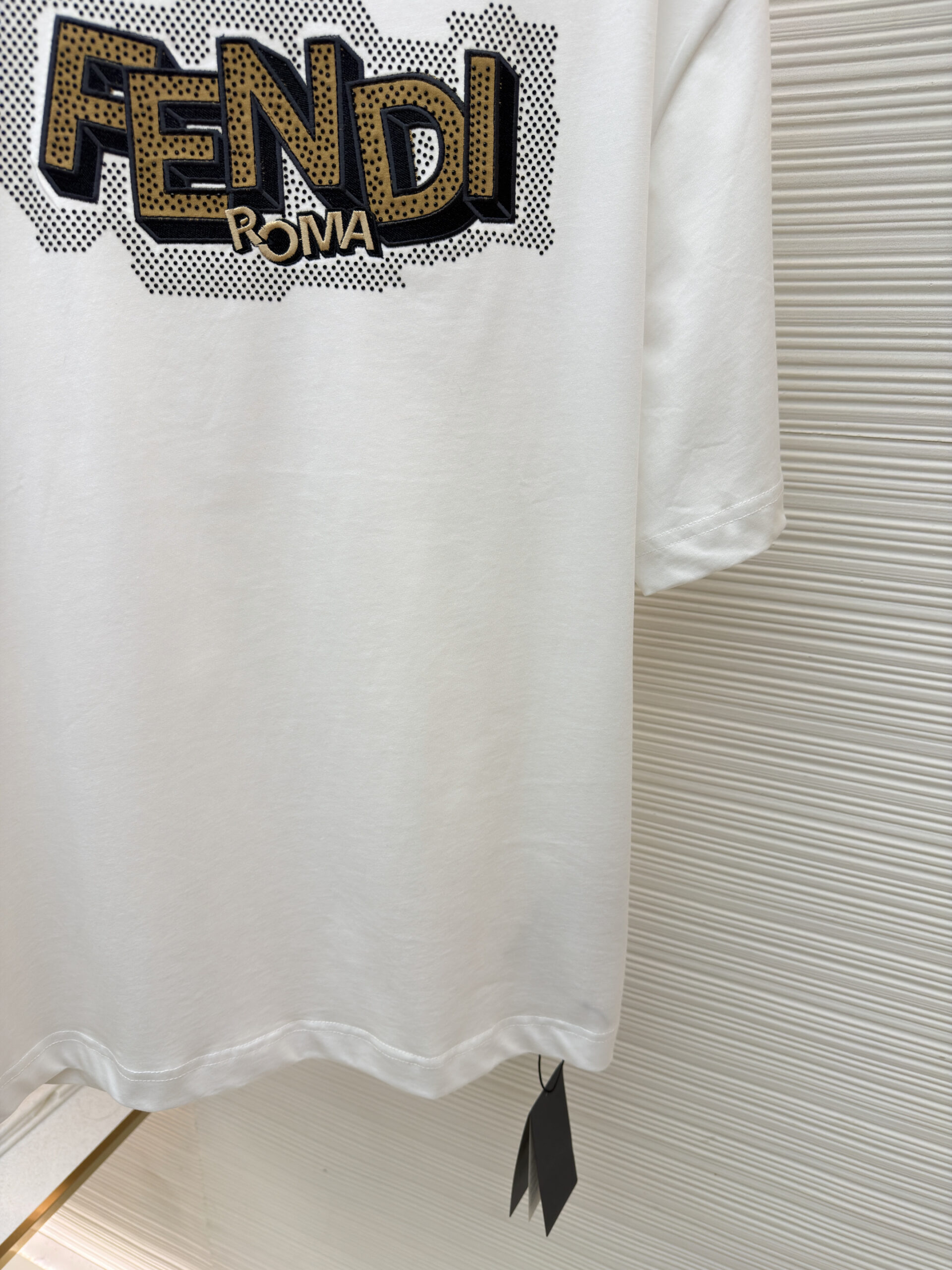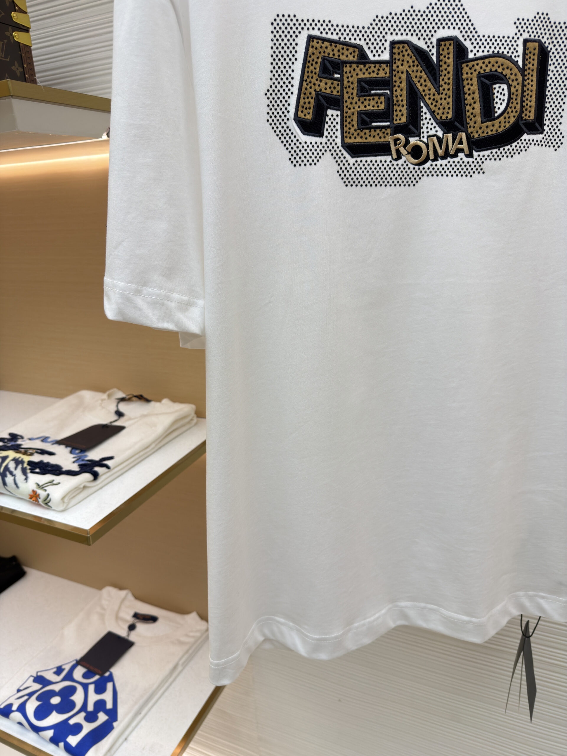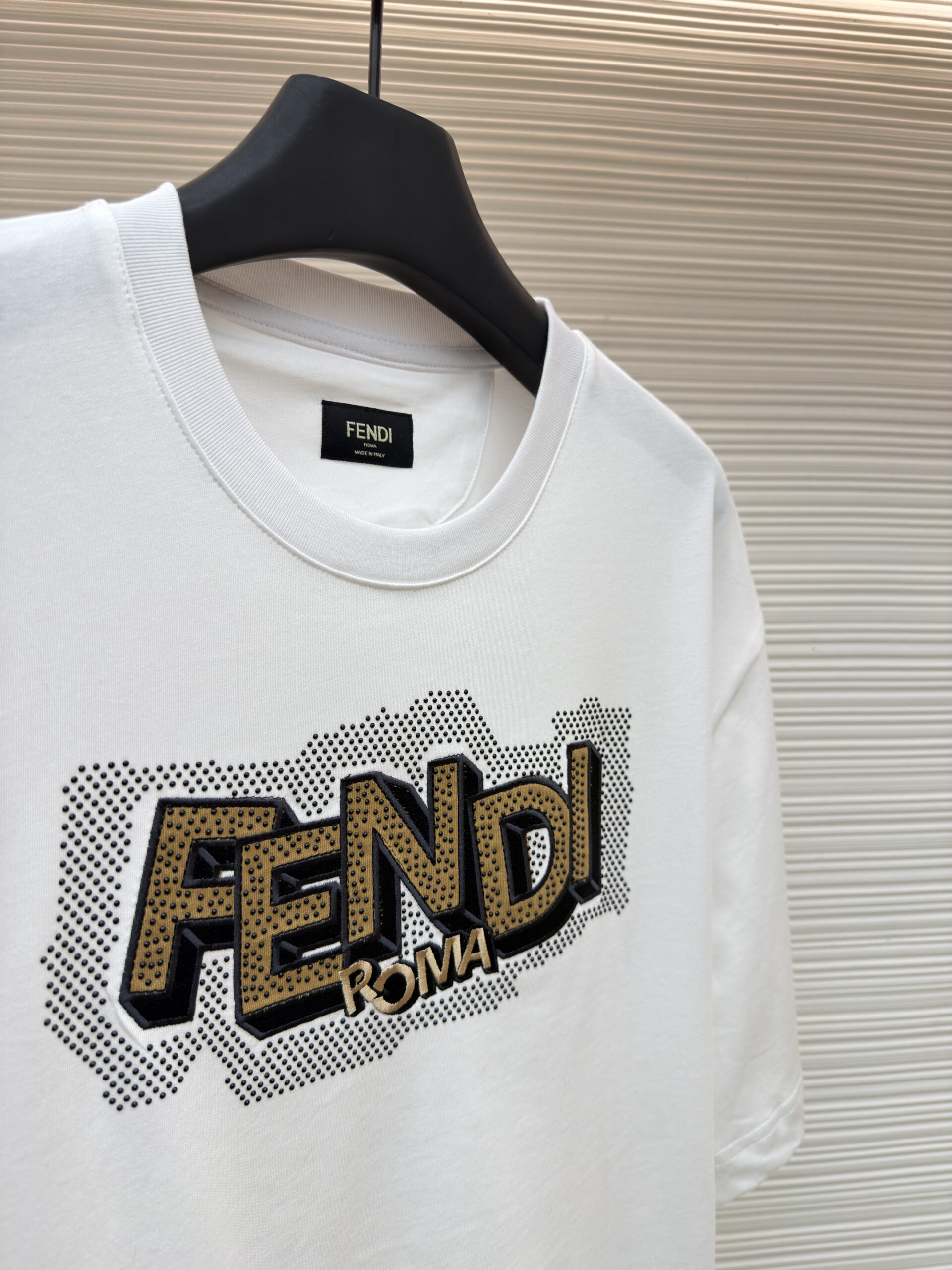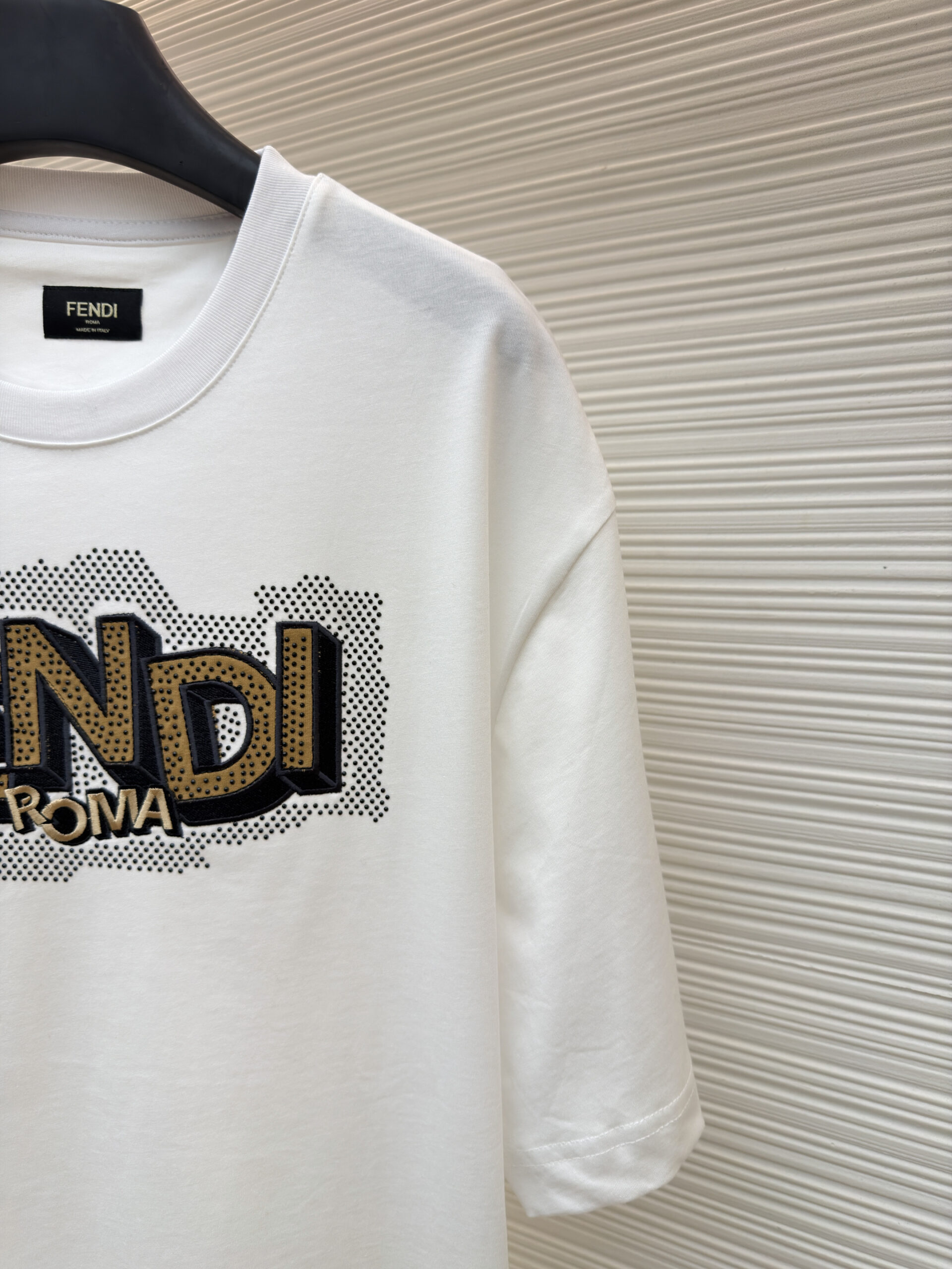 FENDI Embroidery applique rhinestone Round neck T-shirt White フェンディ 刺繍 アップリケ ラインストーン クルーネック Tシャツ ホワイト
