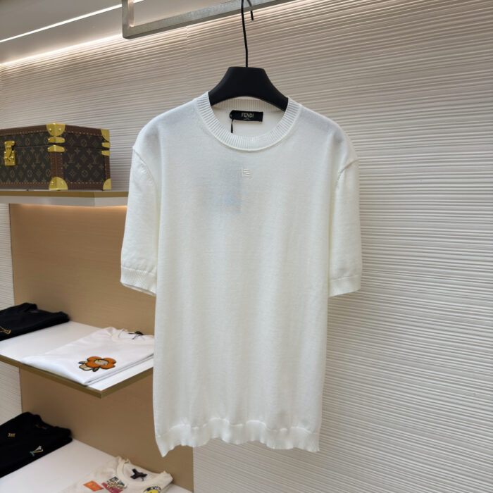 FENDI logo Round neck knit T-shirt White フェンディ logo クルーネック ニット Tシャツ ホワイト