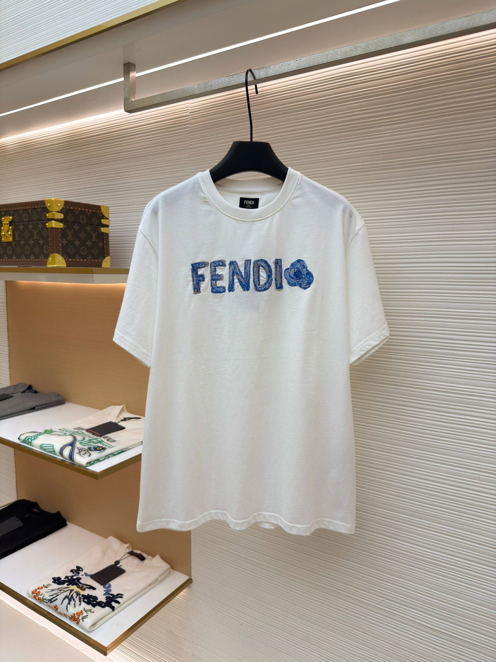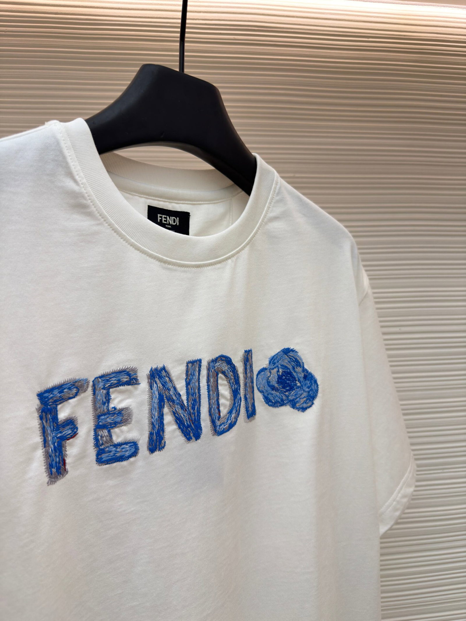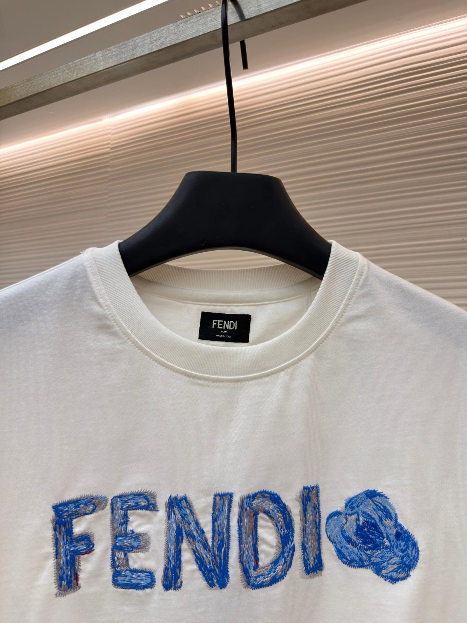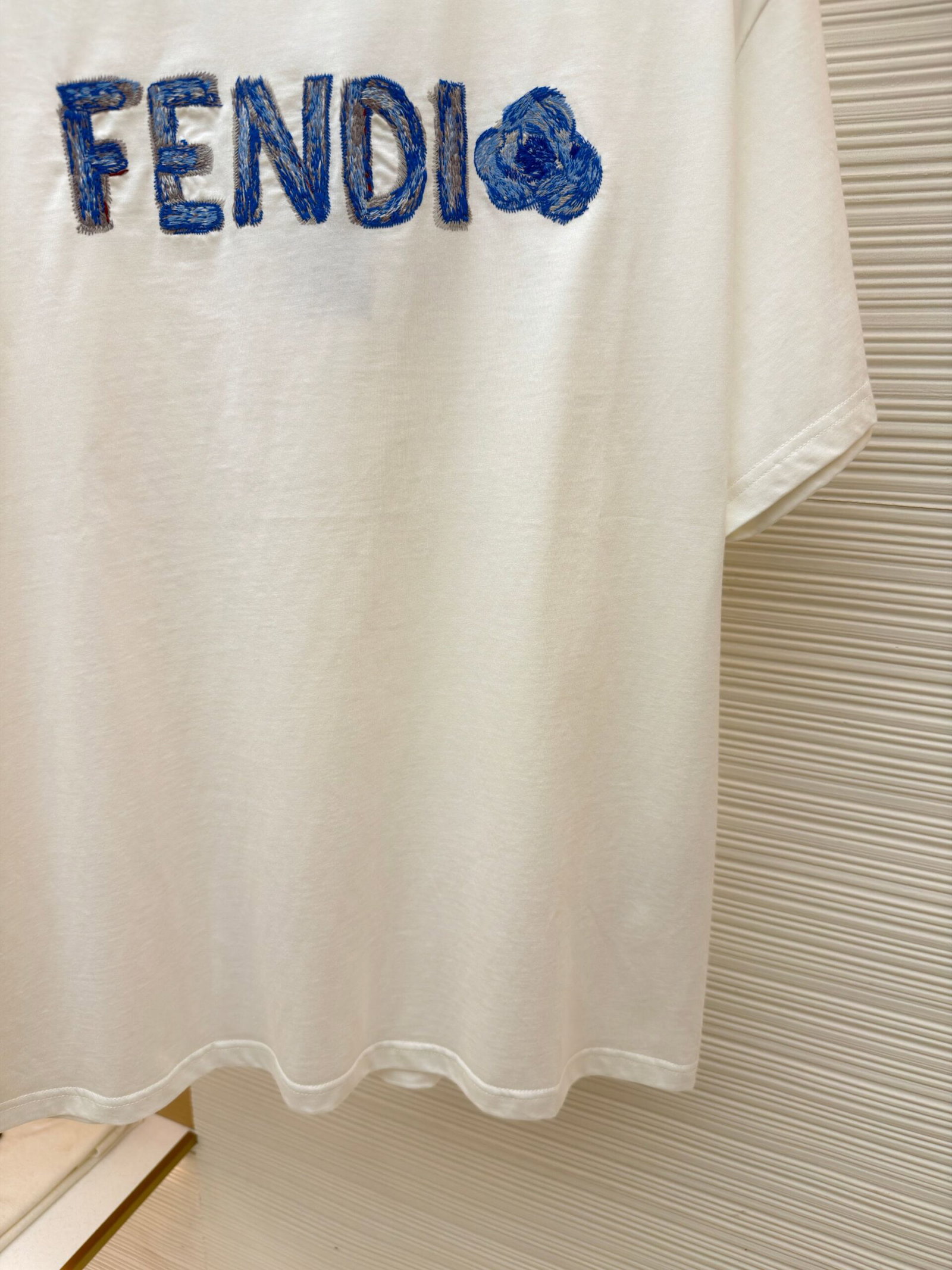 FENDI Embroidery pattern Round neck T-shirt Blue フェンディ 刺繍 パターン クルーネック Tシャツ ブルー