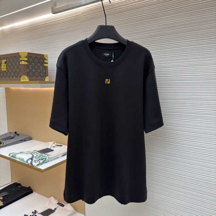 FENDI Embroidery logo Round neck T-shirt Black フェンディ 刺繍 logoクルーネック Tシャツ ブラック