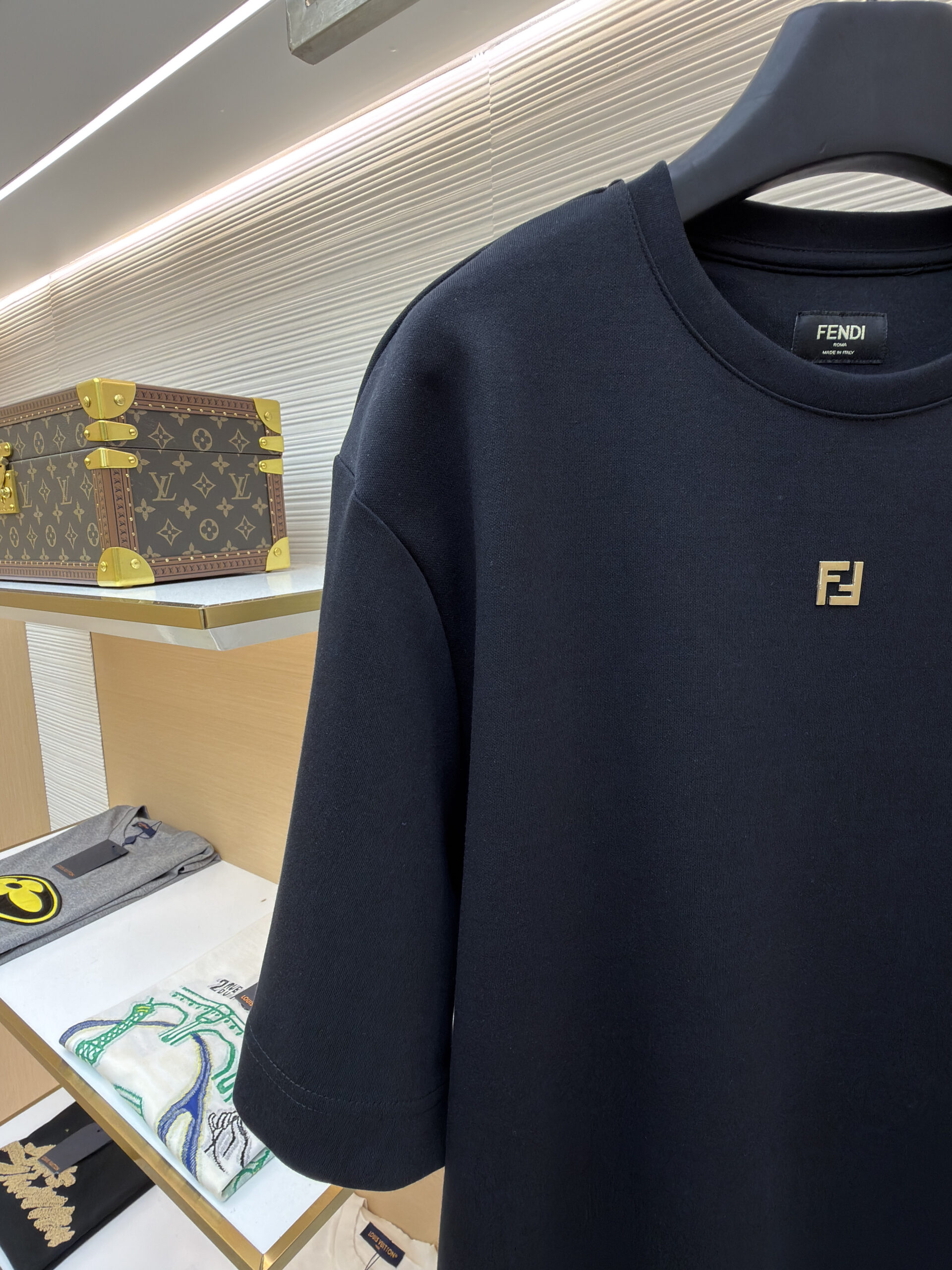 FENDI hardware letter logo Round neck T-shirt Black フェンディ ハードウェアレター logo クルーネック Tシャツ ブラック