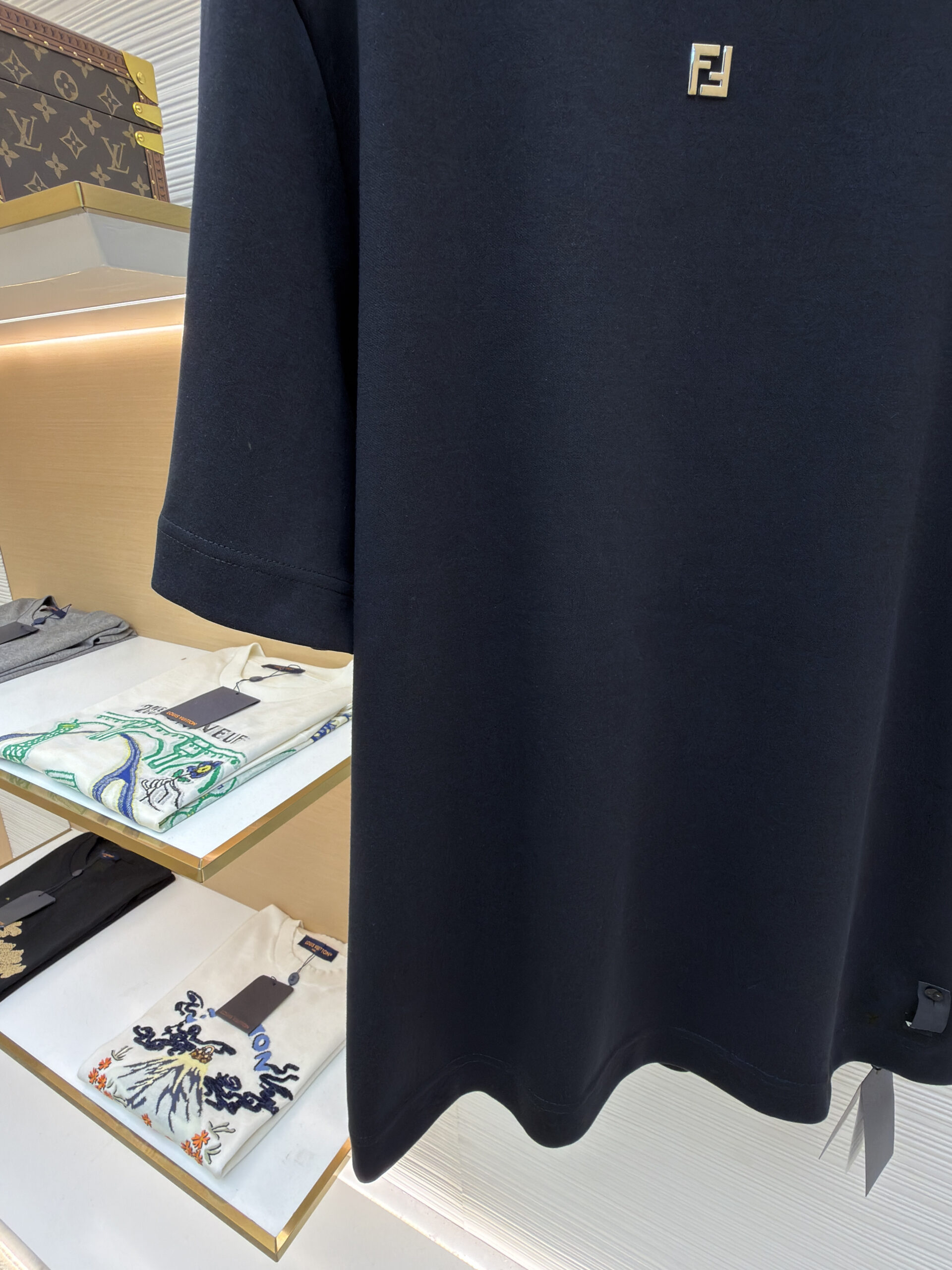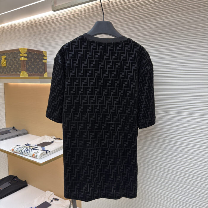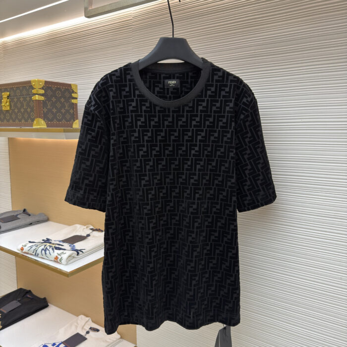 FENDI Suede Letter logo Round neck T-shirt Black フェンディ スエード モジ logo クルーネック Tシャツ ブラック