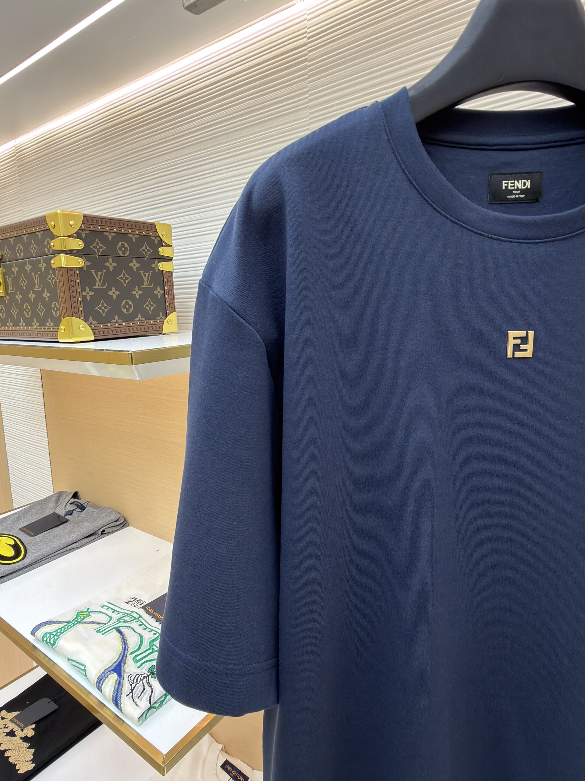 FENDI hardware letter logo Round neck T-shirt Navy フェンディ ハードウェアレター logo クルーネック Tシャツ ネイビー