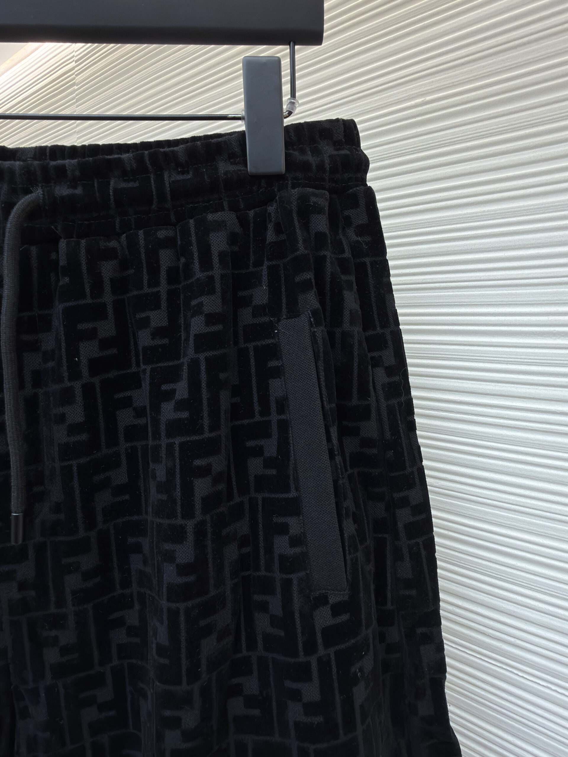 FENDI Suede Letter logo loose casual shorts Black フェンディ スエード モジ logo ゆったり カジュアル ショートパンツ ブラック