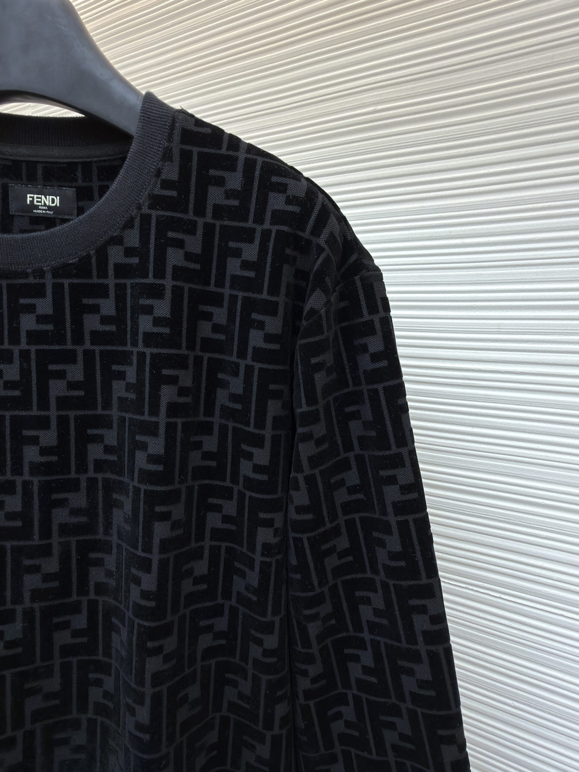 FENDI Suede Letter logo Round neck Sweatshirt Black フェンディ スエード モジ logo クルーネック スウェットブラック