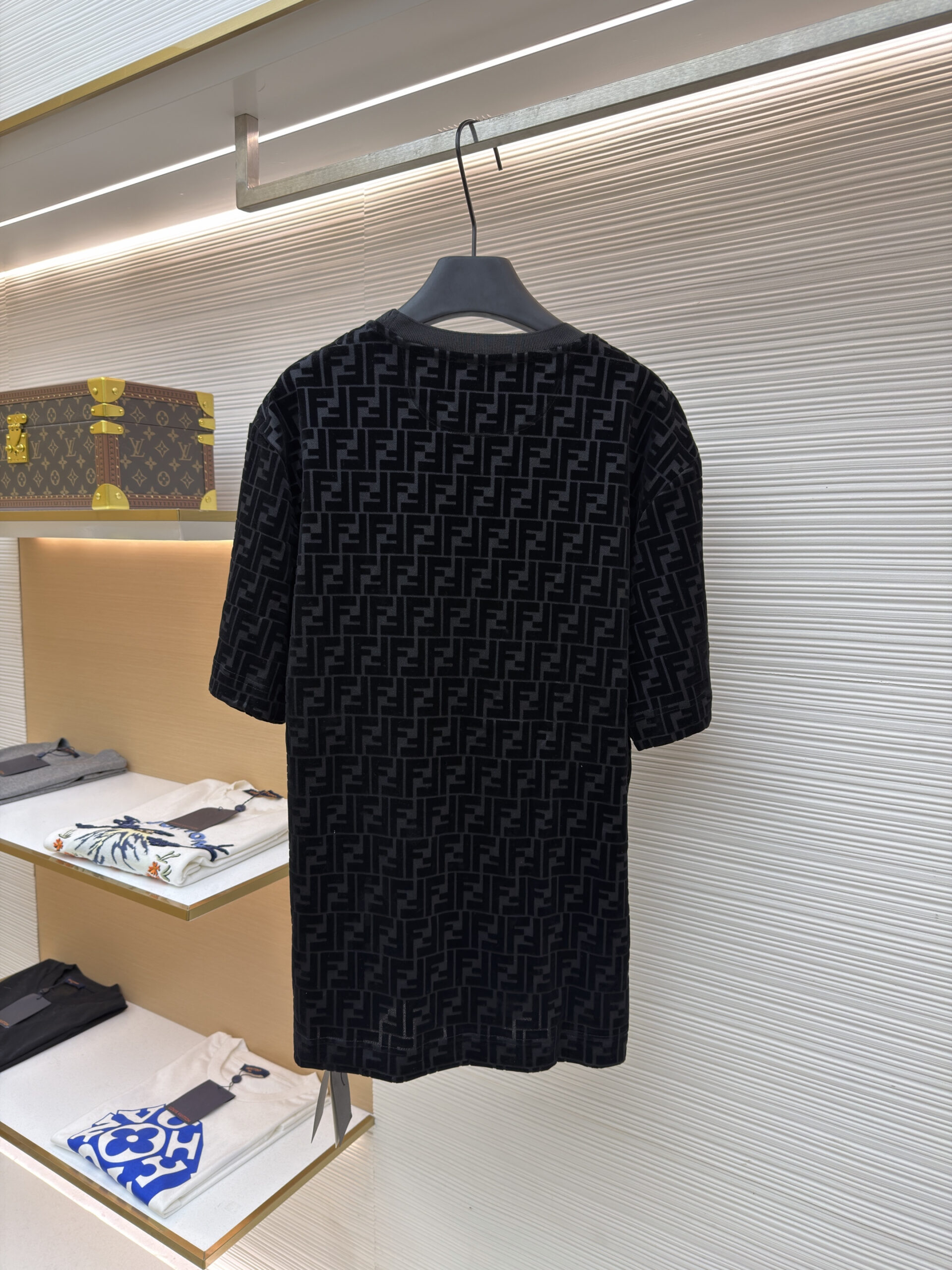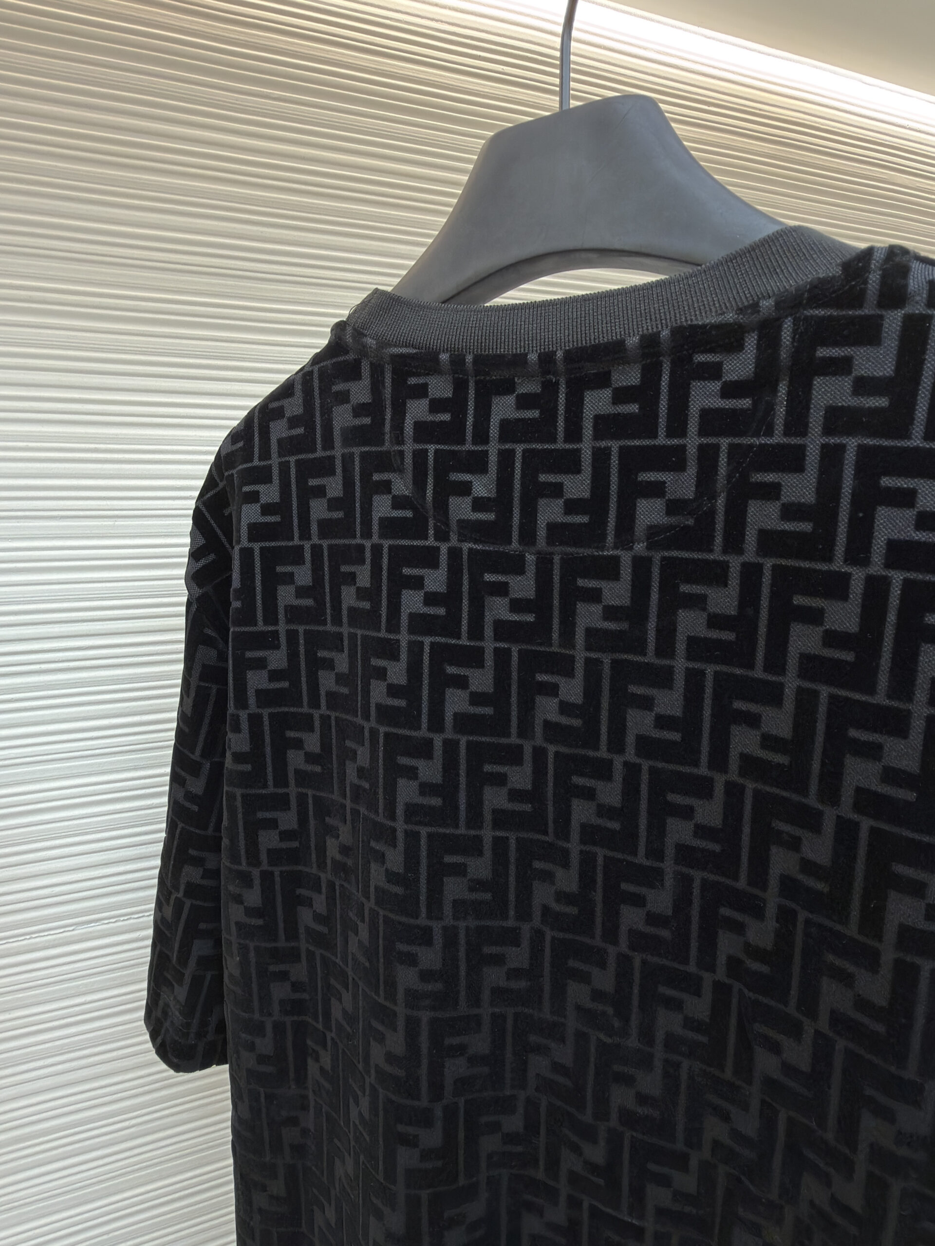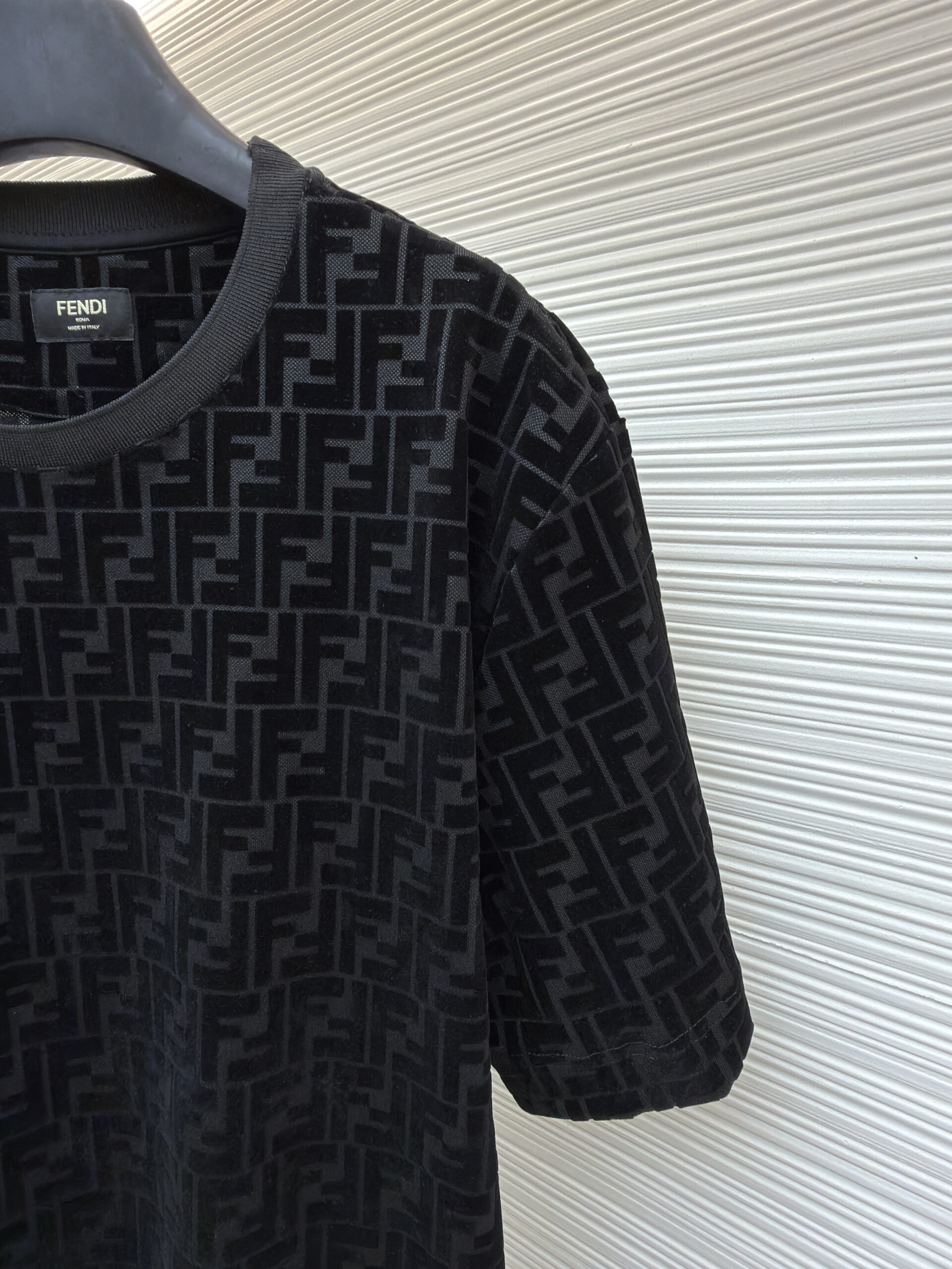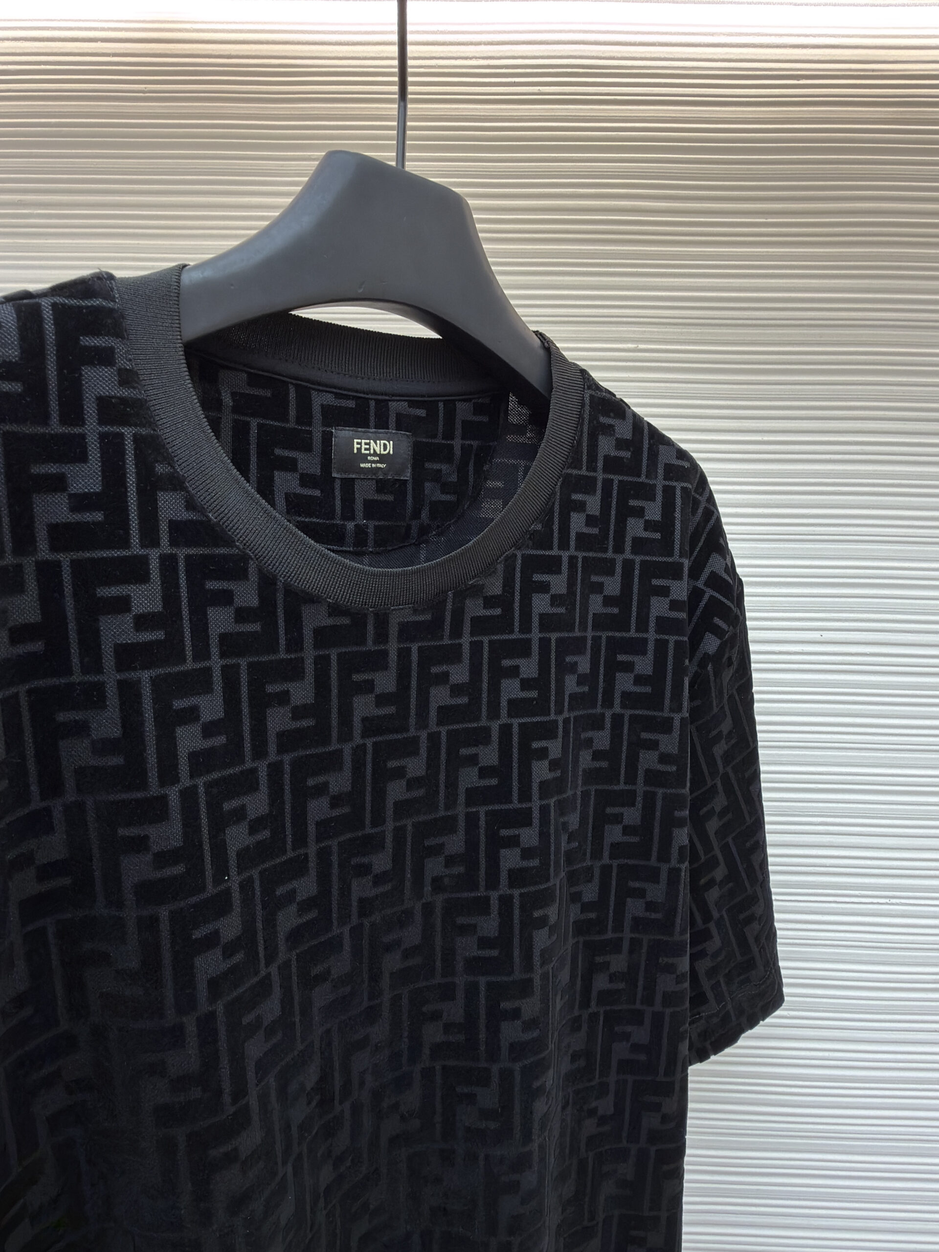 FENDI Suede Letter logo Round neck T-shirt Black フェンディ スエード モジ logo クルーネック Tシャツ ブラック