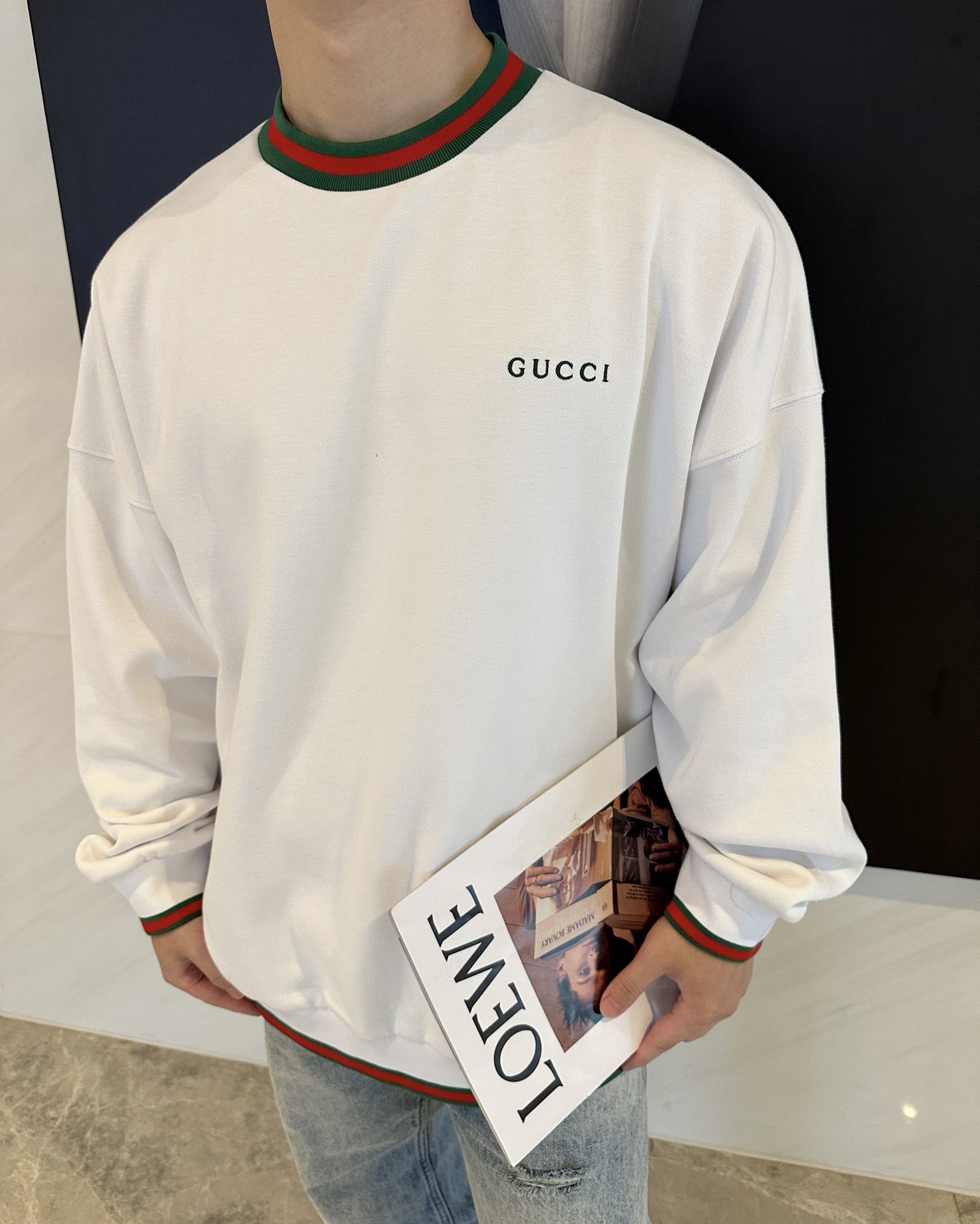 GUCCI Embroidery LOGO Round neck Sweatshirt White グッチ 刺繍 LOGO クルーネック スウェット ホワイト