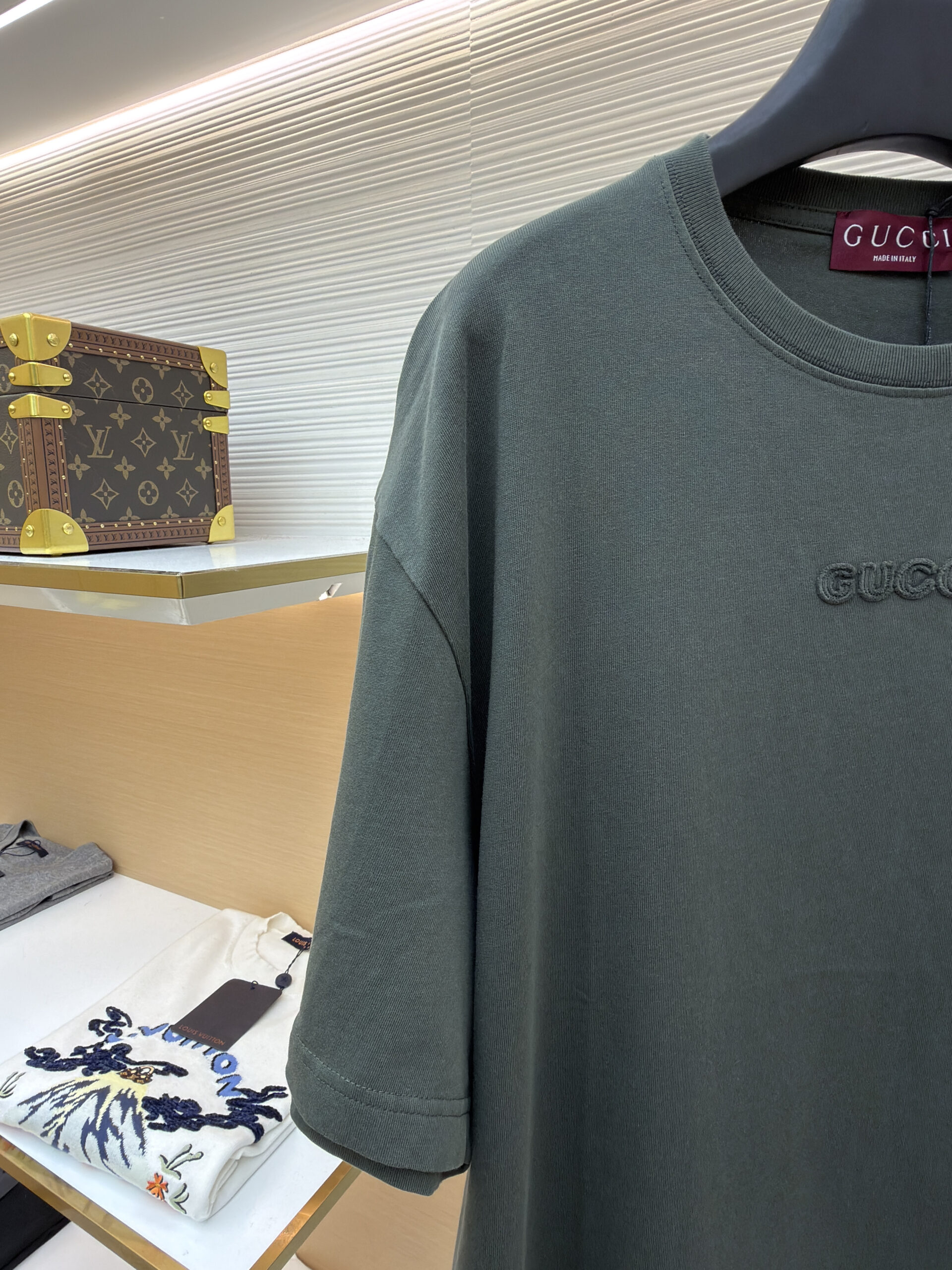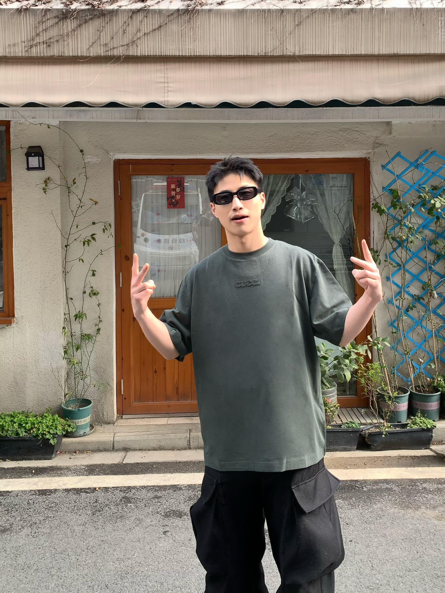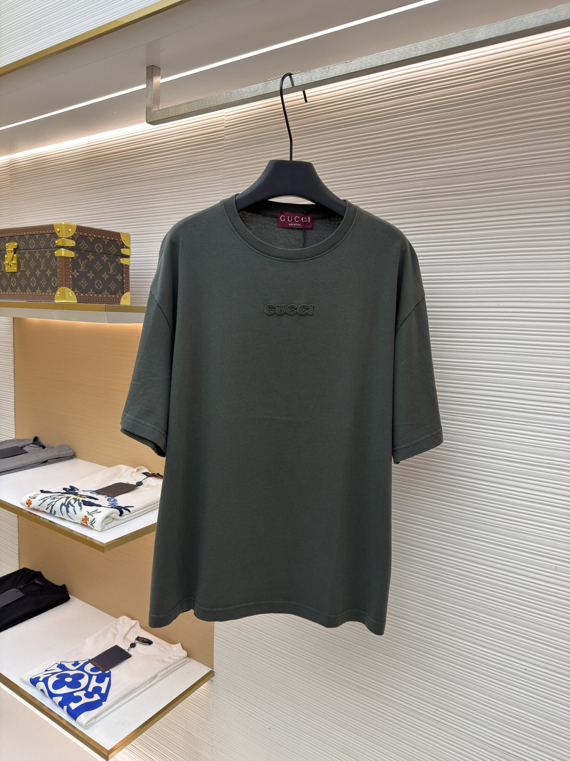 GUCCI Embroidery logo Round neck T-shirt dark Green グッチ 刺繍 logo クルーネック Tシャツ ダーク グリーン