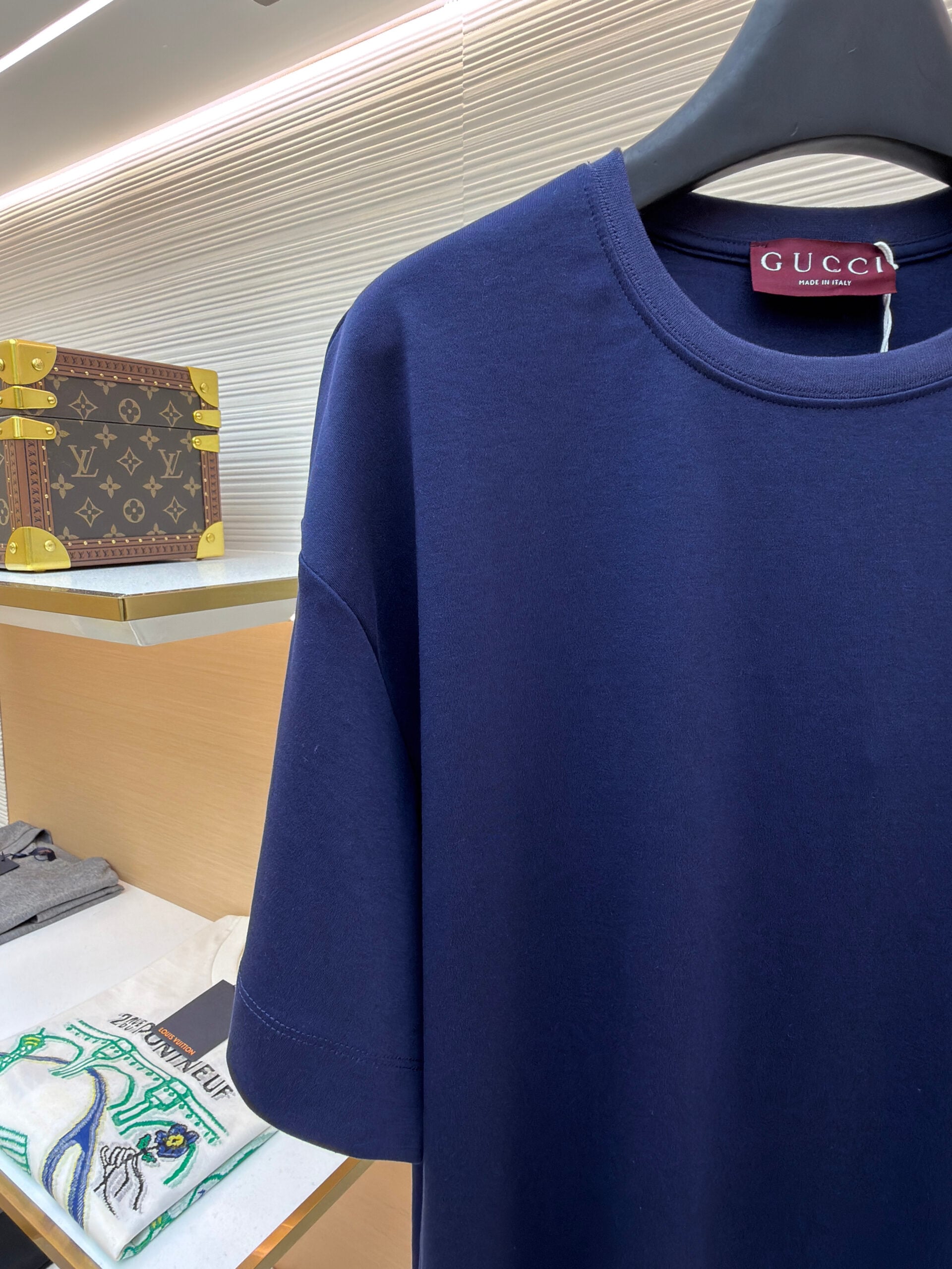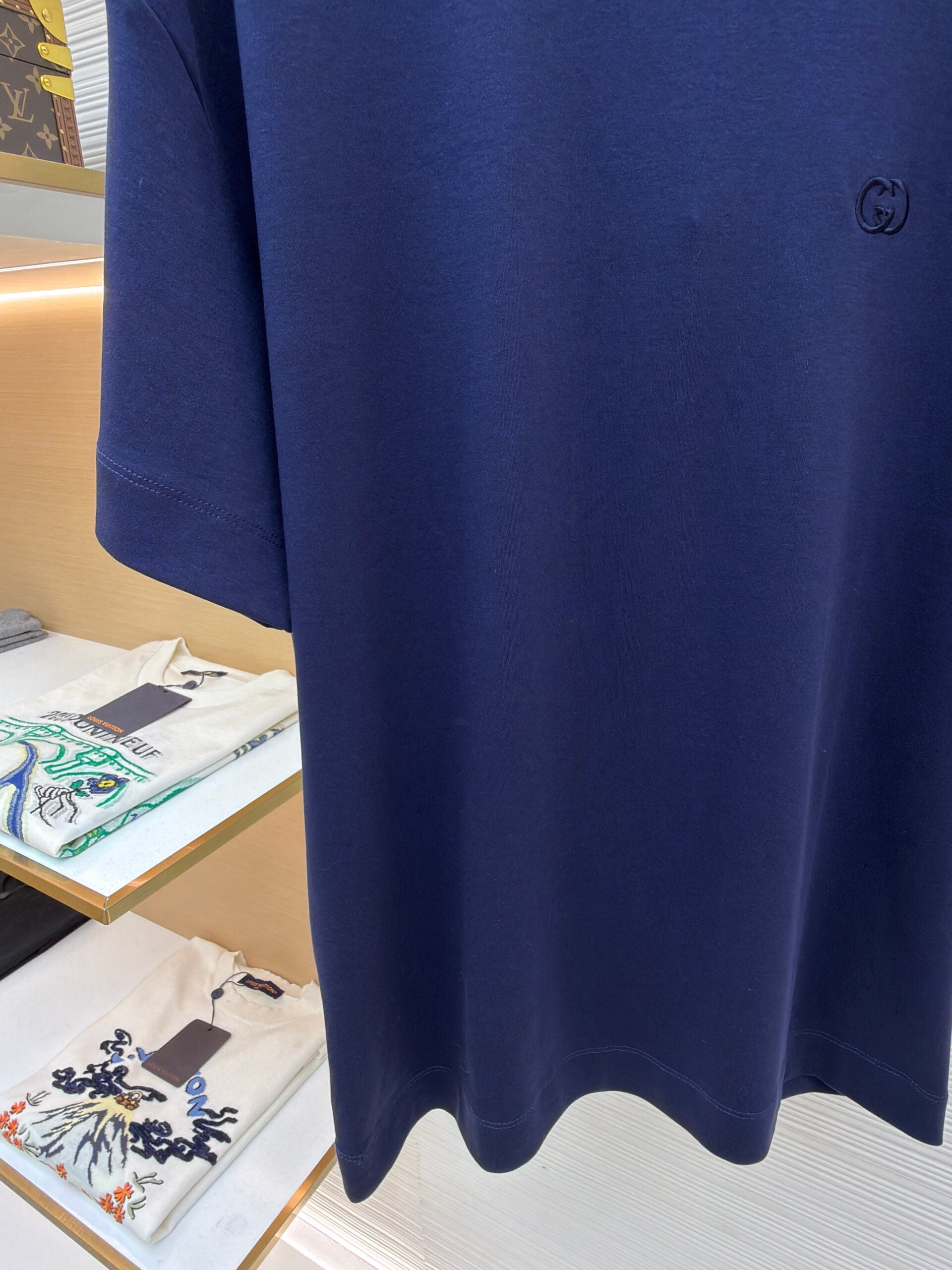 GUCCI Embroidery LOGO Round neck T-shirt Navy グッチ 刺繍 LOGO クルーネック Tシャツ ネイビー