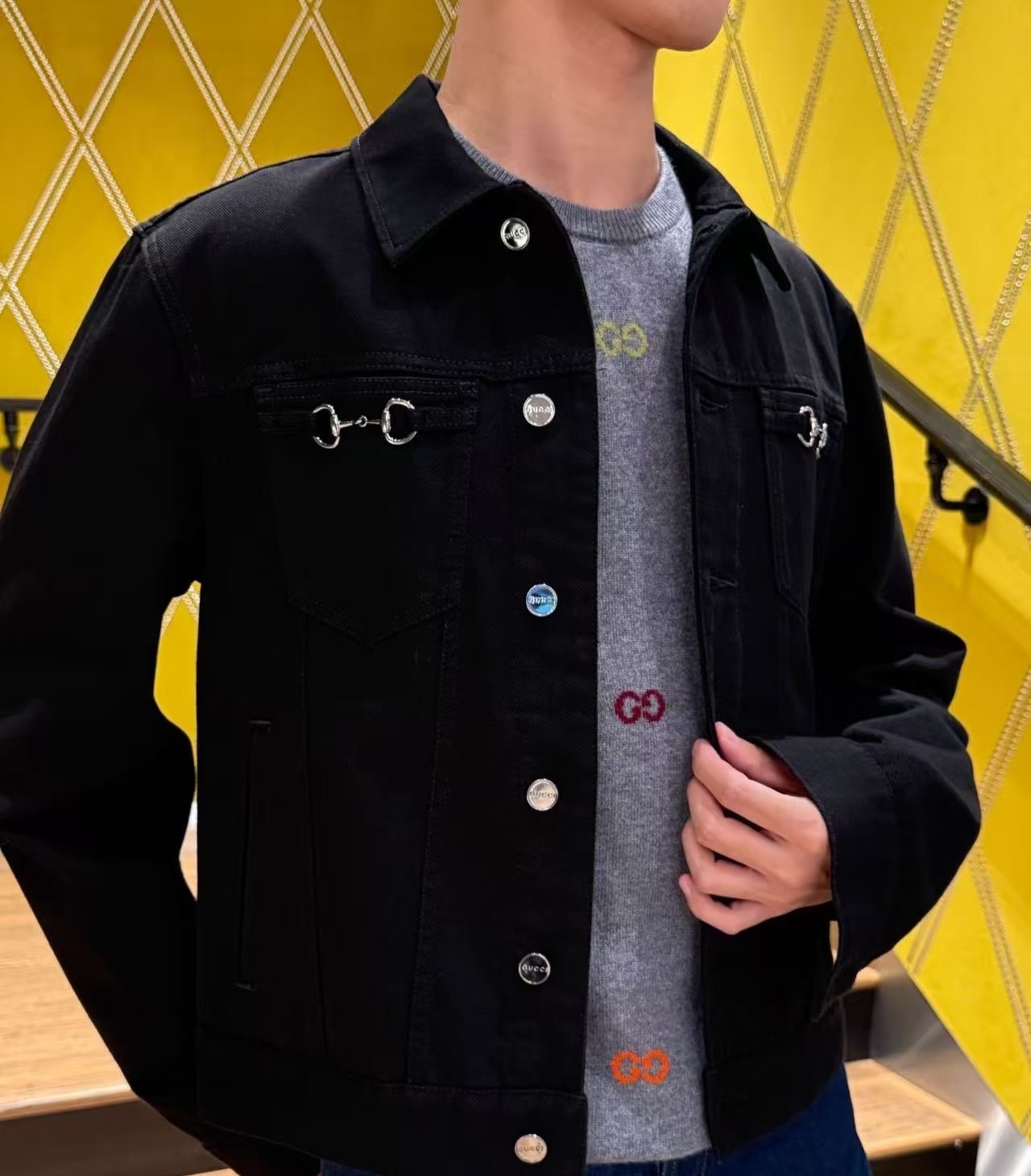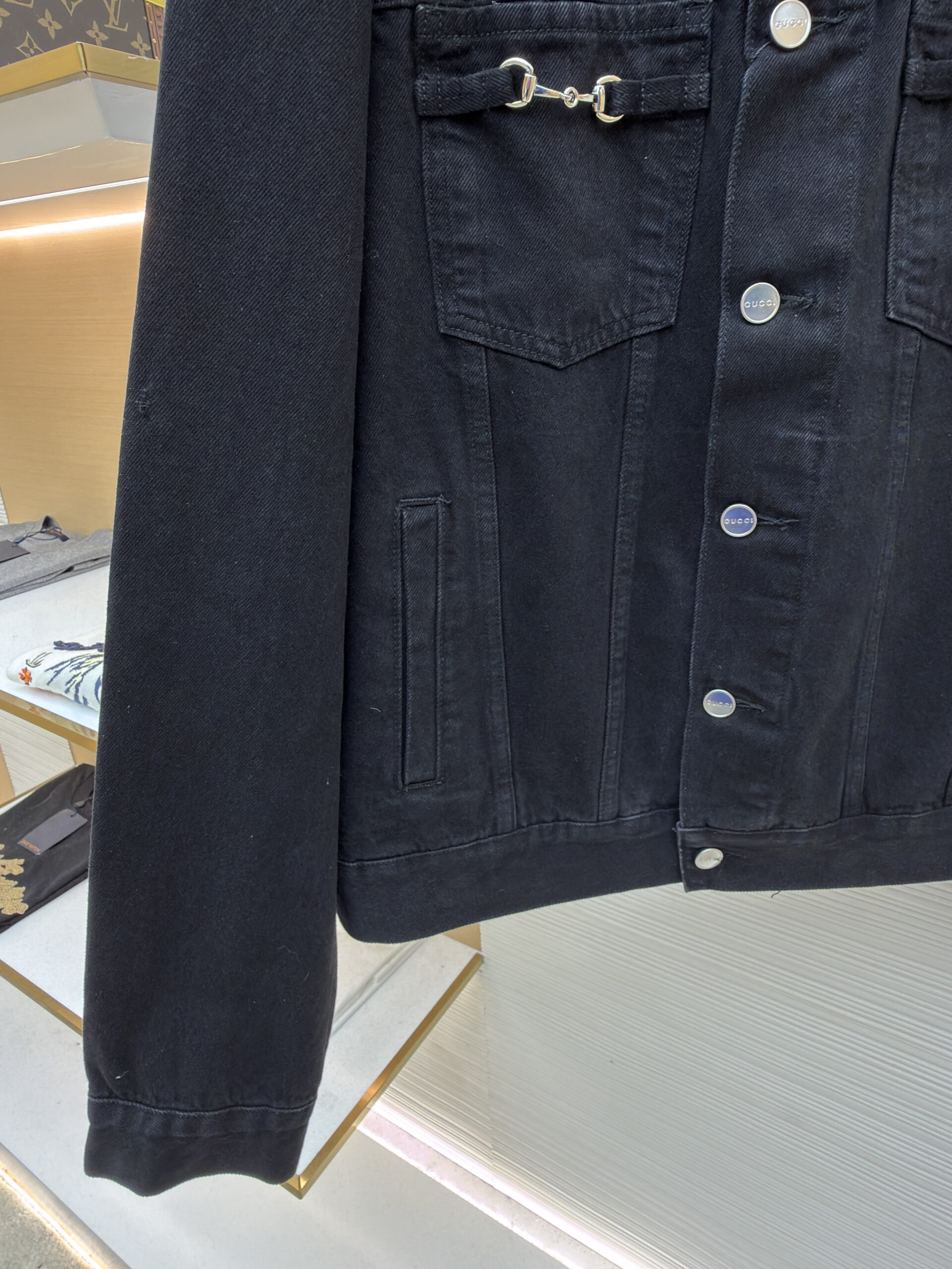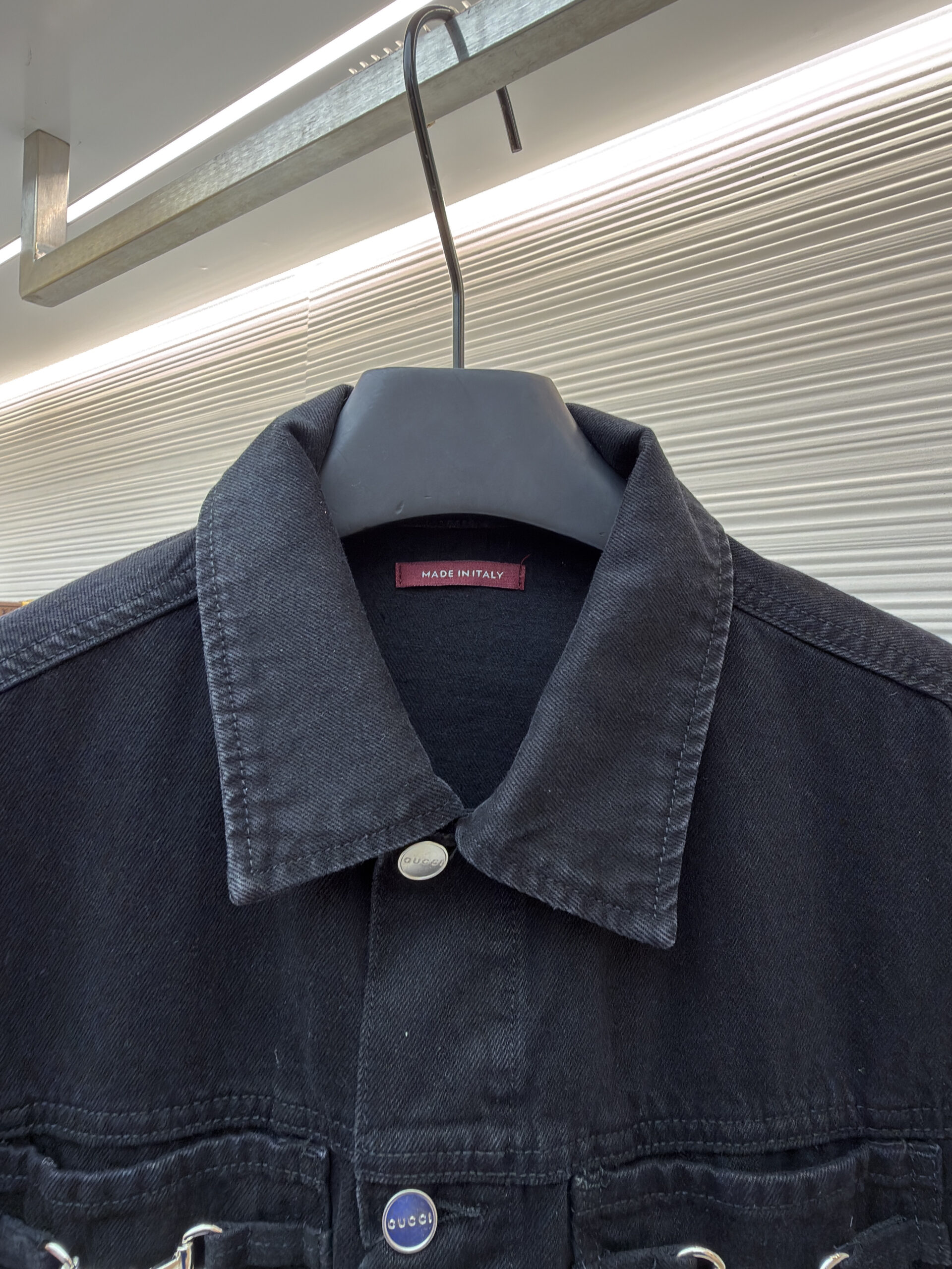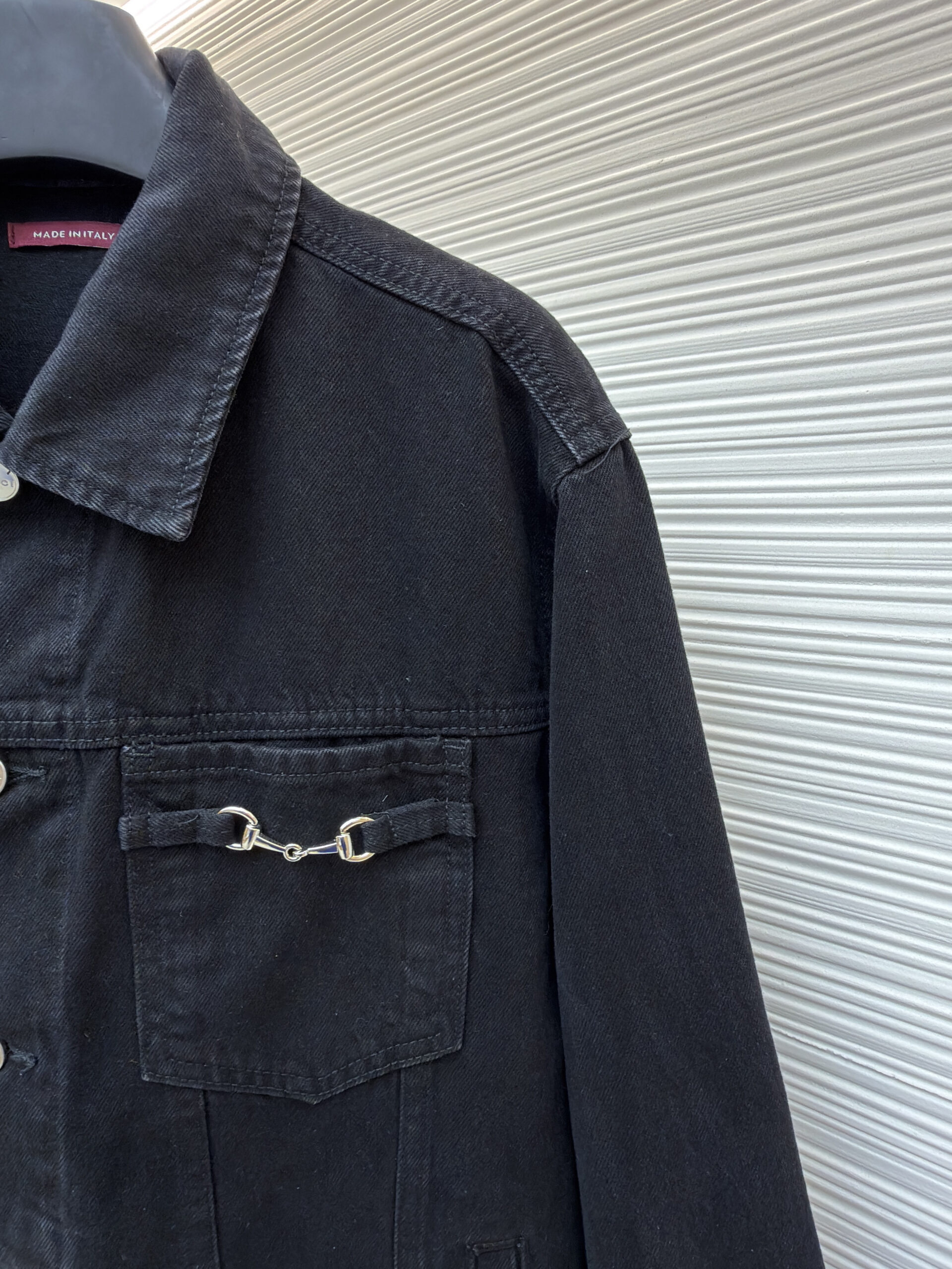 GUCCI LOGO Single-Breasted DENIM jacket Black グッチ LOGO シングルブレスト デニム ジャケット ブラック
