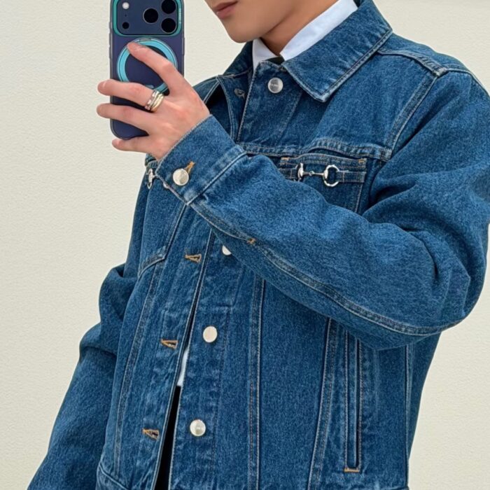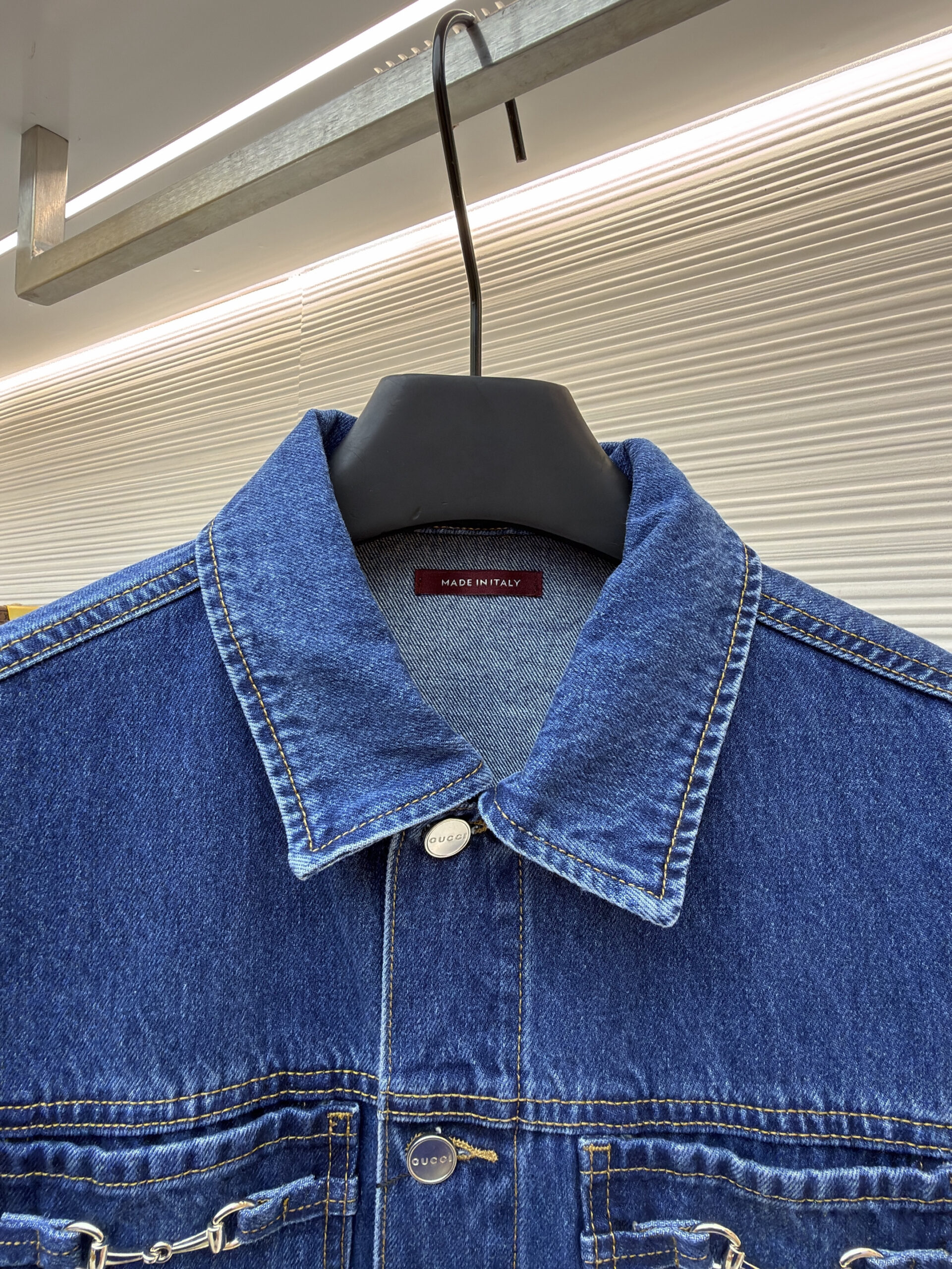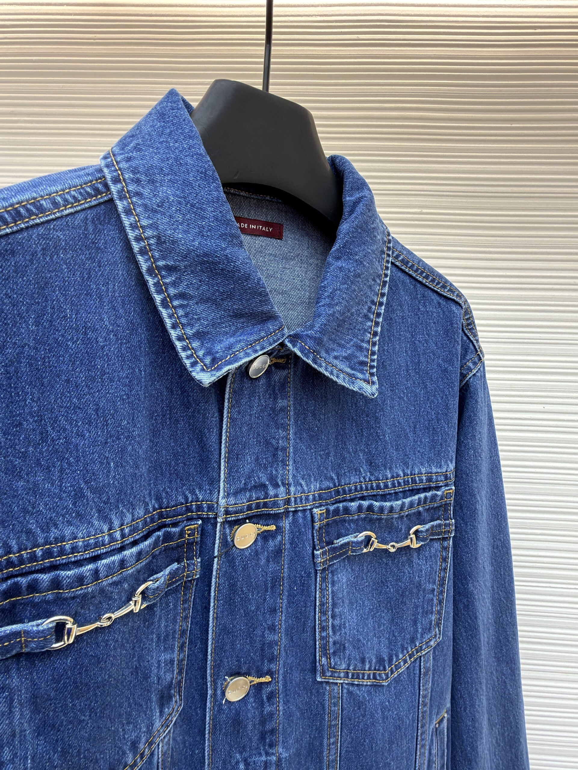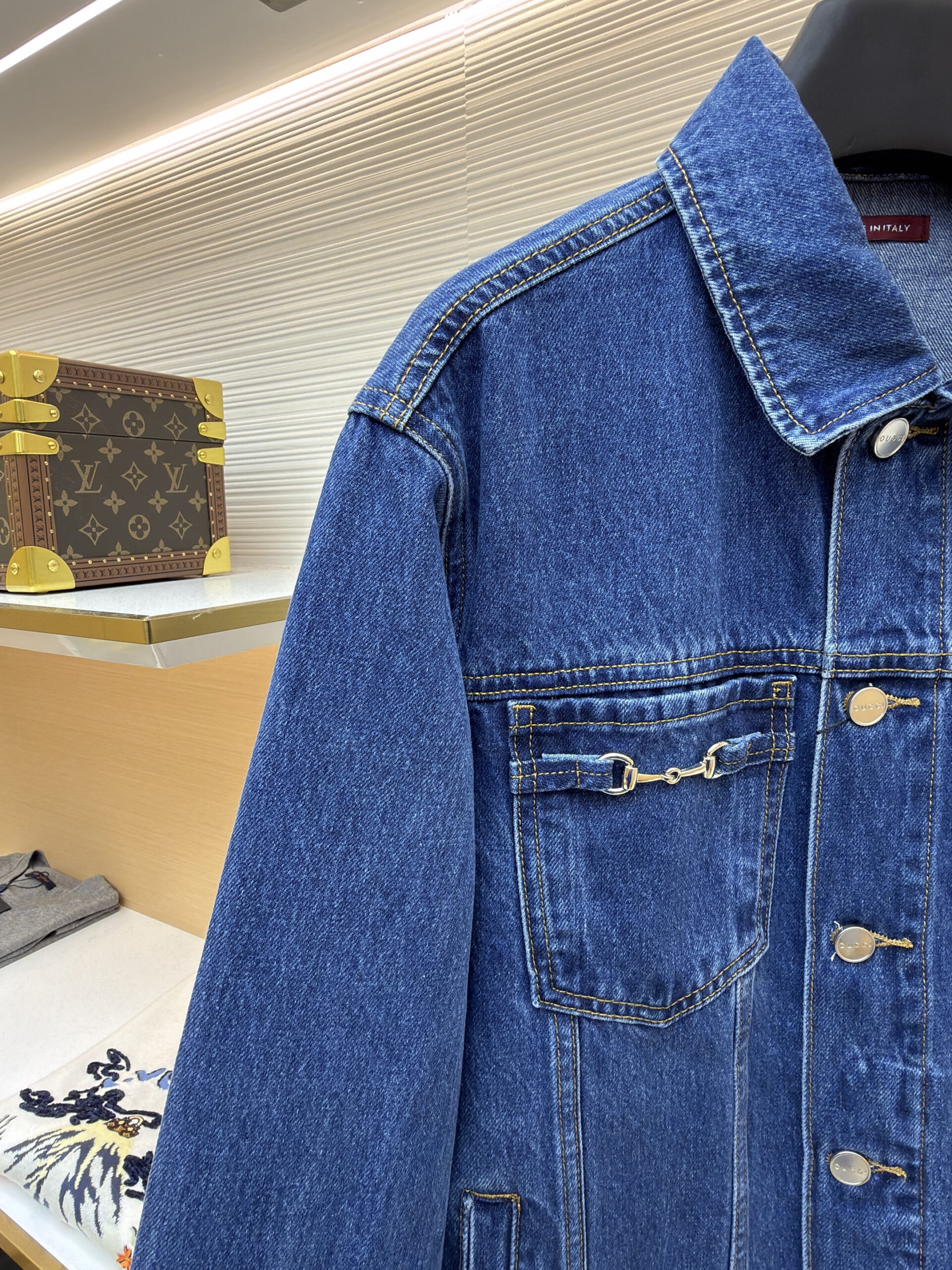 GUCCI LOGO Single-Breasted DENIM jacket Blue グッチ LOGO シングルブレスト デニム ジャケット ブルー