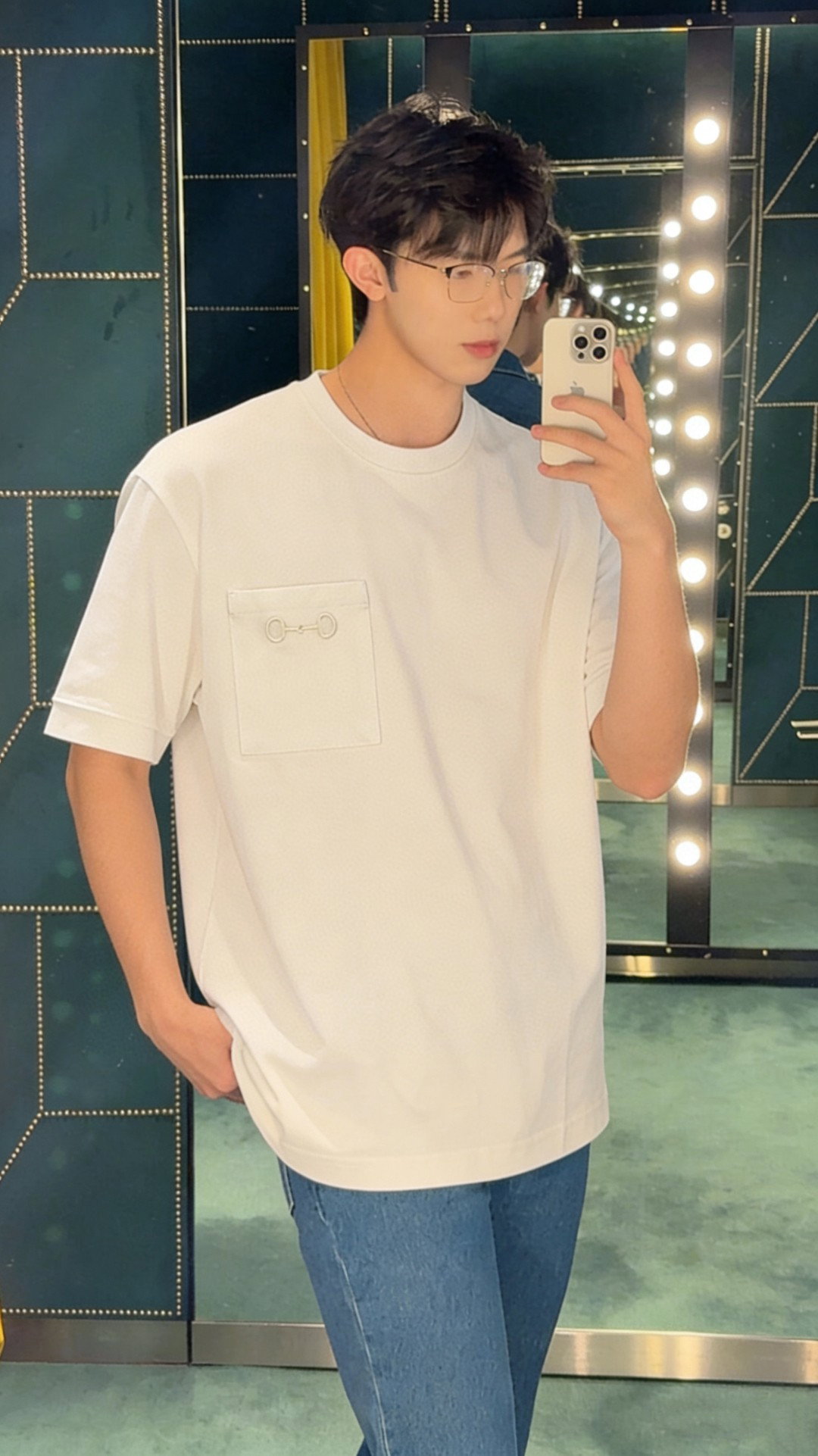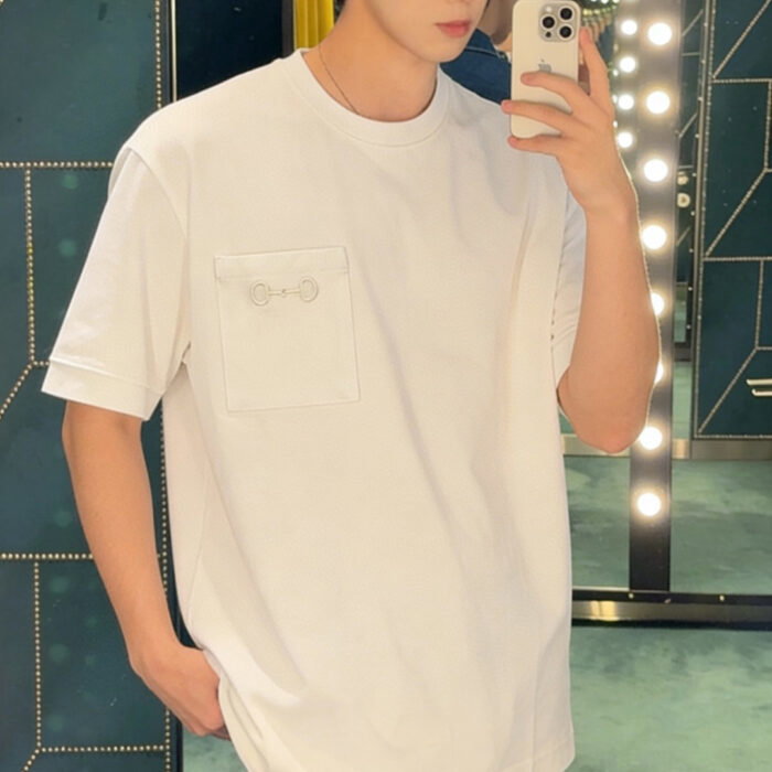 GUCCI pocket Embroidery LOGO Round neck T-shirt White グッチ ポケット 刺繍 LOGO クルーネック Tシャツ ホワイト