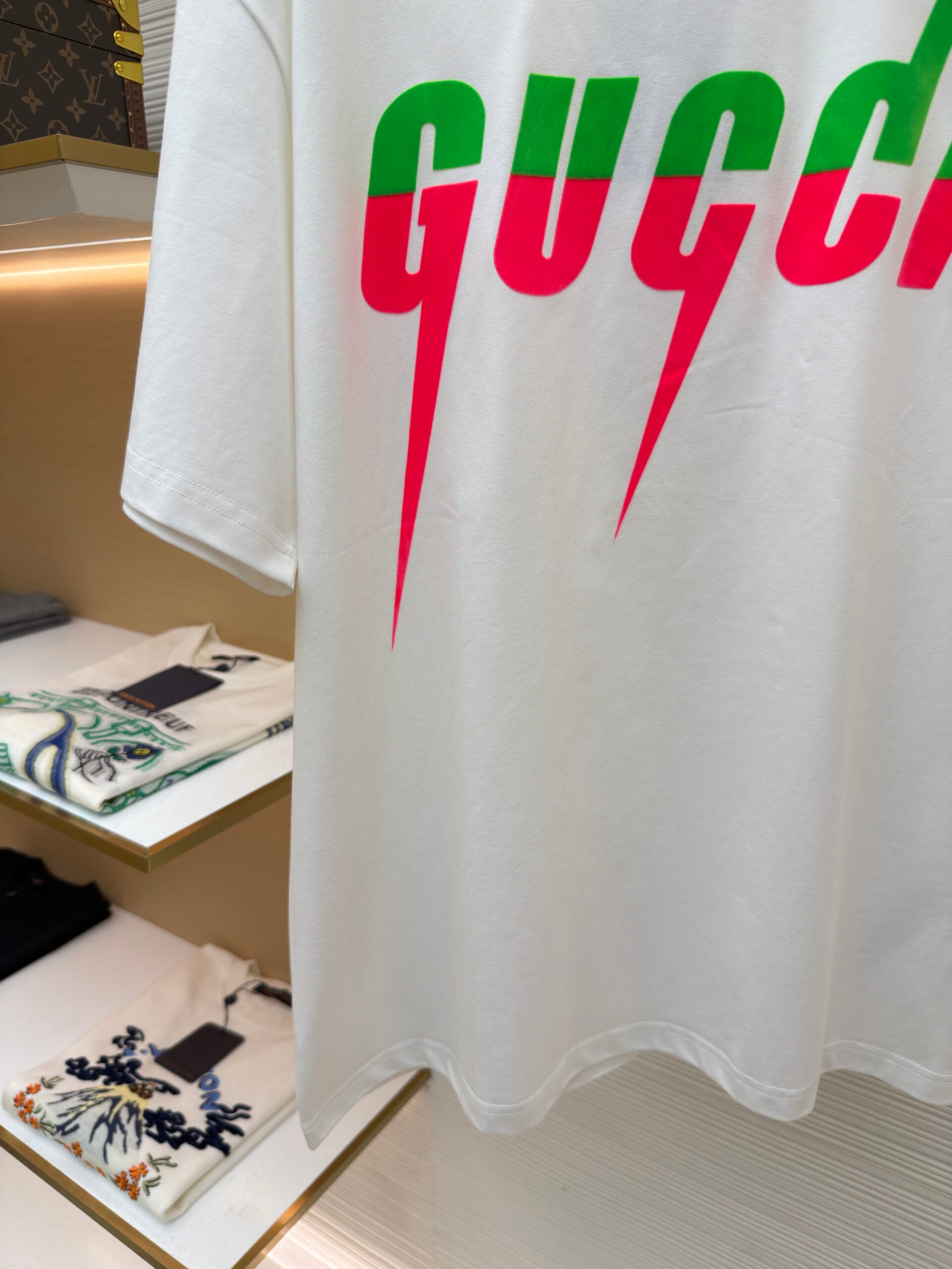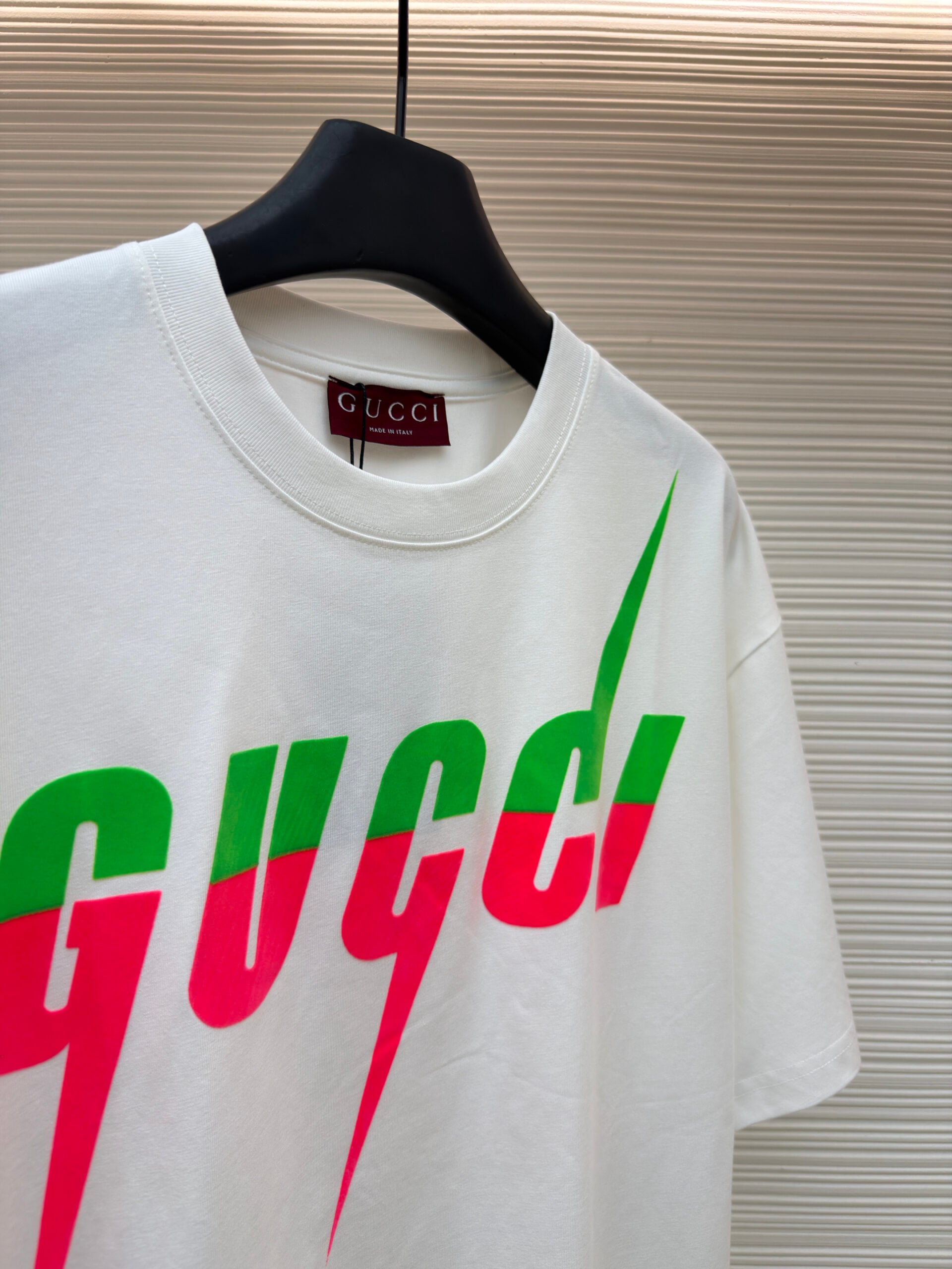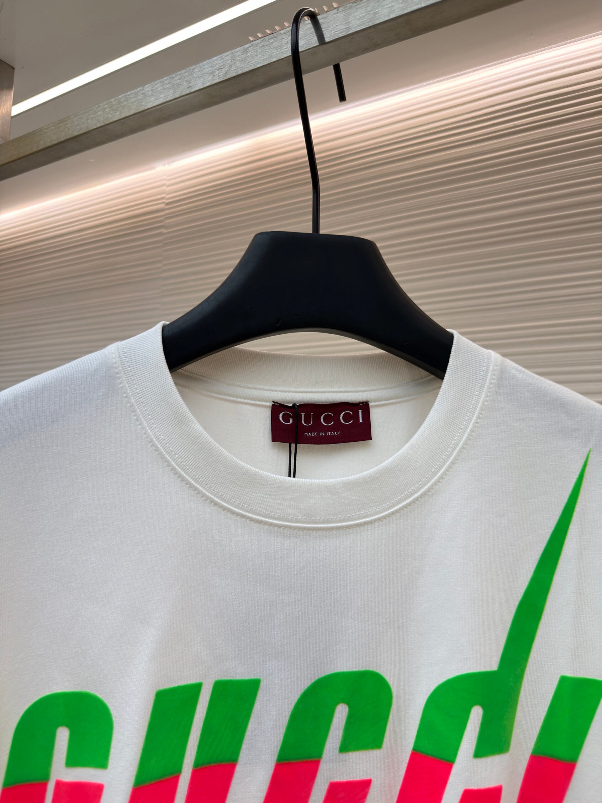 GUCCI Print combination color logo Round neck T-shirt White グッチ プリント コンビデザイン logo クルーネック Tシャツ ホワイト