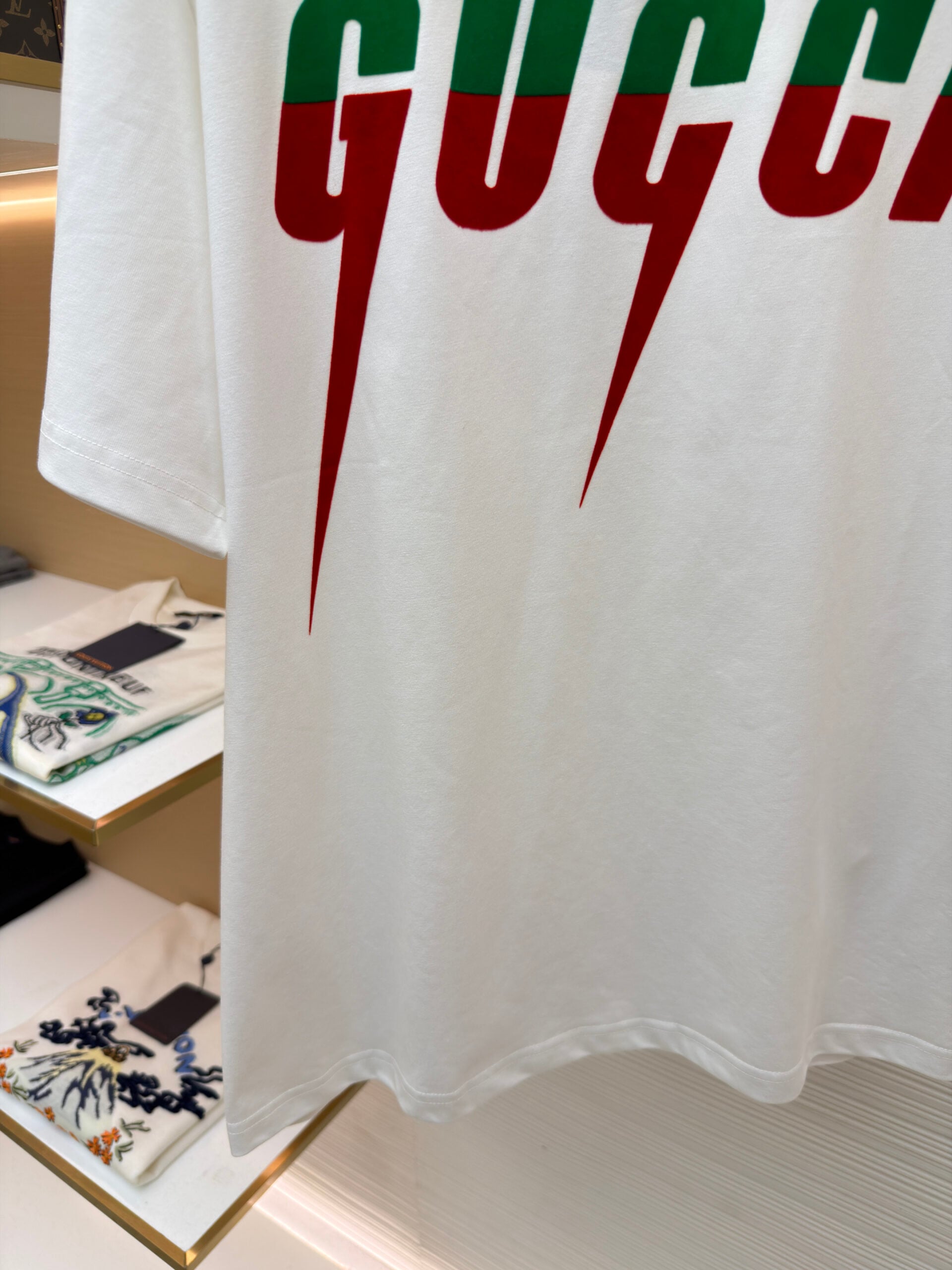 GUCCI Print combination color logo Round neck T-shirt White グッチ プリント コンビデザイン logo クルーネック Tシャツ ホワイト
