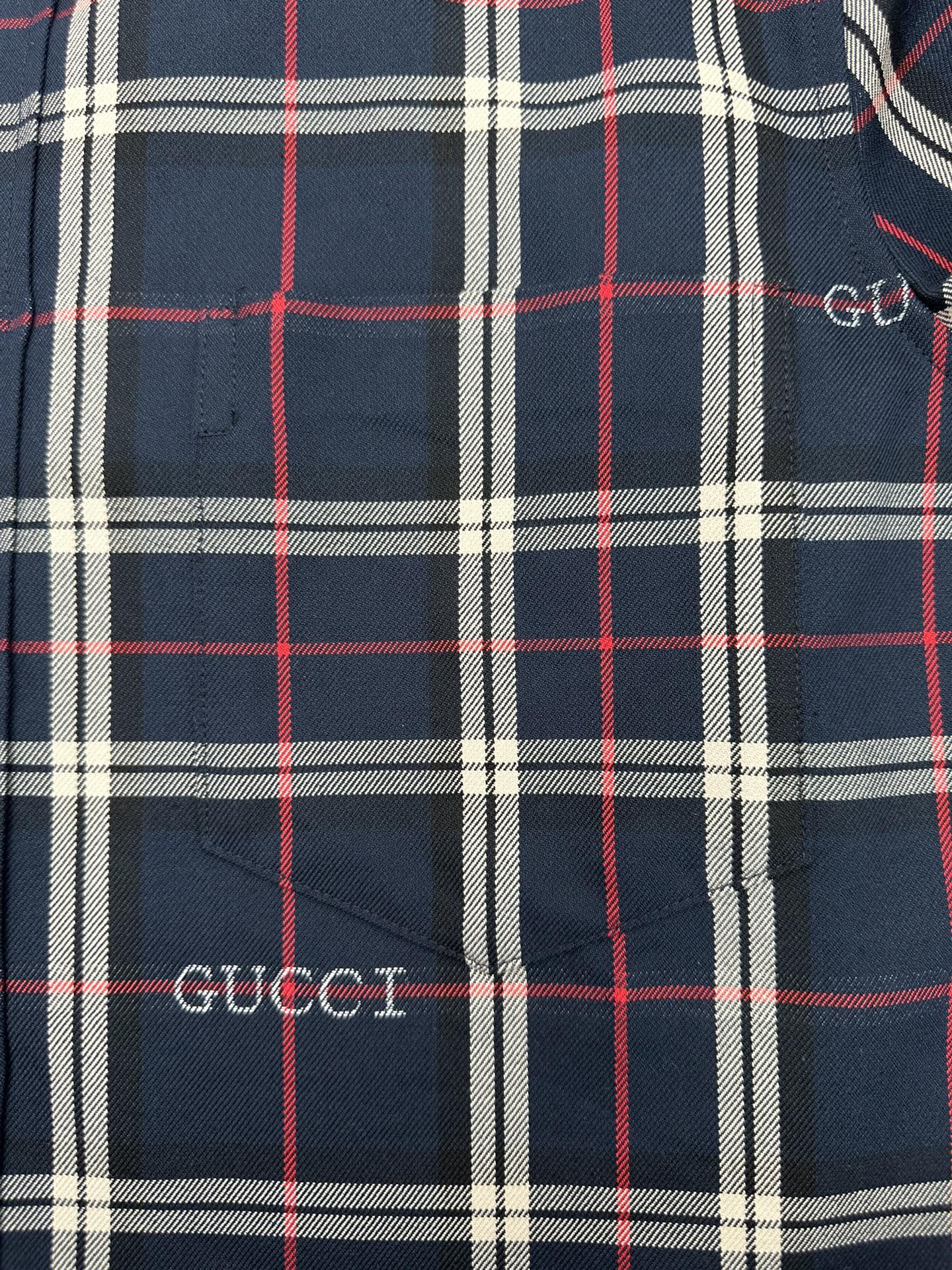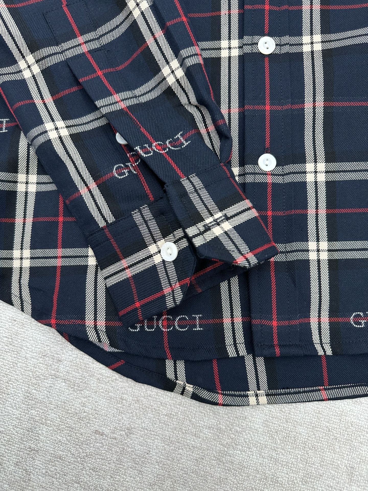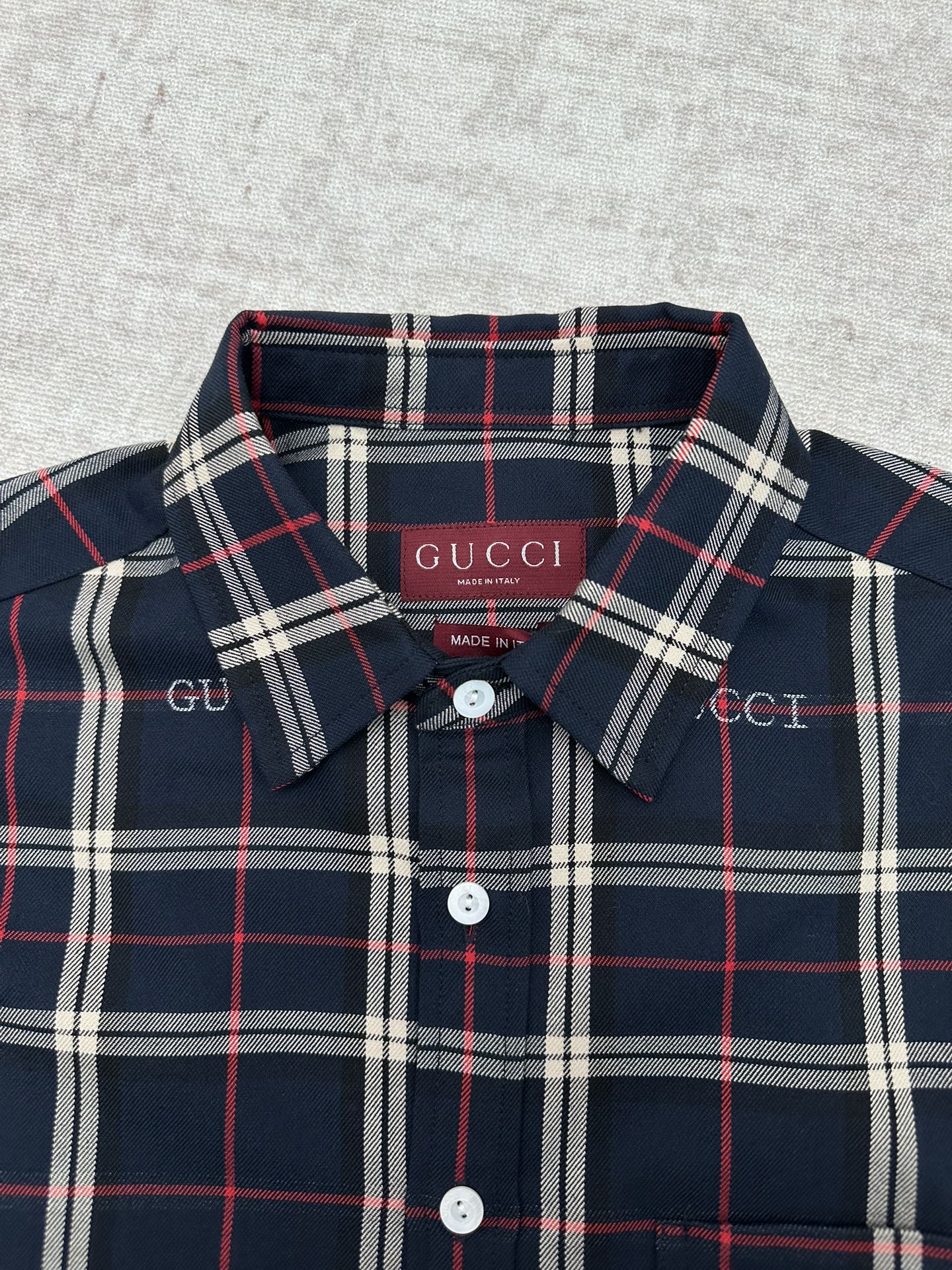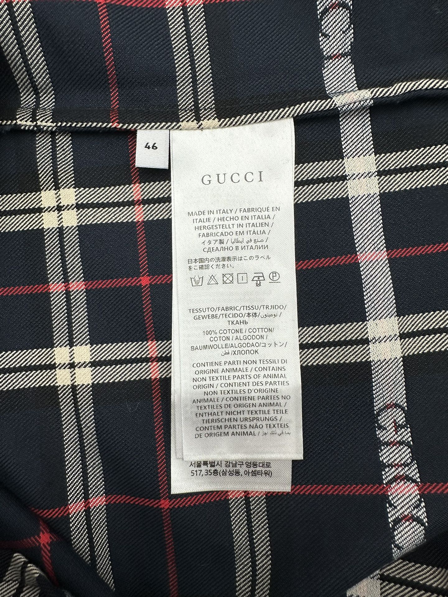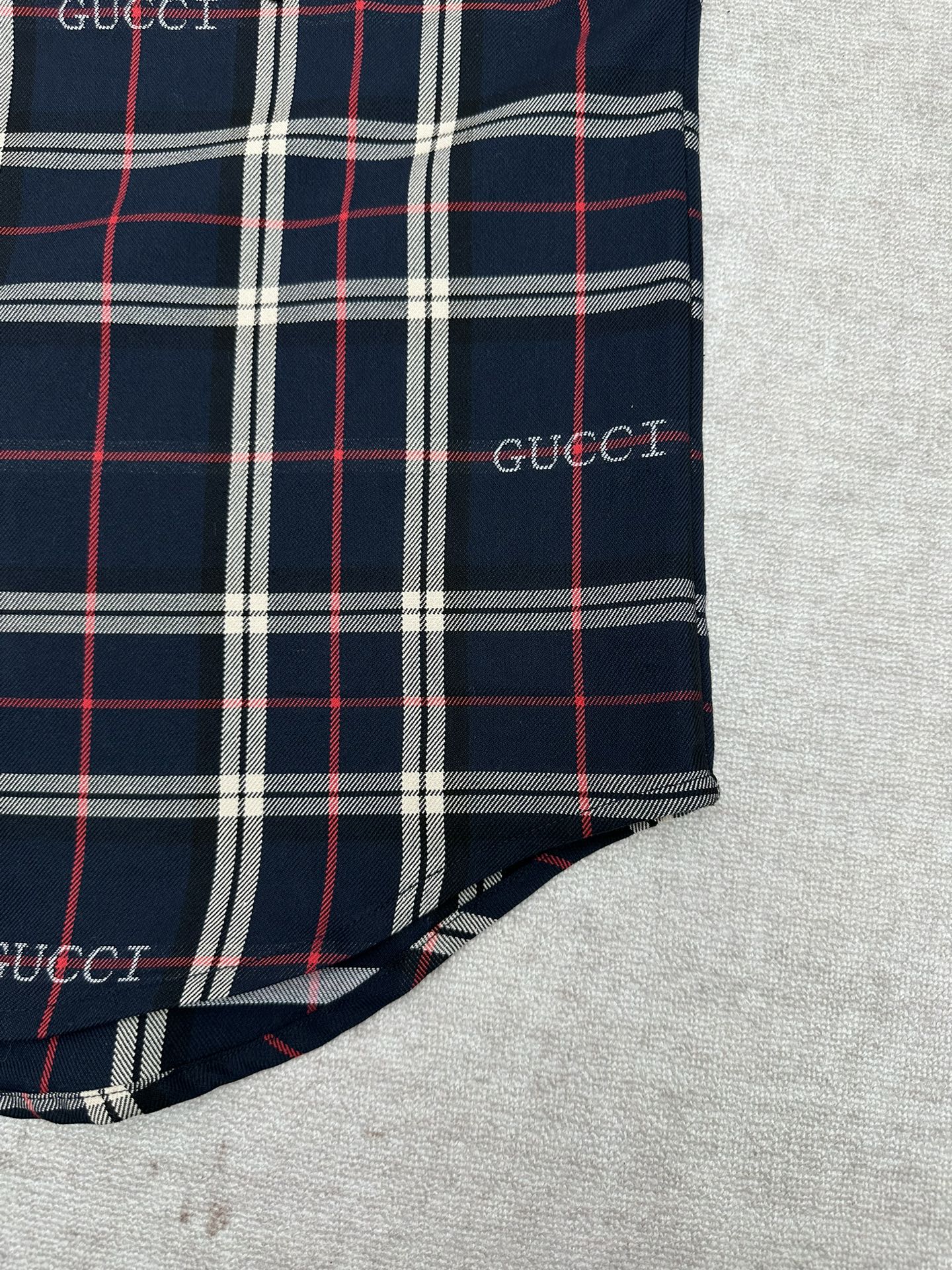 GUCCI Print LOGO Plaid Turn-Down Collar shirt グッチ プリント LOGO 格子柄 ターンダウンカラー シャツ