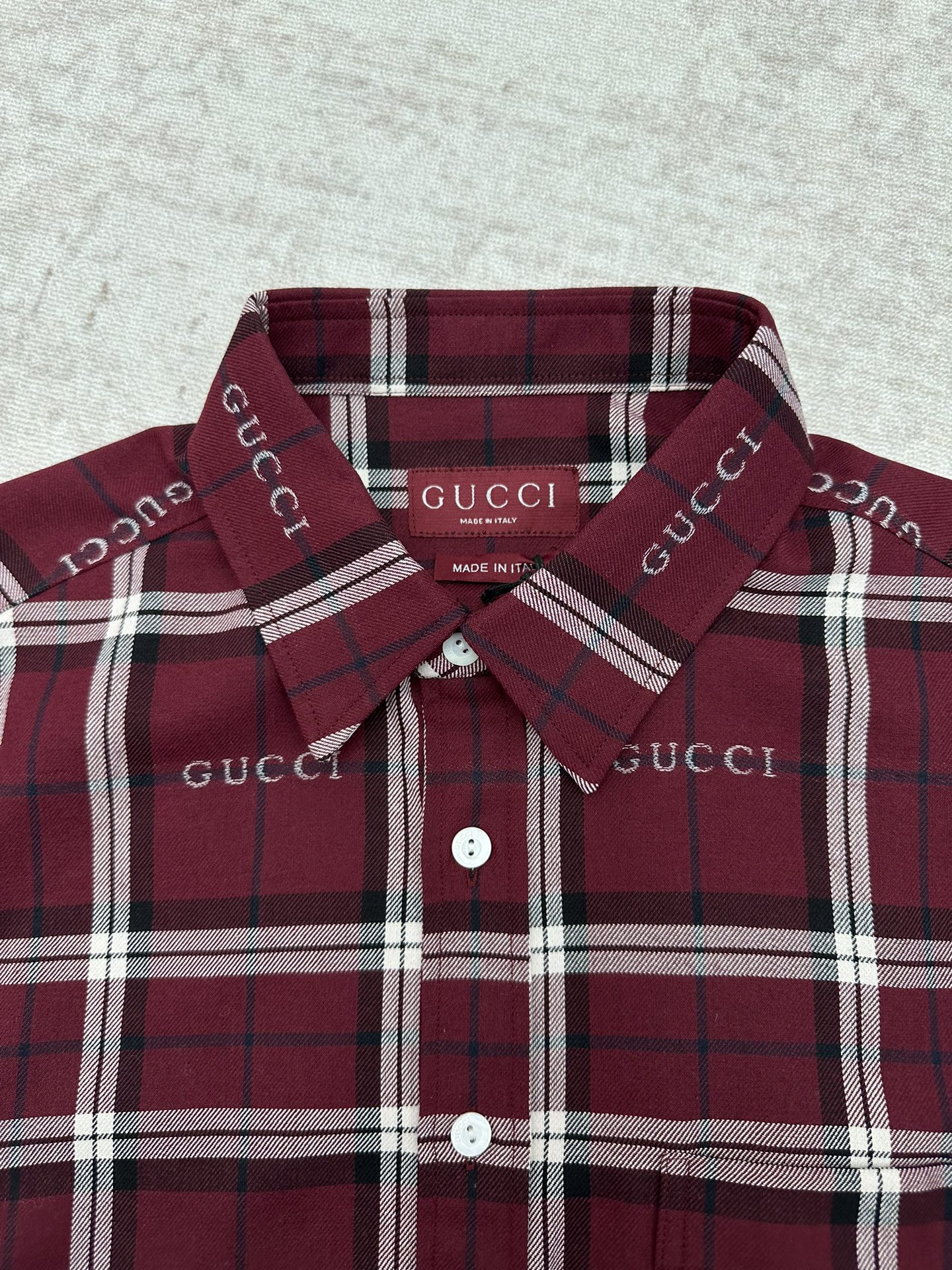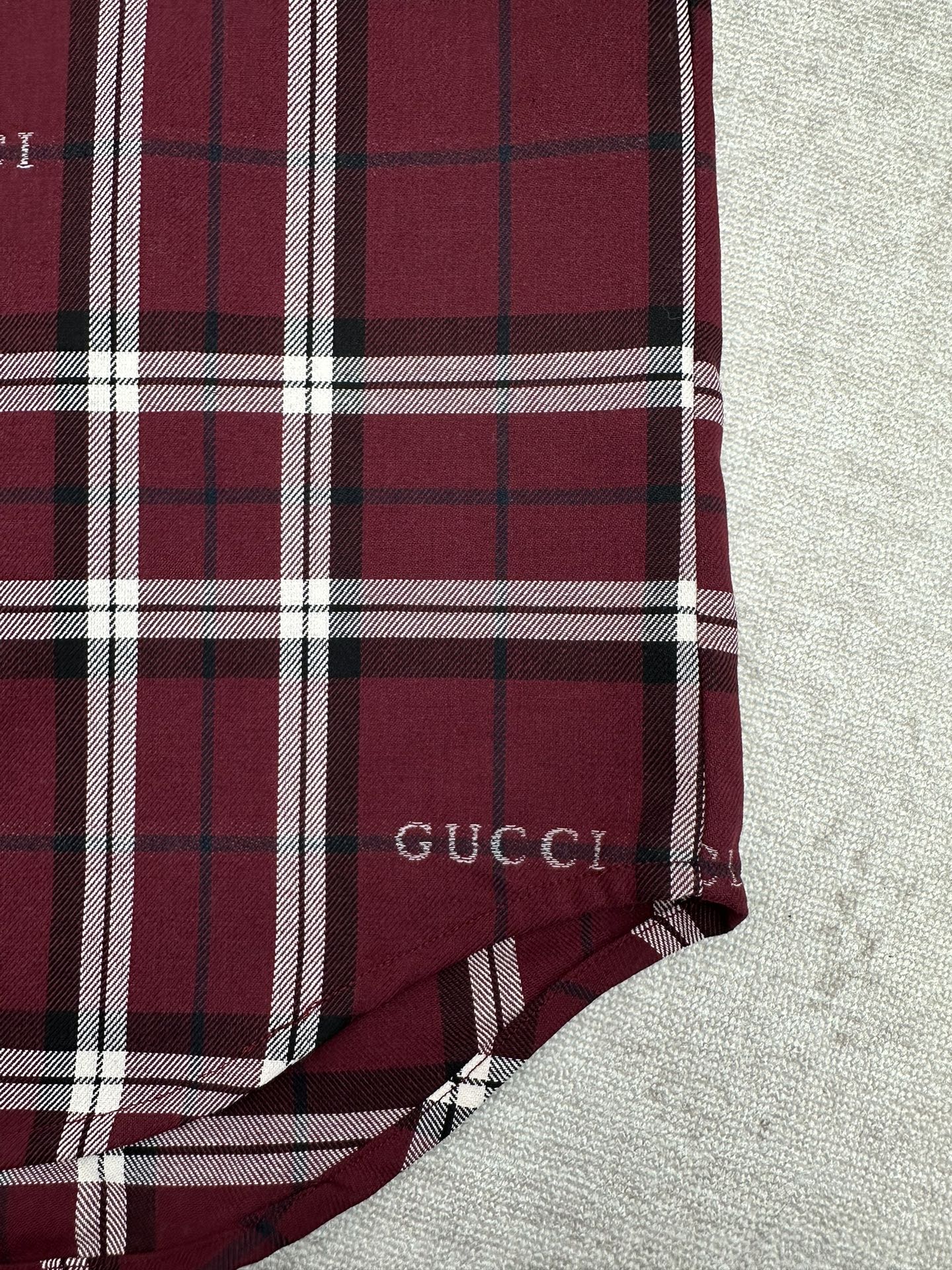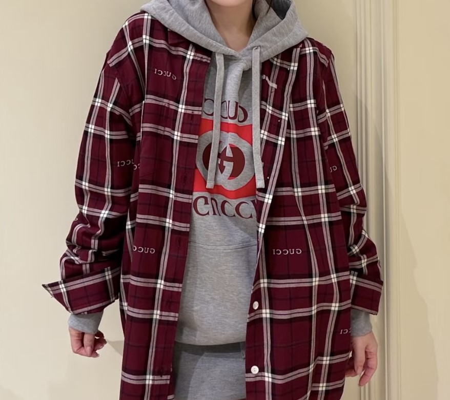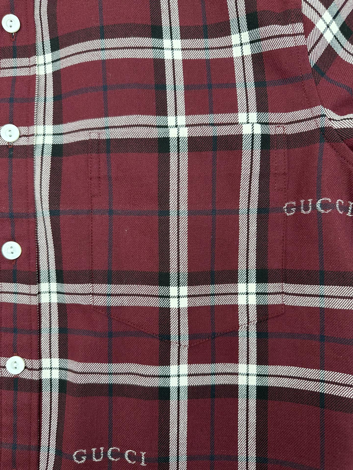 GUCCI Print LOGO Plaid Turn-Down Collar shirt Red グッチ プリント LOGO 格子柄 ターンダウンカラー シャツ レッド
