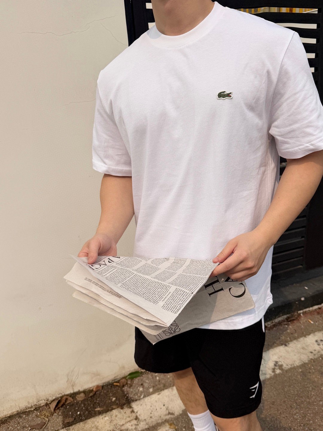 Lacoste Print logo loose Round neck T-shirt White ラコステ プリント logo ゆったり クルーネック Tシャツ ホワイト