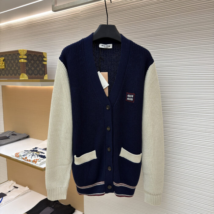 MIUMIU Embroidery color blocking Sweater Cardigan ミュウミュウ 刺繍 配色ブロッキング ニットセーター カーディガン