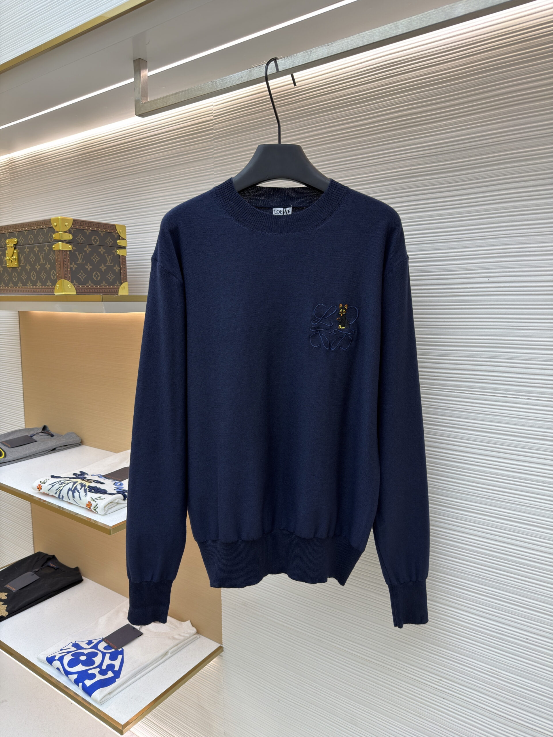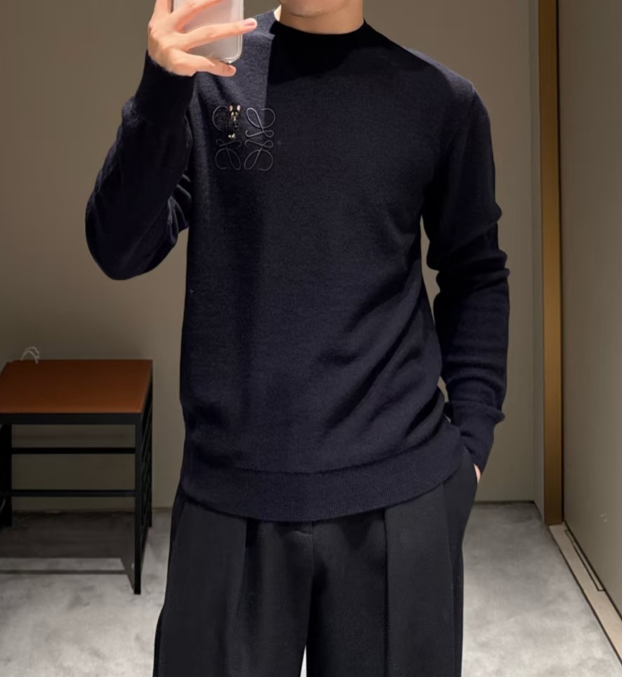 LOEWE Embroidery LOGO loose knit Sweater Navy ロエベ 刺繍 LOGO ゆったり ニットセーター ネイビー