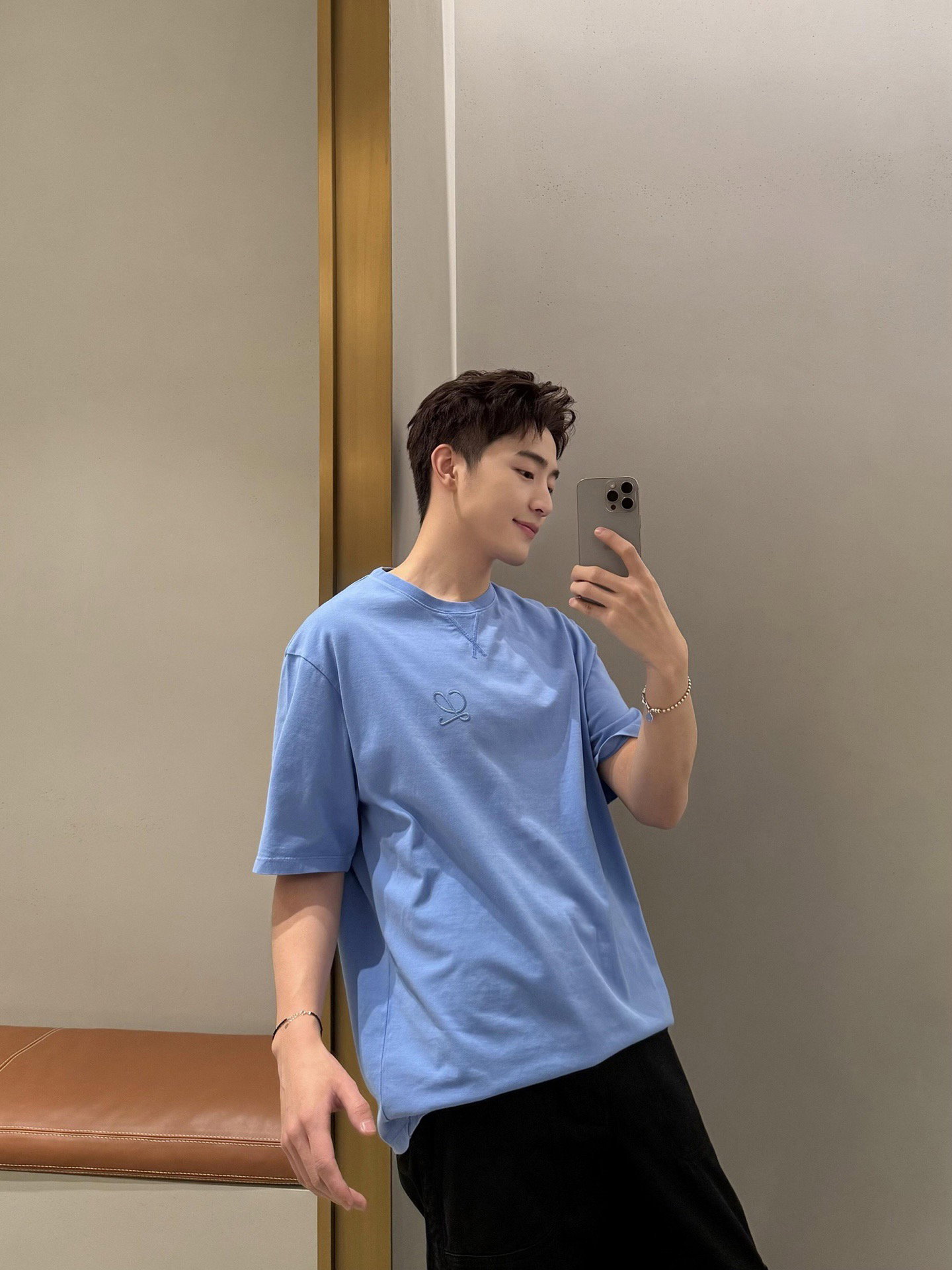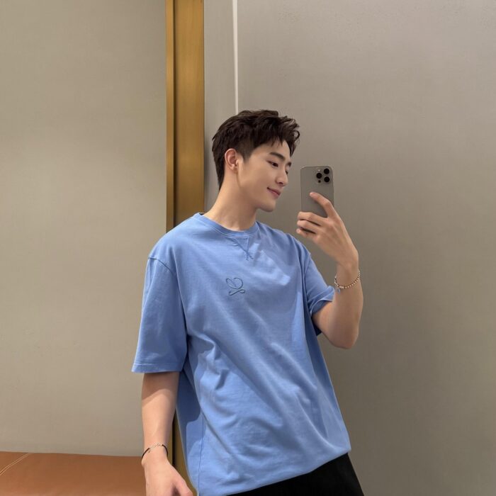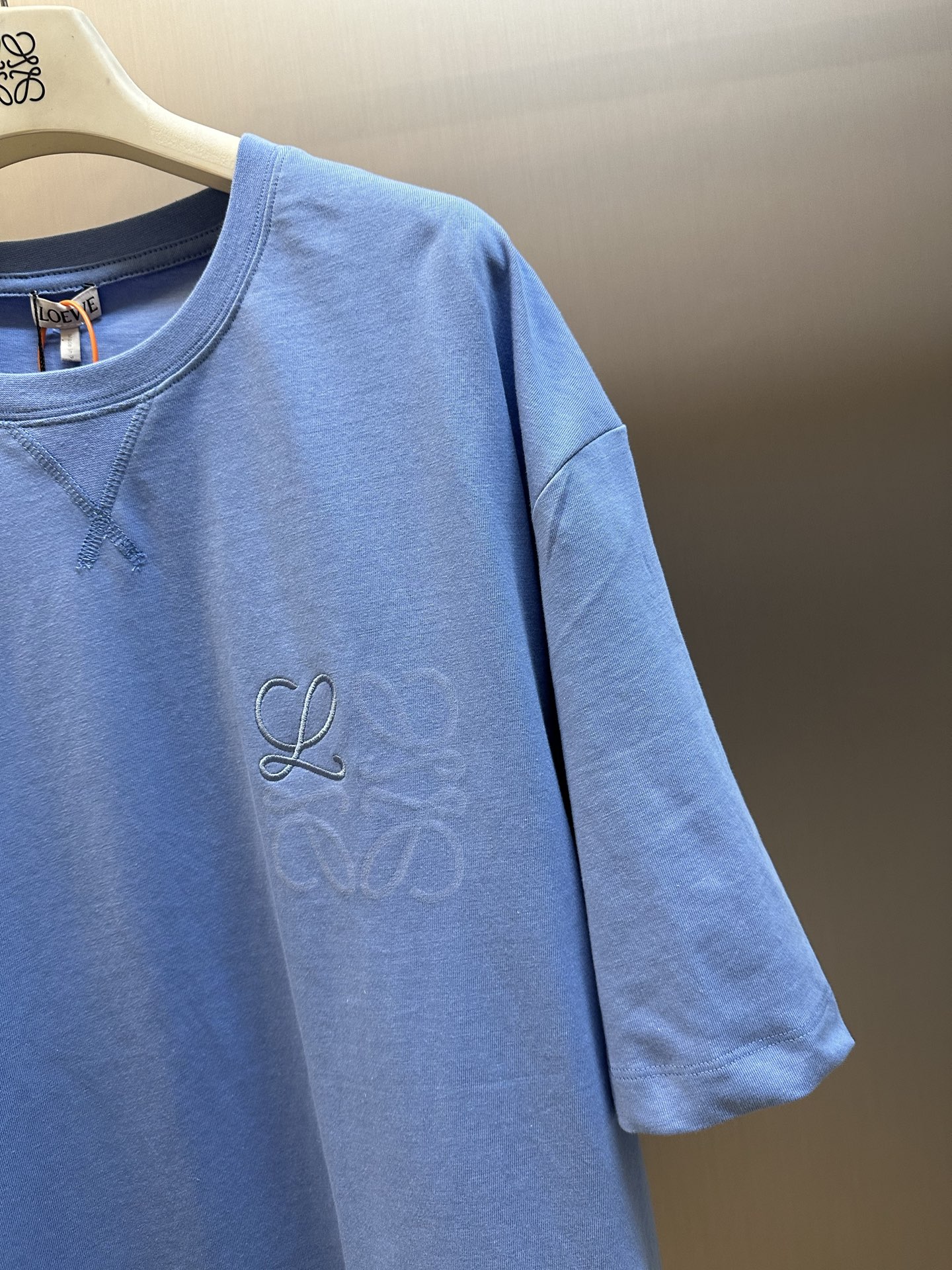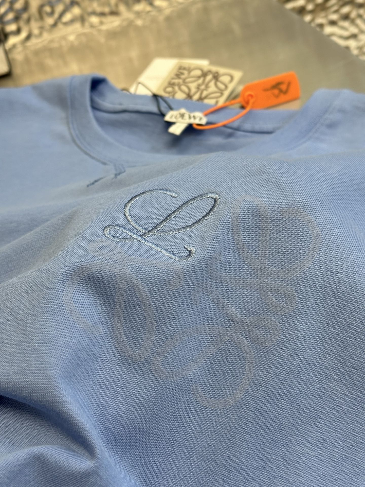 LOEWE Embroidery LOGO Print pattern Round neck T-shirt Blue ロエベ 刺繍 LOGO プリント パターン クルーネック Tシャツ ブルー