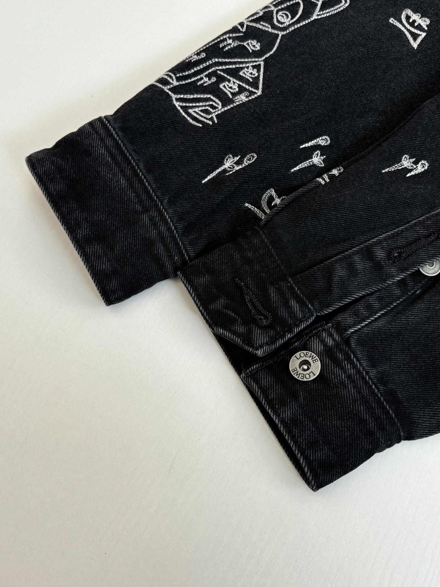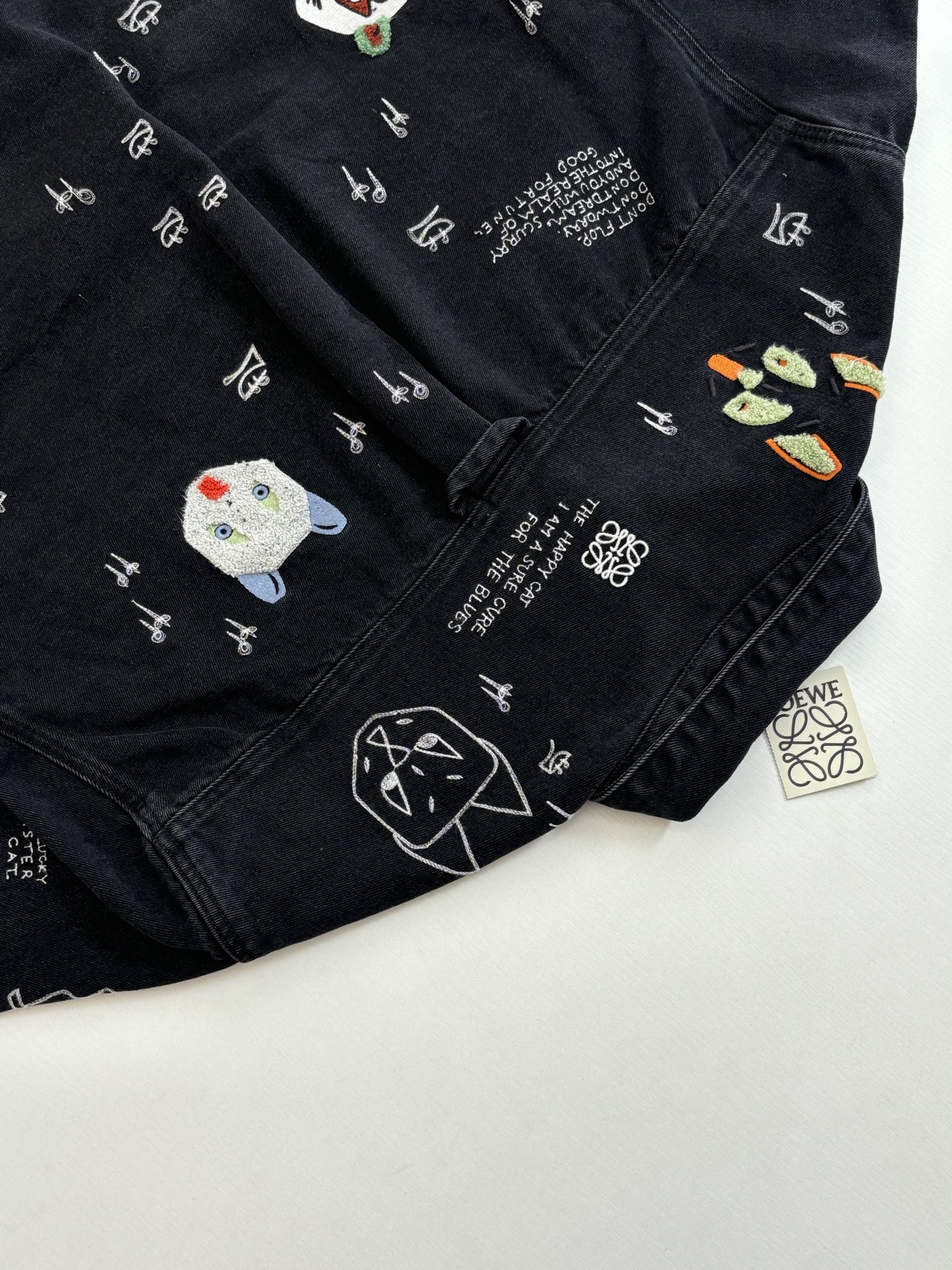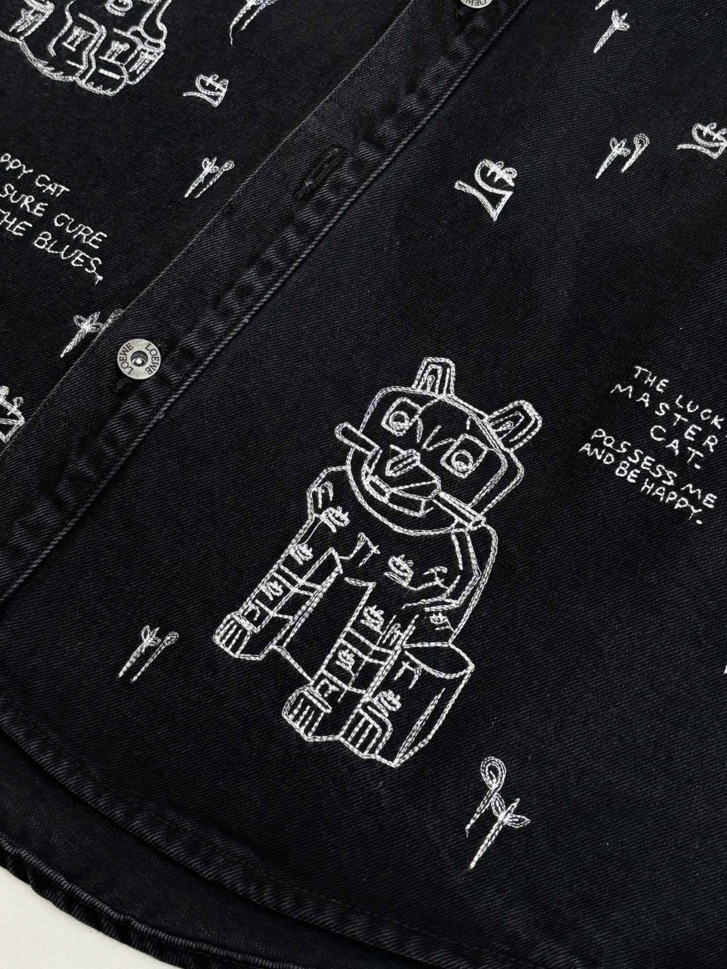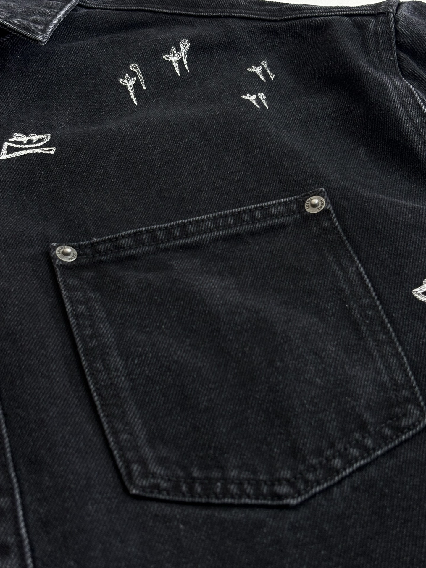LOEWE Embroidery pattern DENIM Jacket Black ルイヴィトン 刺繍 パターン デニム ジャケット ブラック
