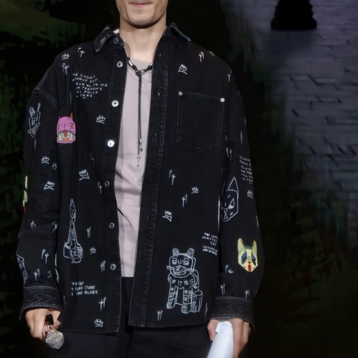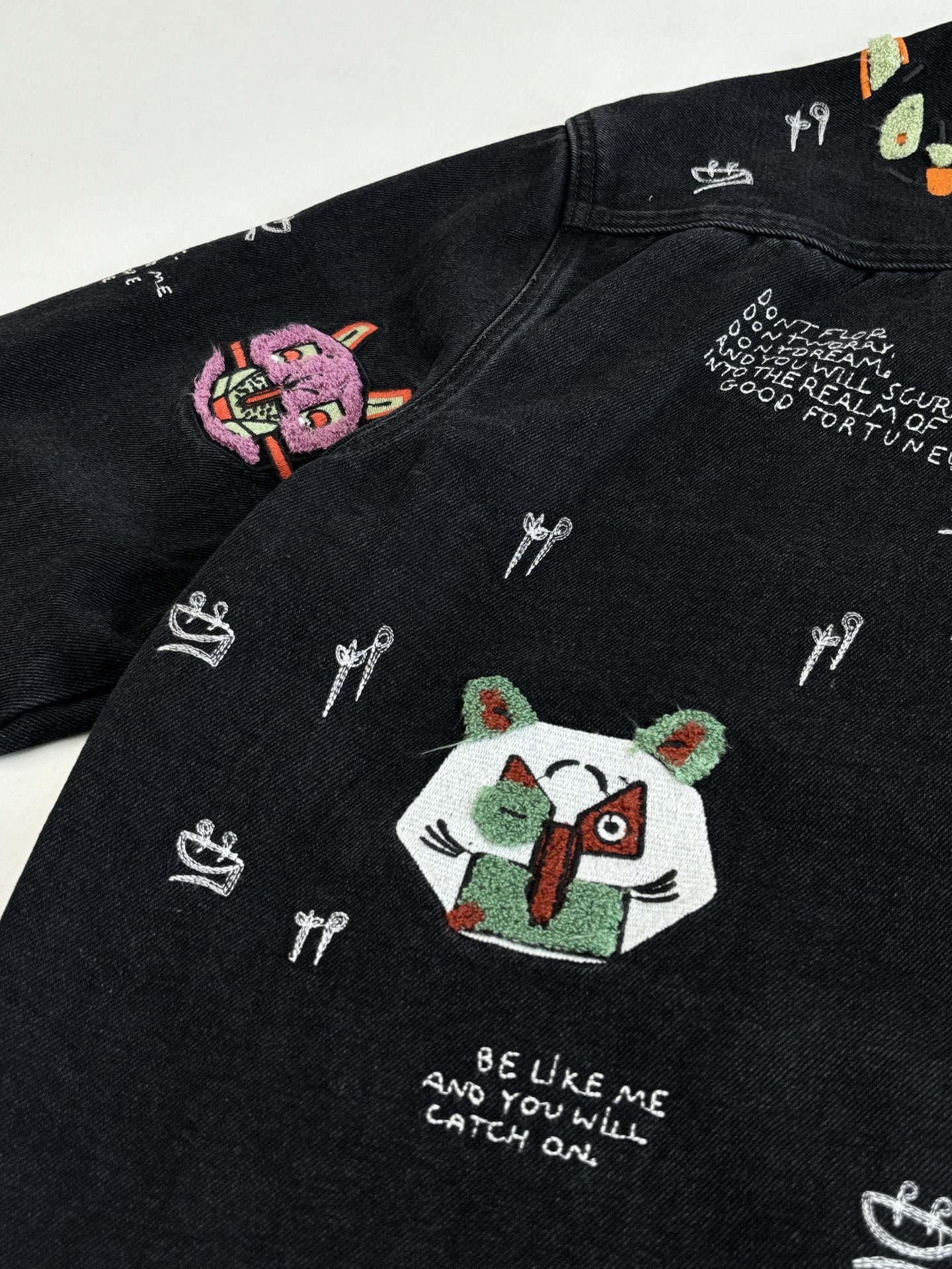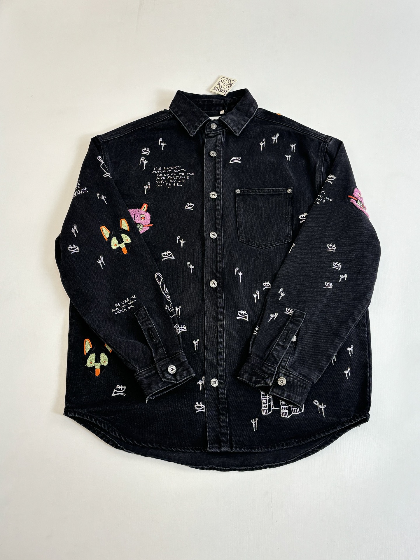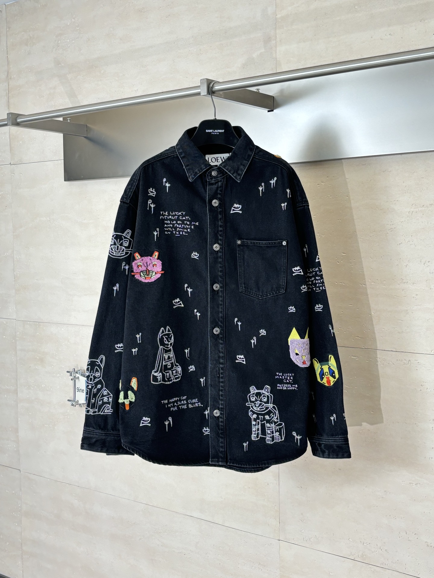 LOEWE Embroidery pattern DENIM Jacket Black ルイヴィトン 刺繍 パターン デニム ジャケット ブラック