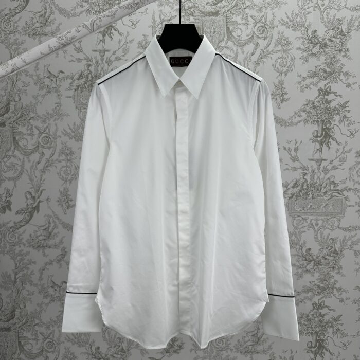 GUCCI Print LOGO Patchwork Turn-Down Collar shirt White グッチ プリント LOGO パッチワーク ターンダウンカラー シャツ ホワイト