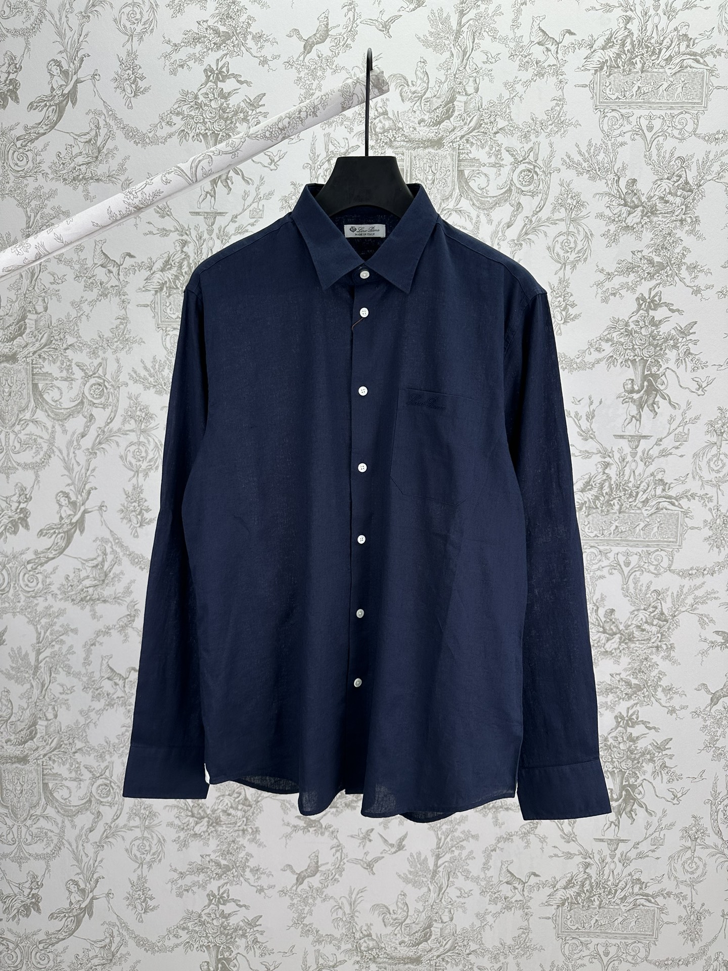Loro Piana Embroidery LOGO Single-Breasted Shirt Navy ロロピアーナ 刺繍 LOGO シングルブレスト シャツ ネイビー