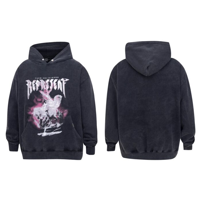 Represent Print pattern Hoodie Black プリント パターン パーカー ブラック