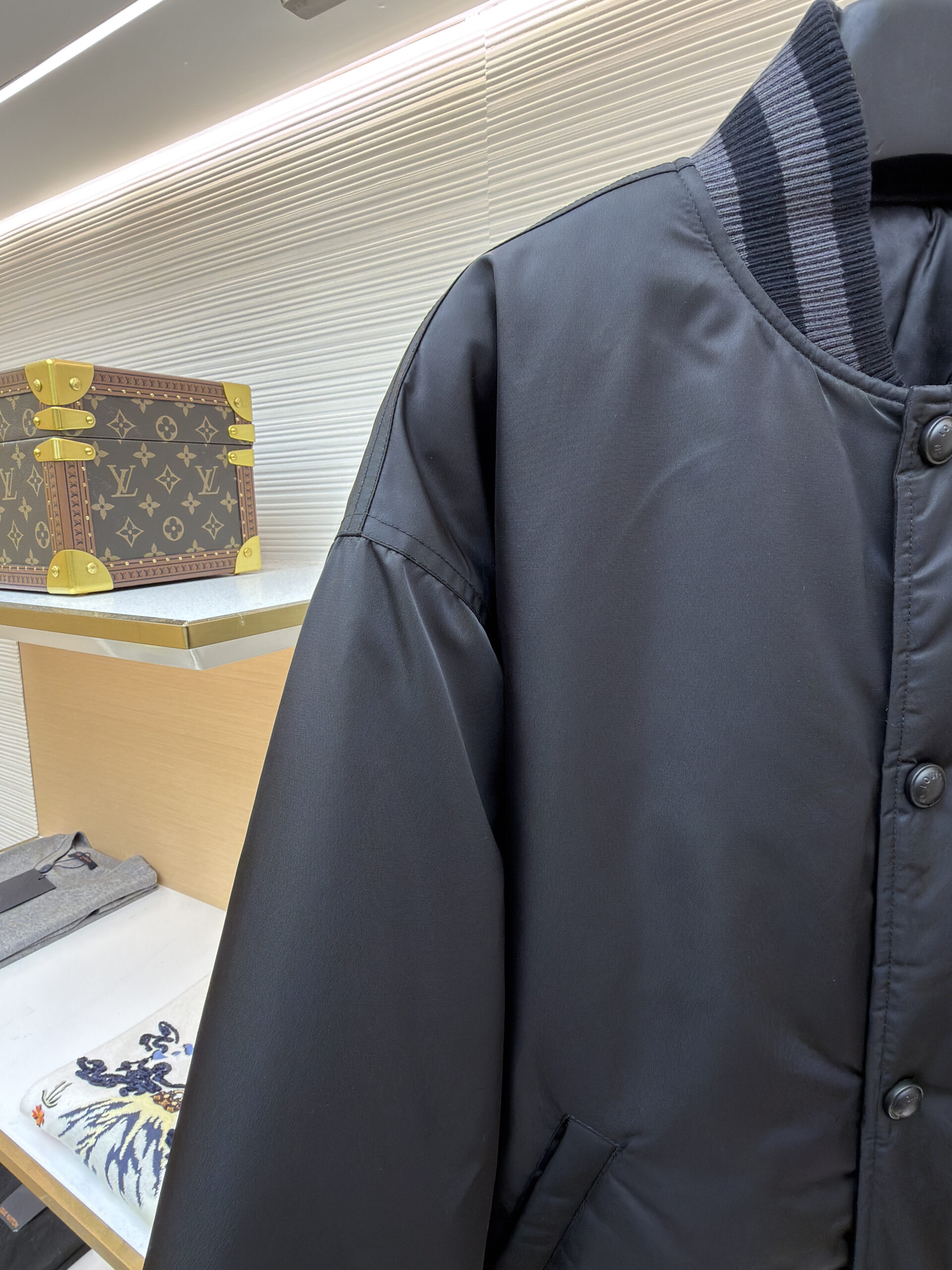 LOUIS VUITTON emblem interlayer cotton jacket Black ルイヴィトン バッジ 中綿 ジャケット ブラック