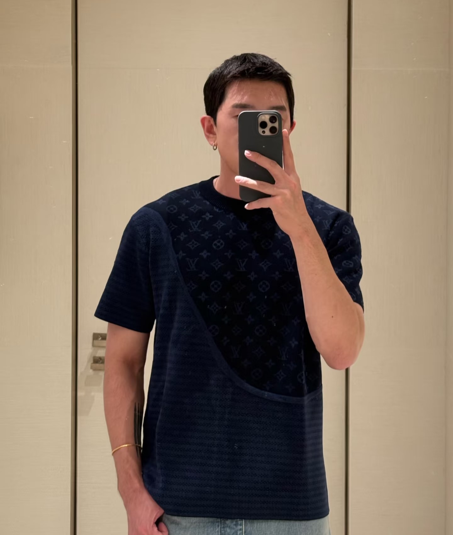 Louis Vuitton monogram relief embossing loose Round neck T-shirt Navy ルイヴィトン モノグラムエンボス ゆったり クルーネック Tシャツ ネイビー