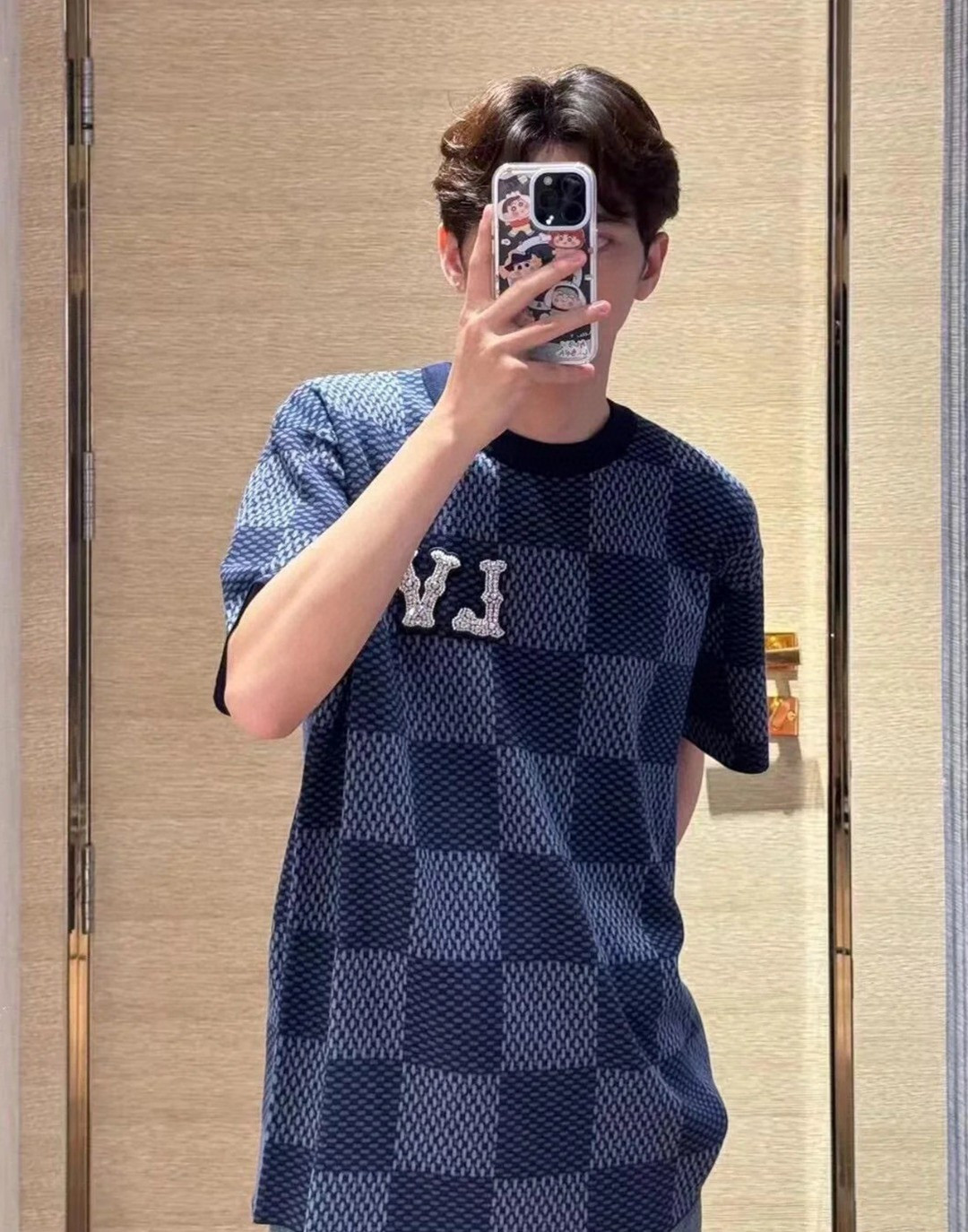 Louis Vuitton Embroidery logo Checkerboard knit T-shirt ルイヴィトン 刺繍 logo チェッカーボード ニット Tシャツ
